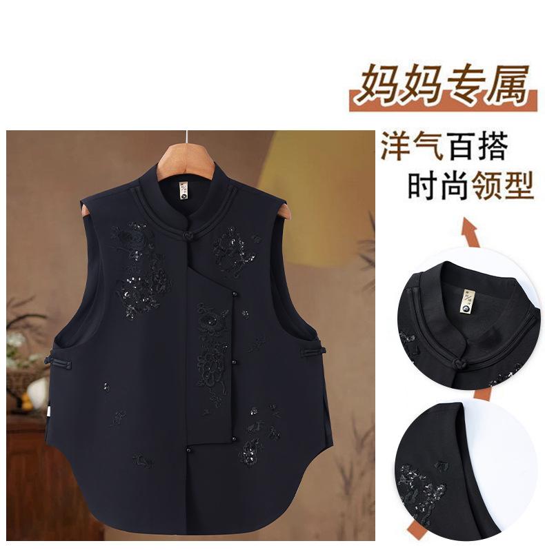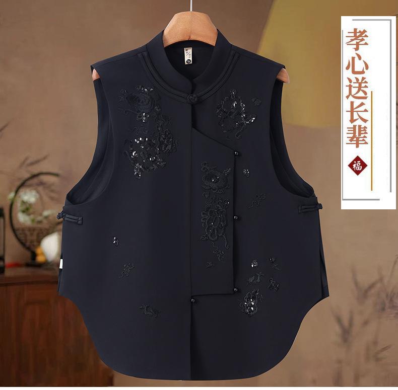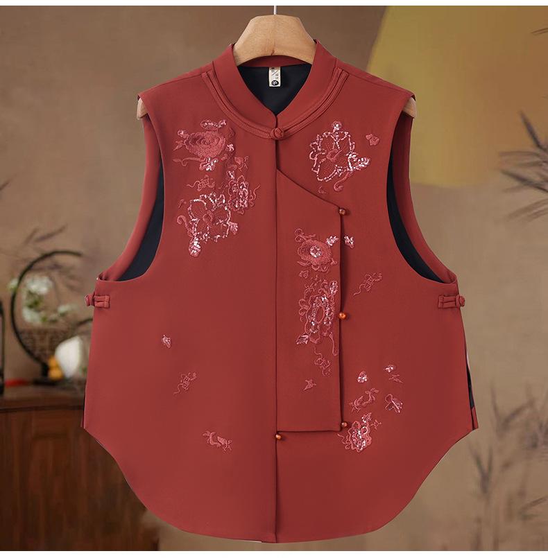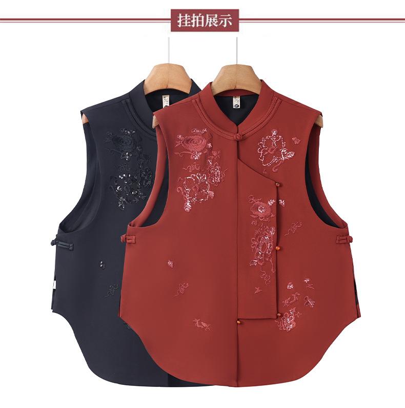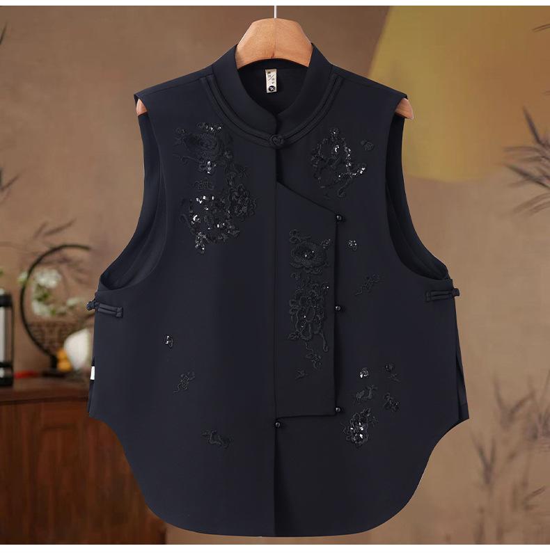 Venta al por mayor bordado de industria pesada nuevo top chaleco chino para mujer 2025 primavera y otoño nuevo botón estilo nacional sin mangas abrigo para volver al trabajo