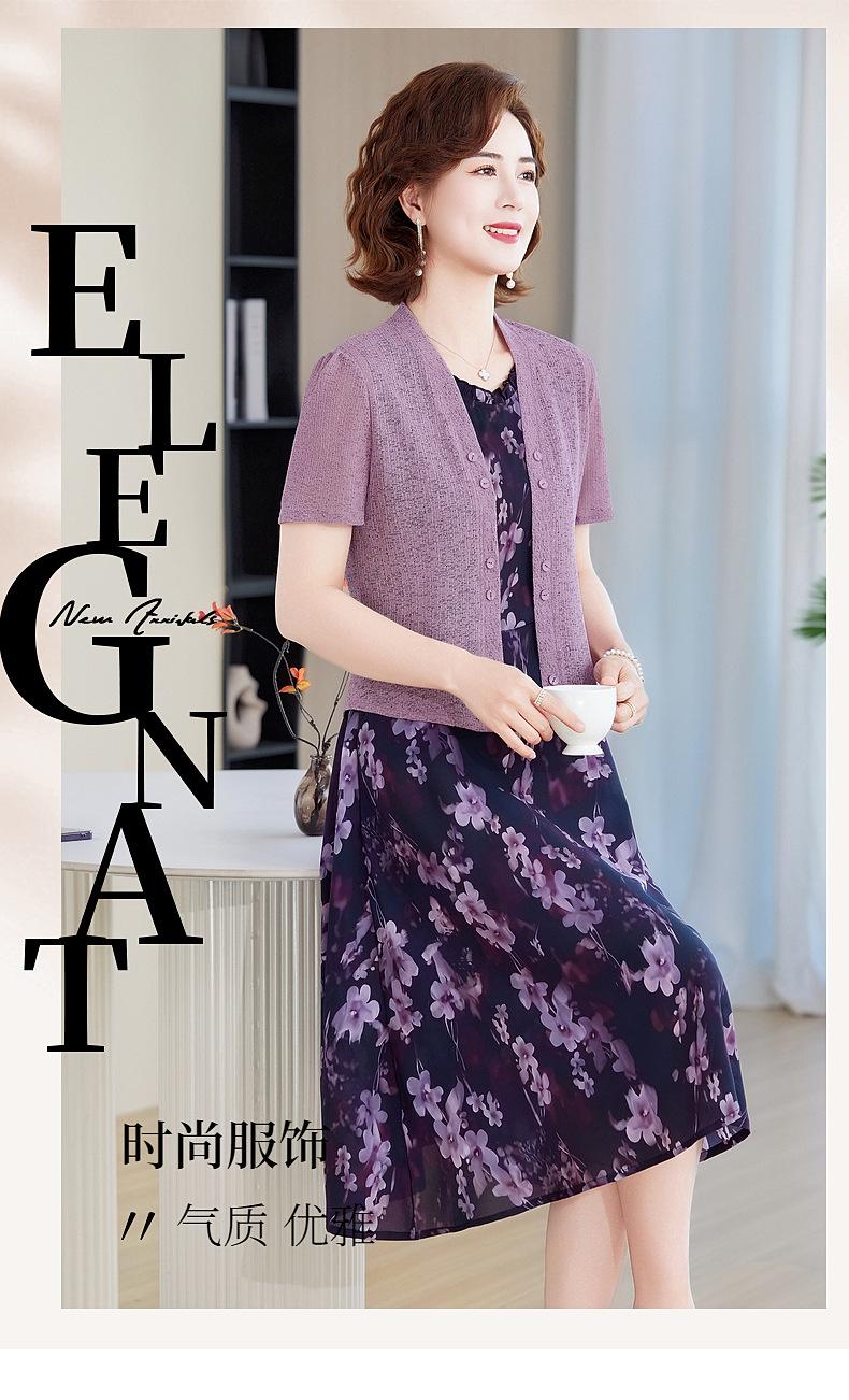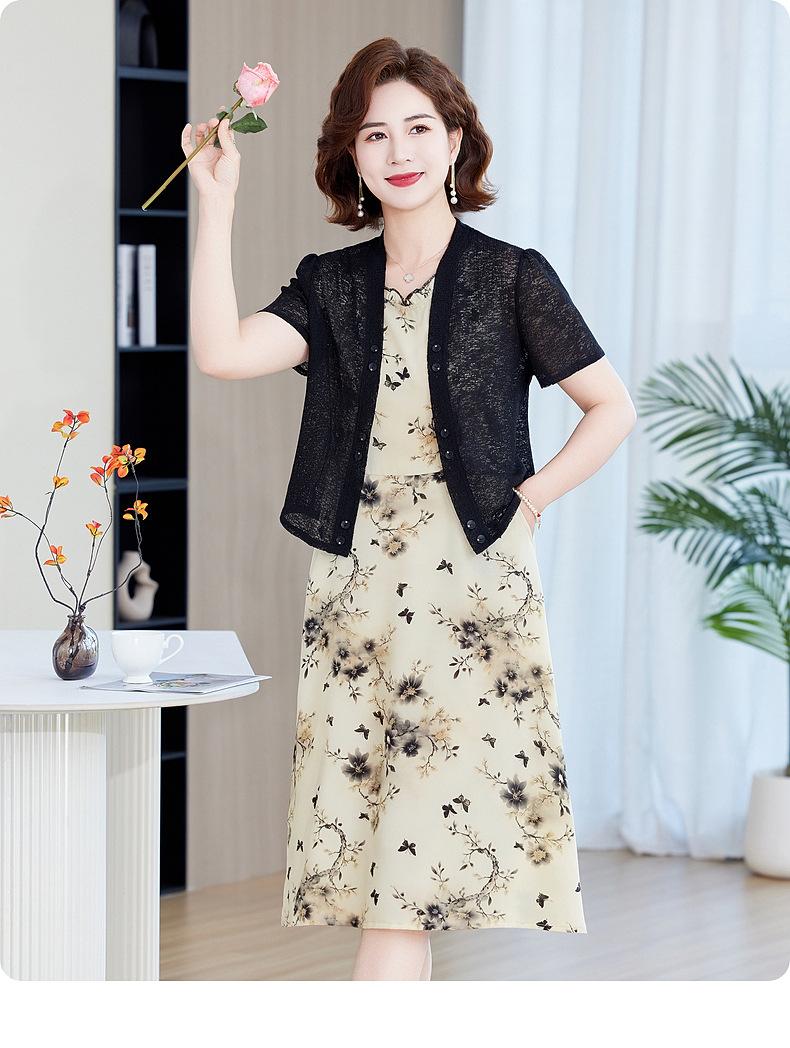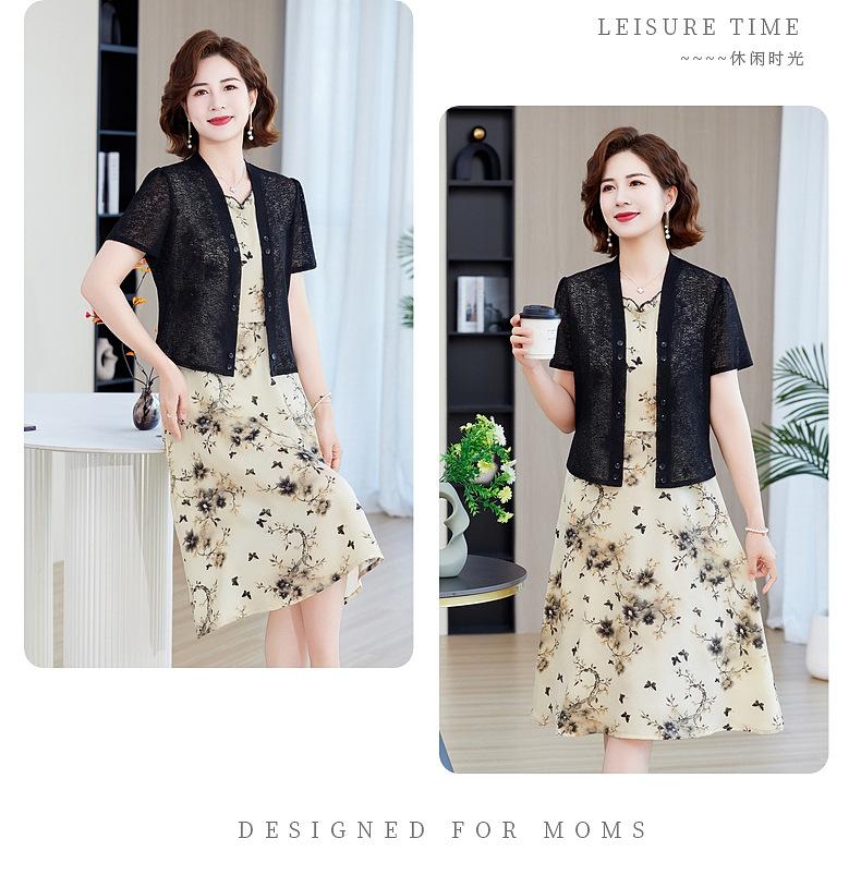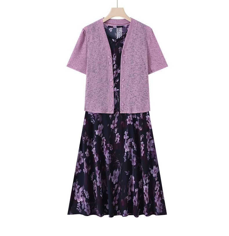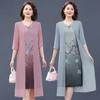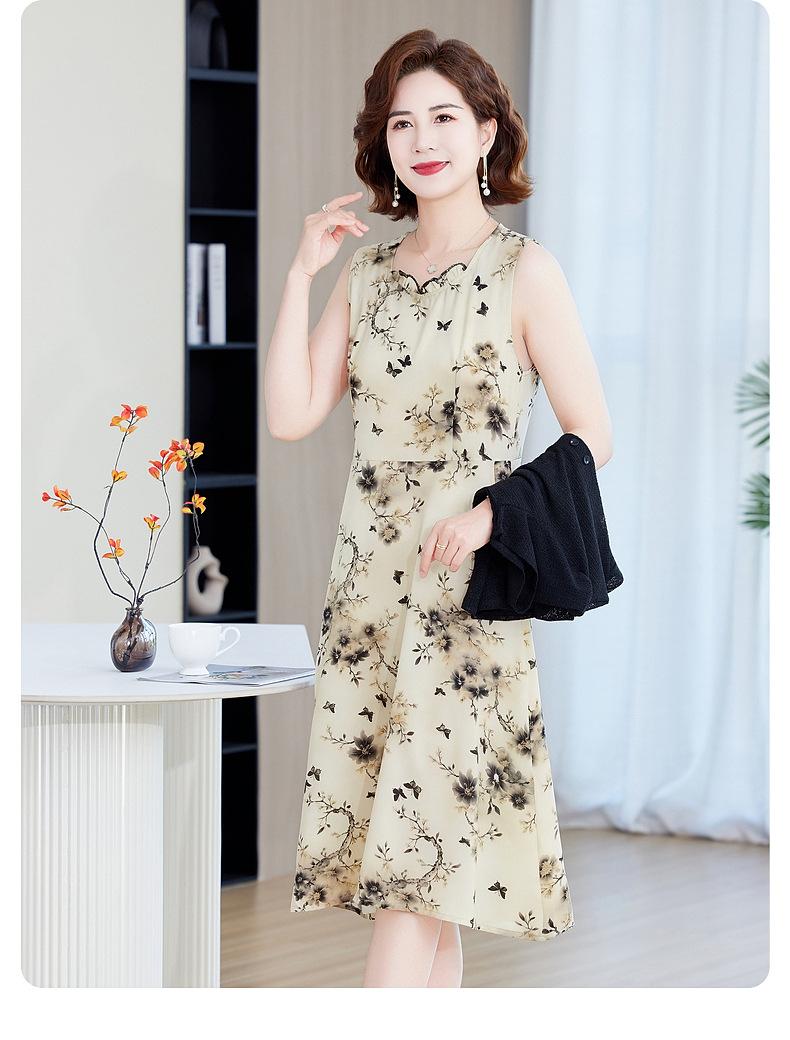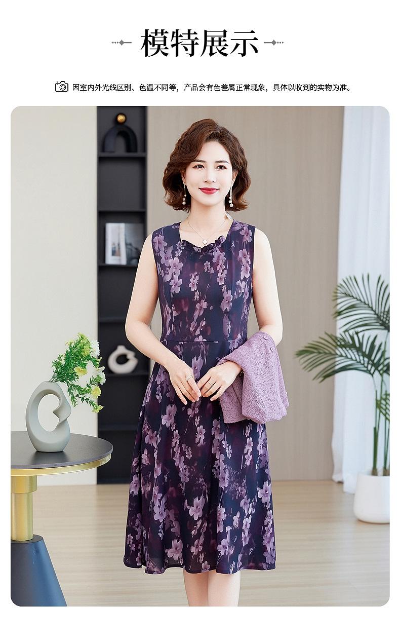 Ropa de Moda para Mujer Vestido de Madre de Mediana Edad y Anciana Conjunto de Dos Piezas Vestido Chaleco Adelgazante de Moda Estampado Verano para Mujer Delgado