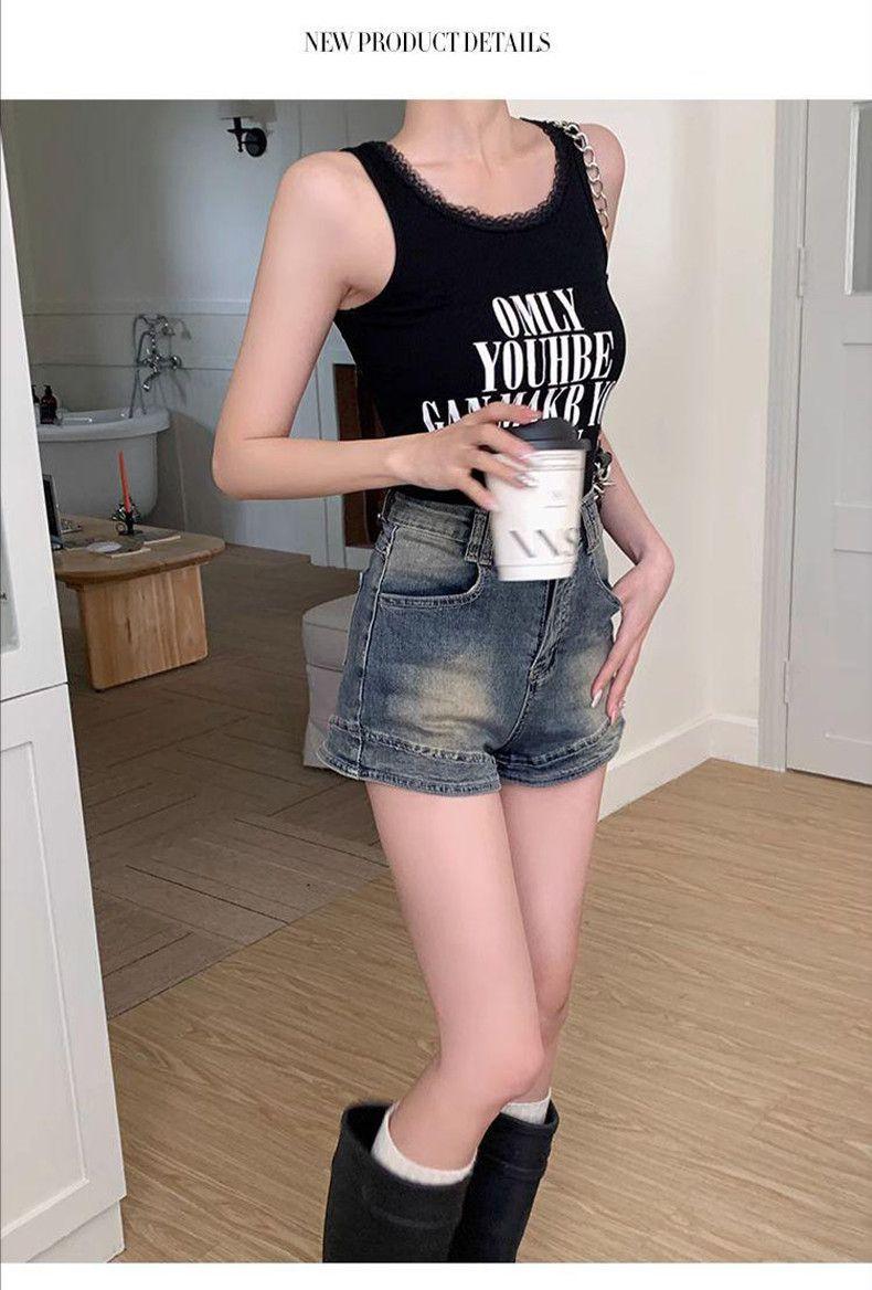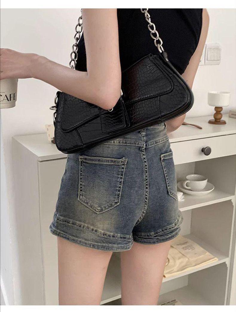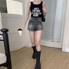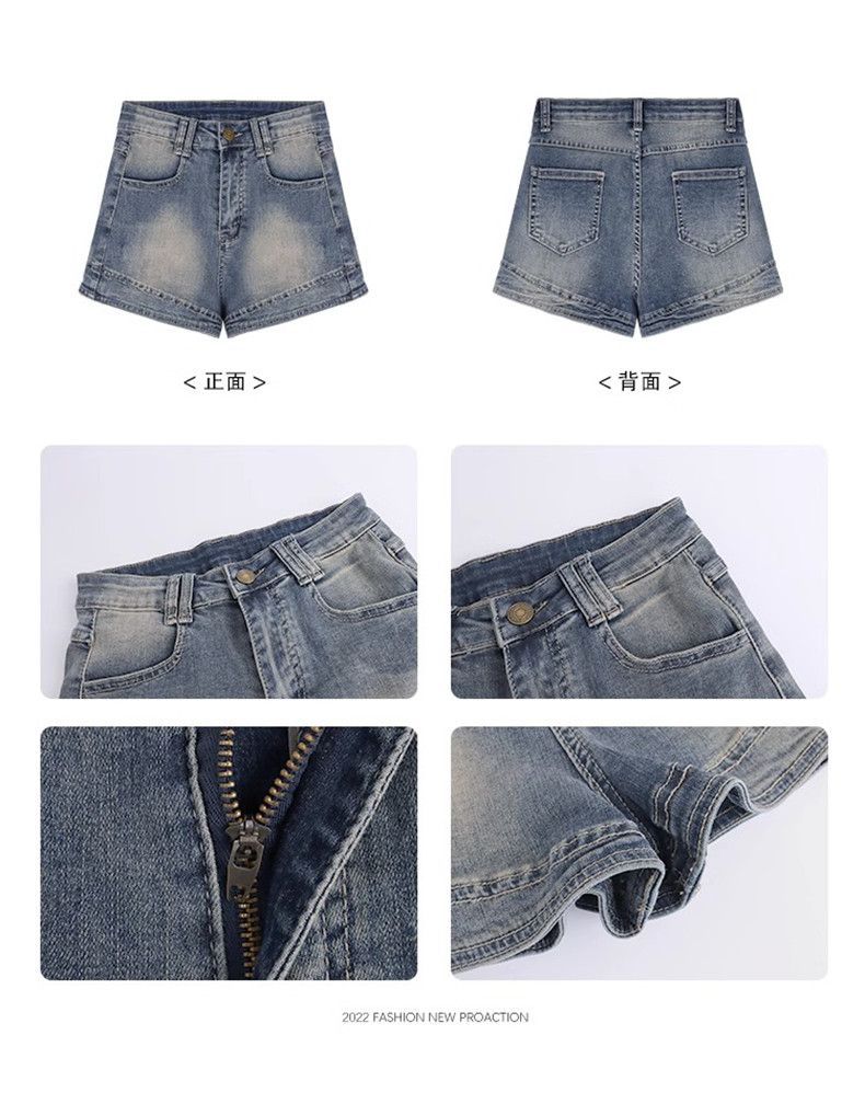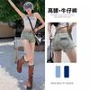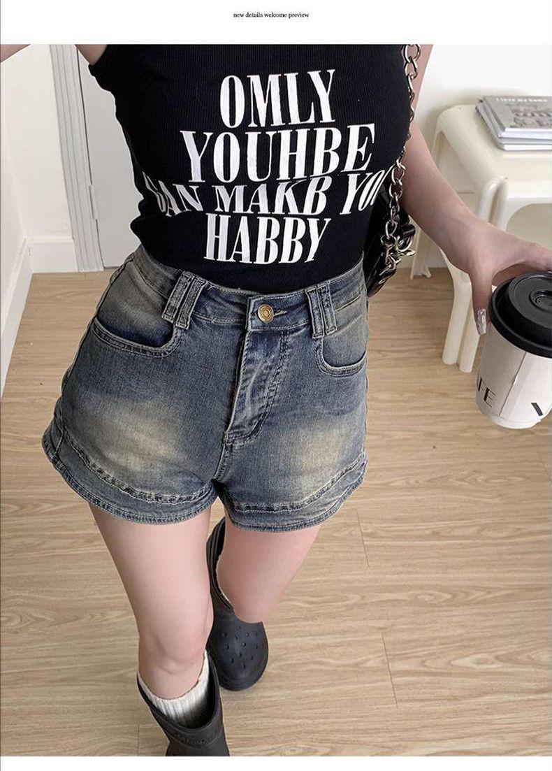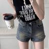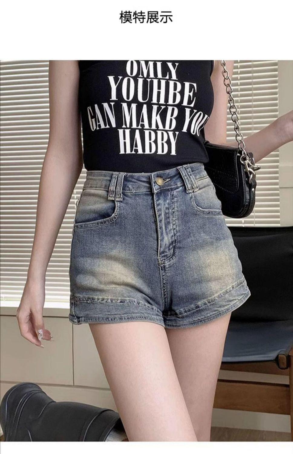 Shorts de mezclilla retro americanos para mujer 2025 verano populares de cintura alta ajustados chica hot pequeños elásticos línea A pantalones cortos