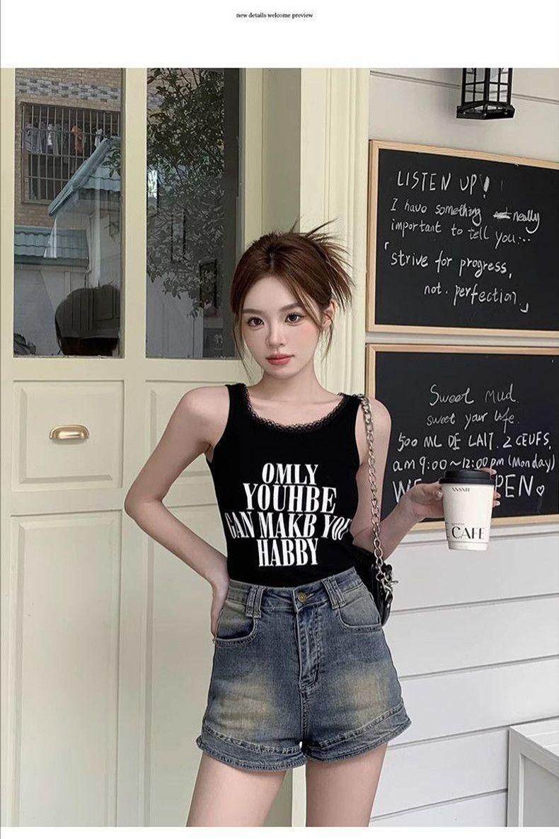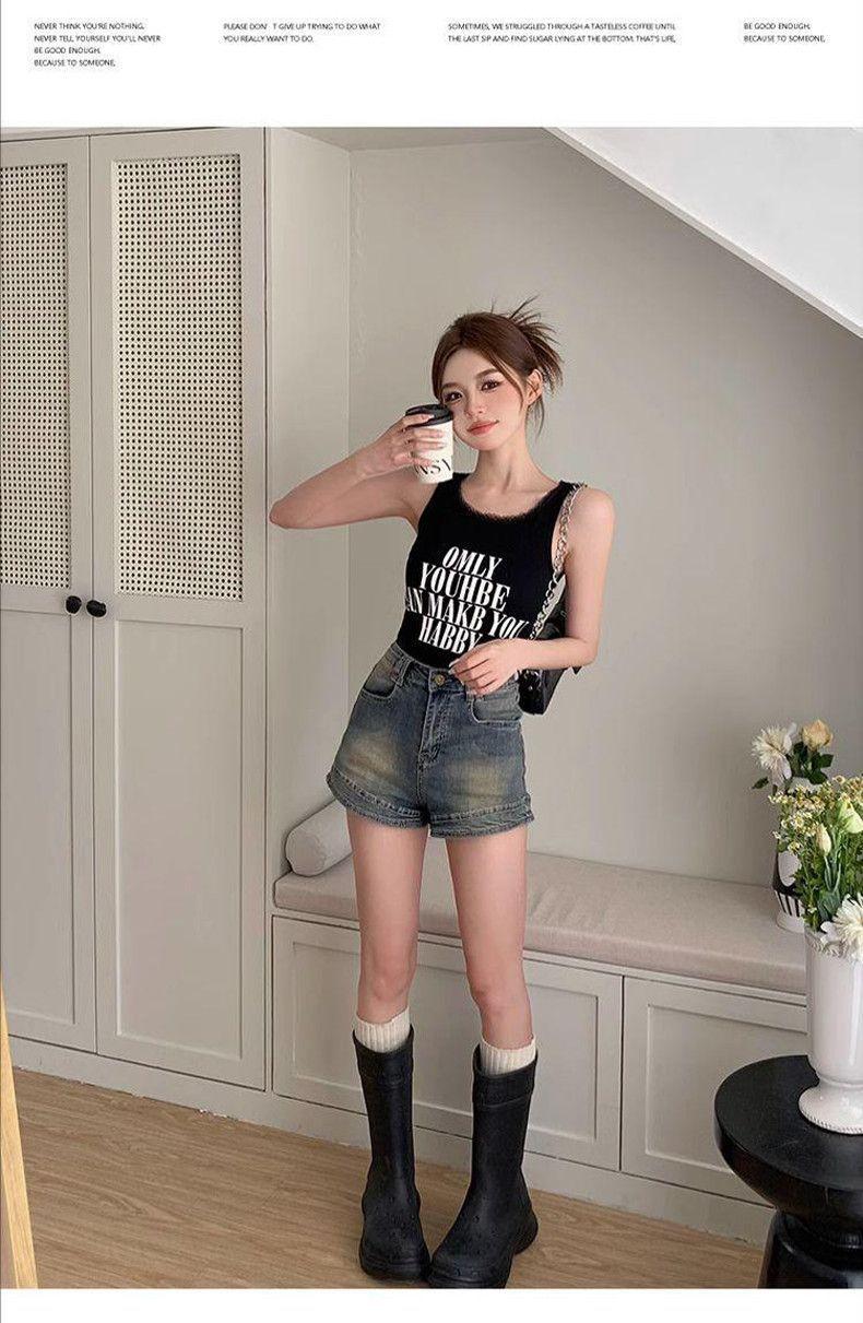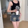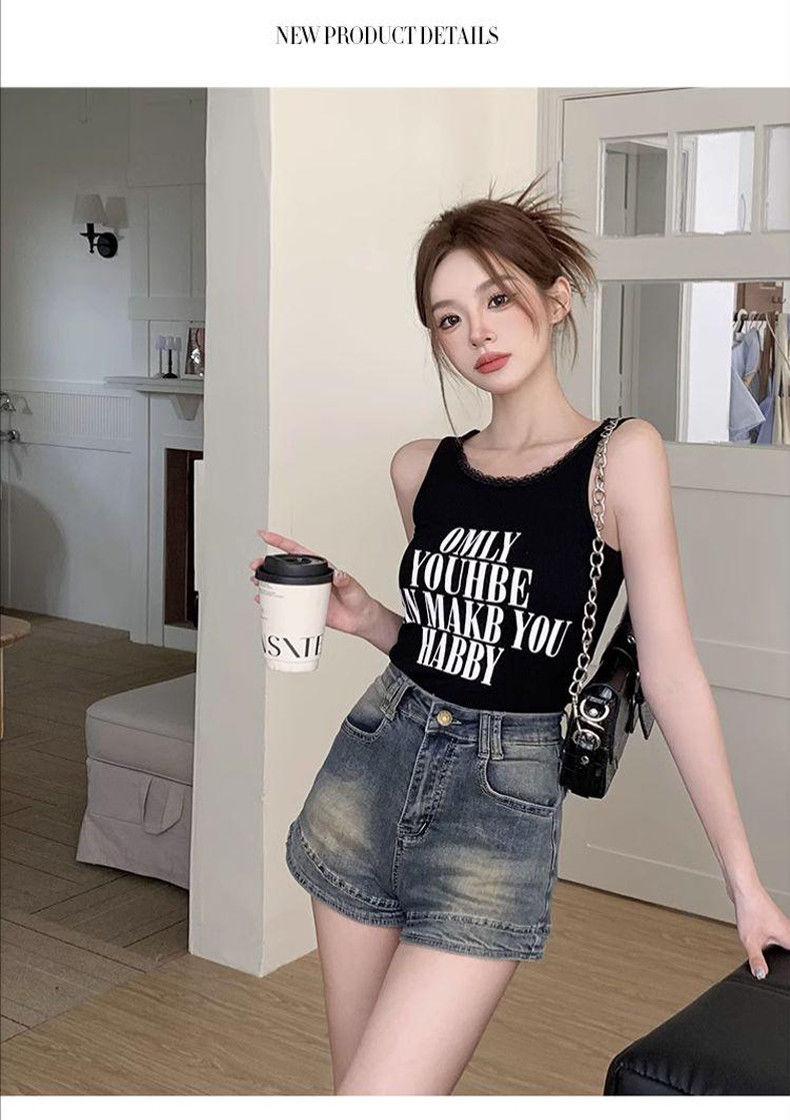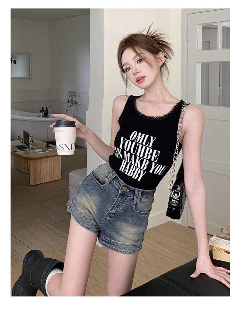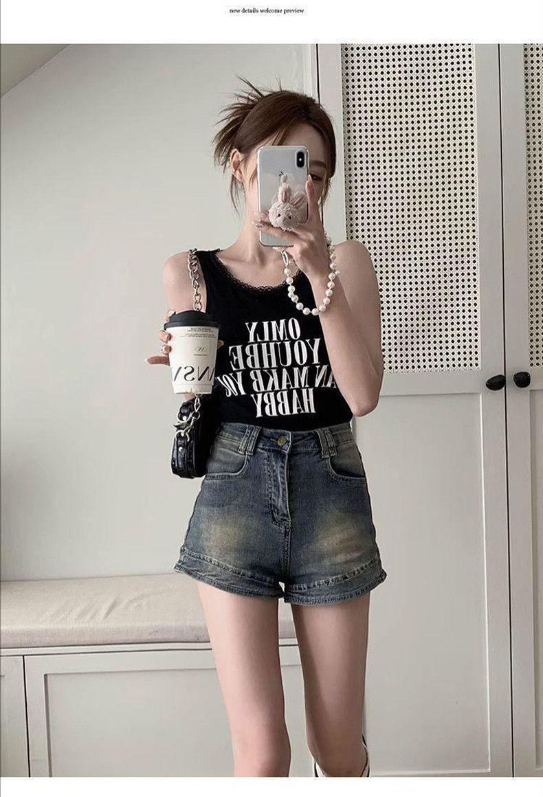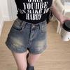 Shorts de mezclilla retro americanos para mujer 2025 verano populares de cintura alta ajustados chica hot pequeños elásticos línea A pantalones cortos