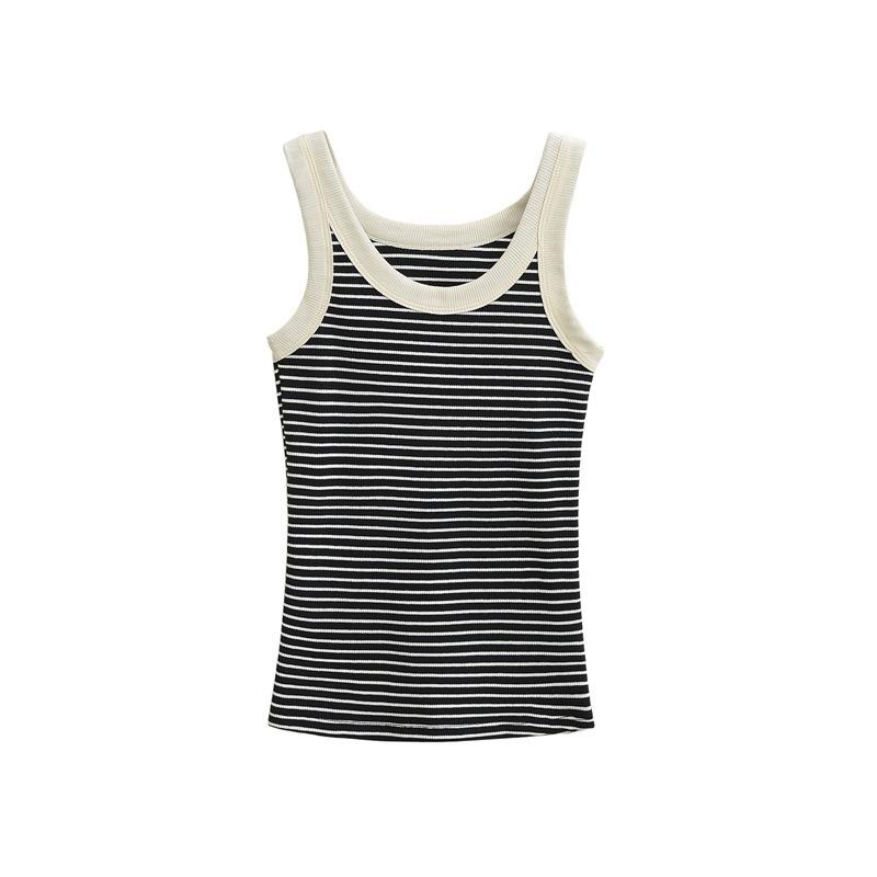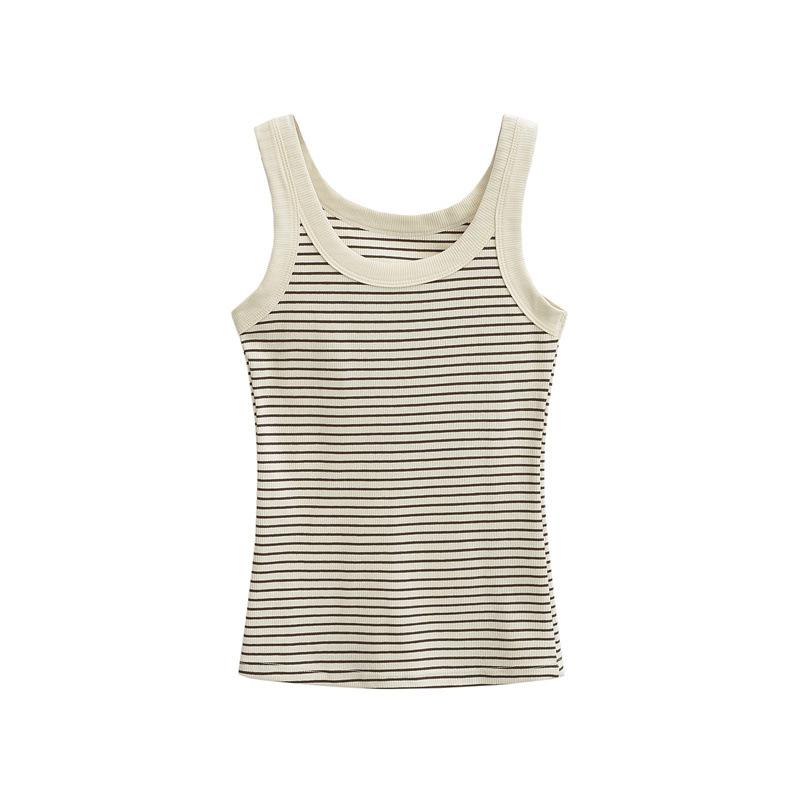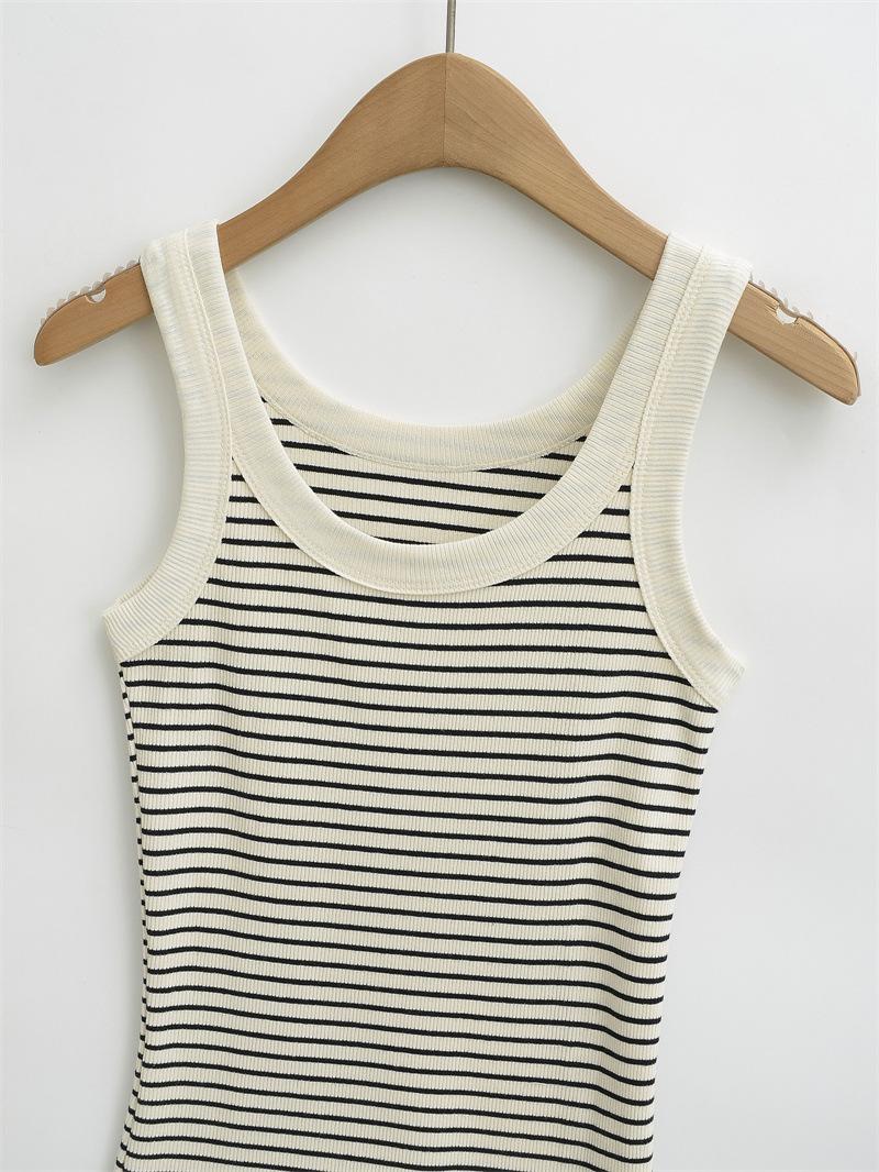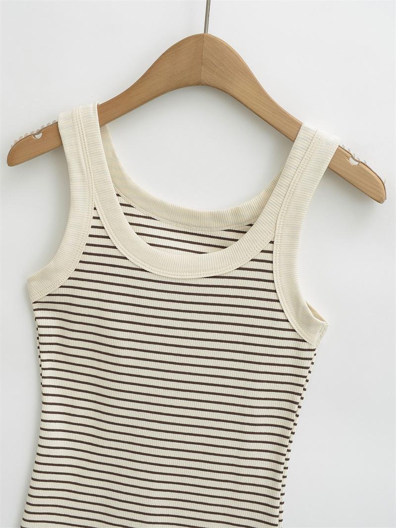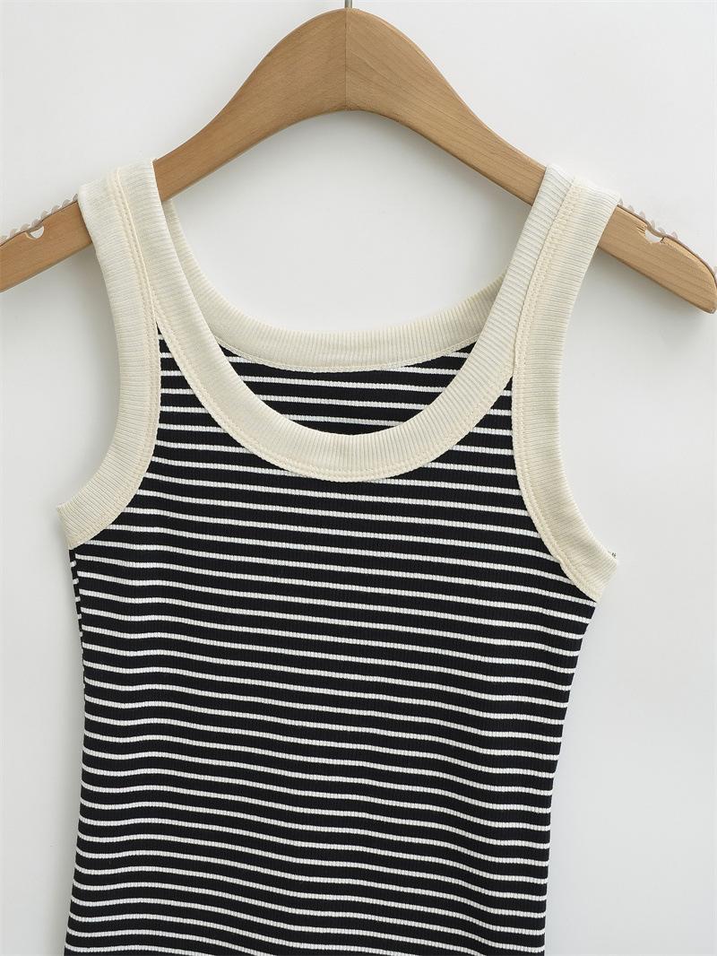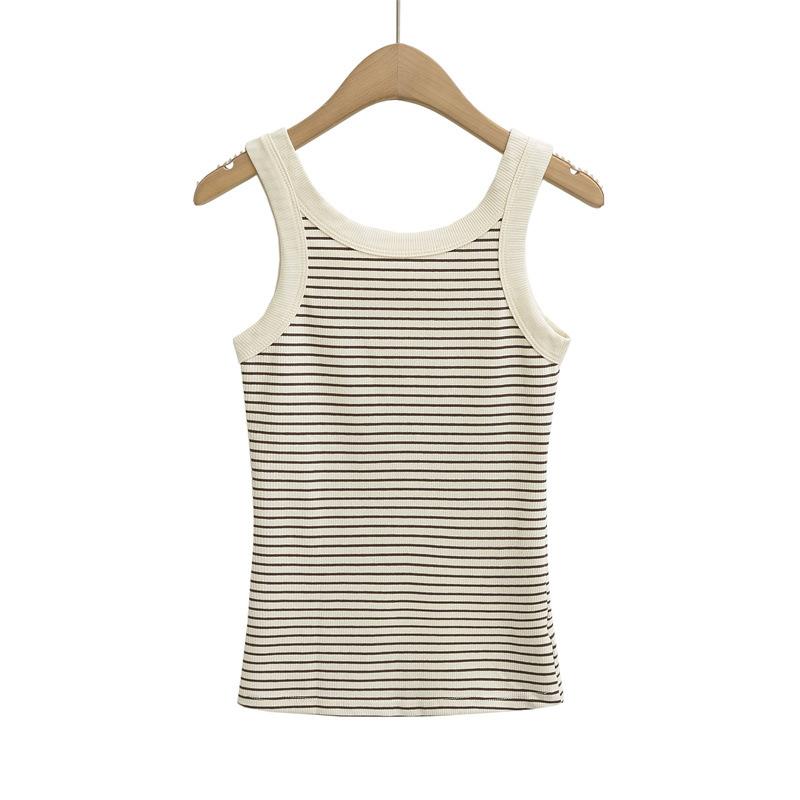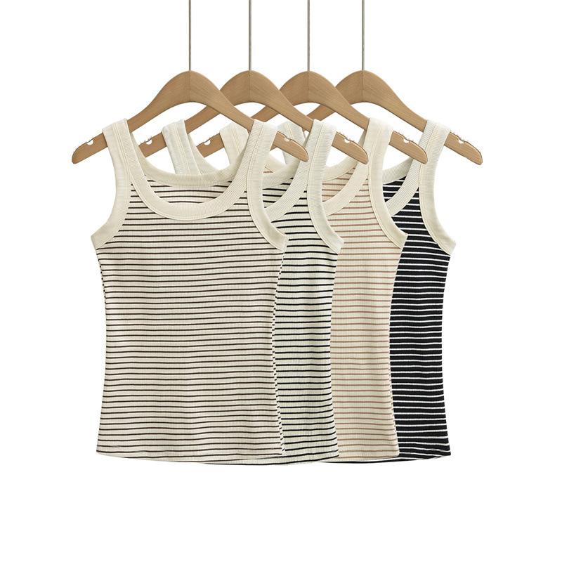 Verano 2025 Nuevo Camisola de Rayas Moda Versátil Slim Sin Mangas Cuello Redondo Ropa Interior Top Cubre Busto para Mujer