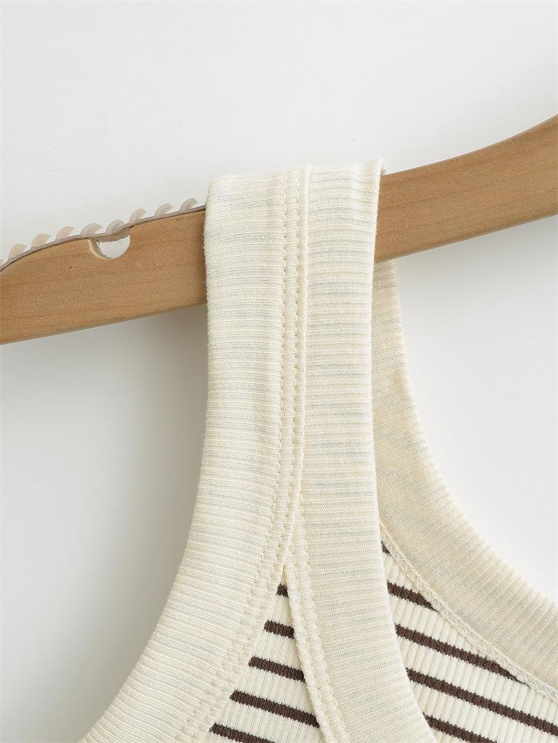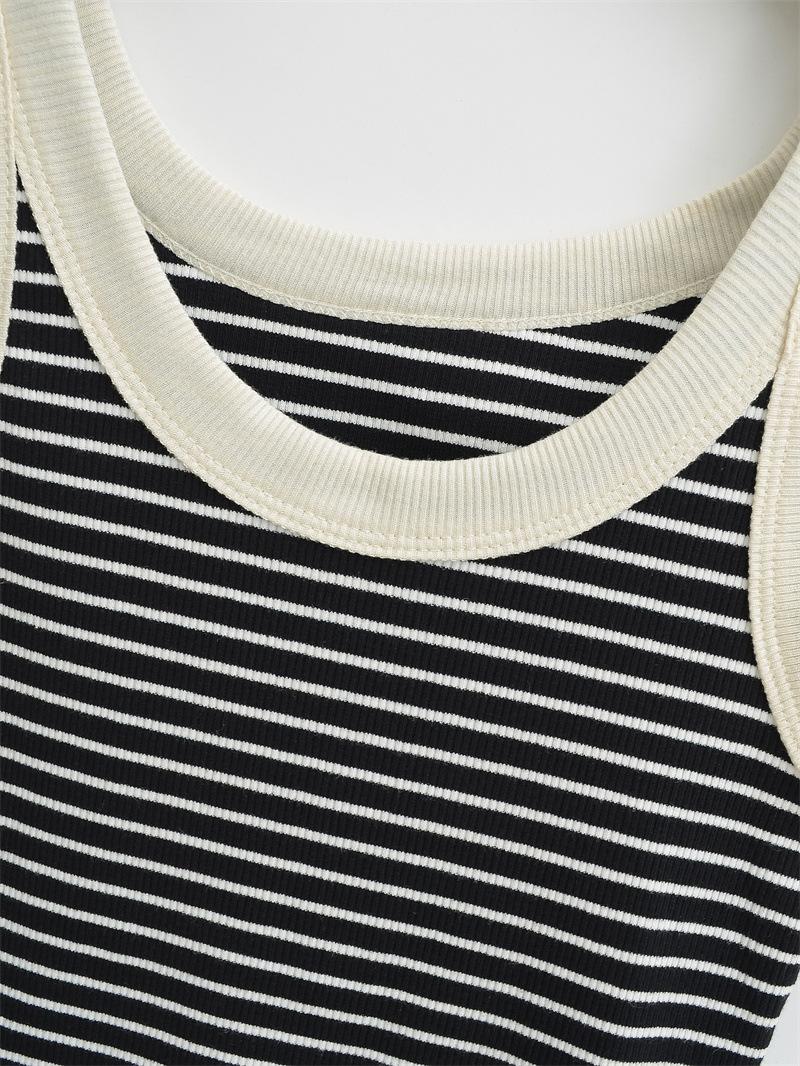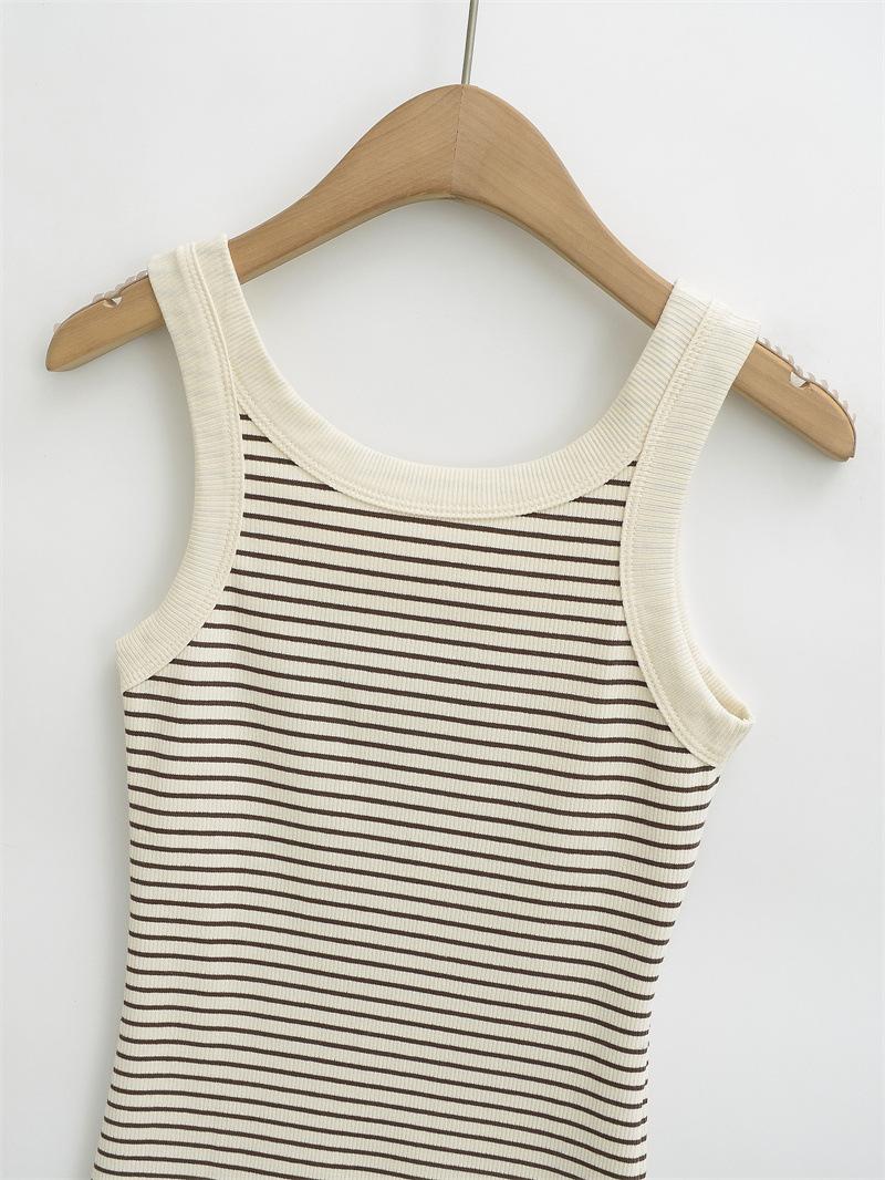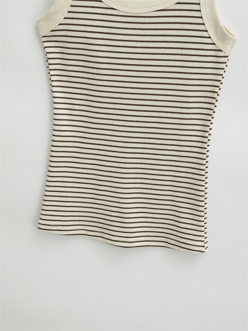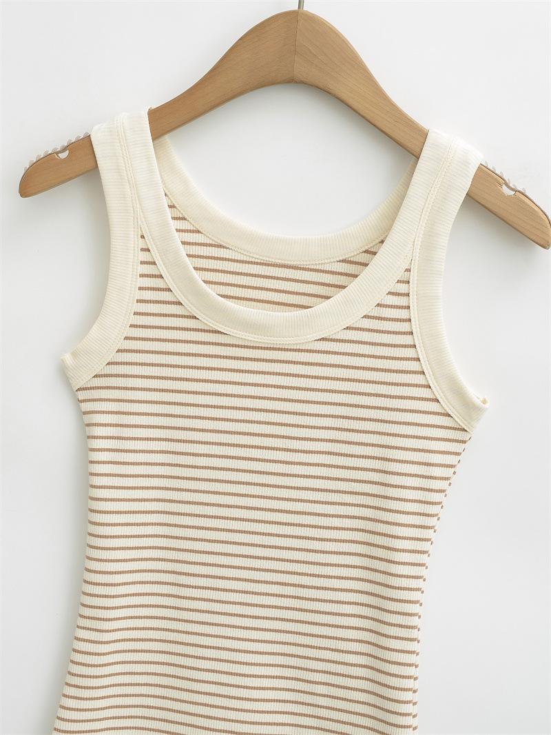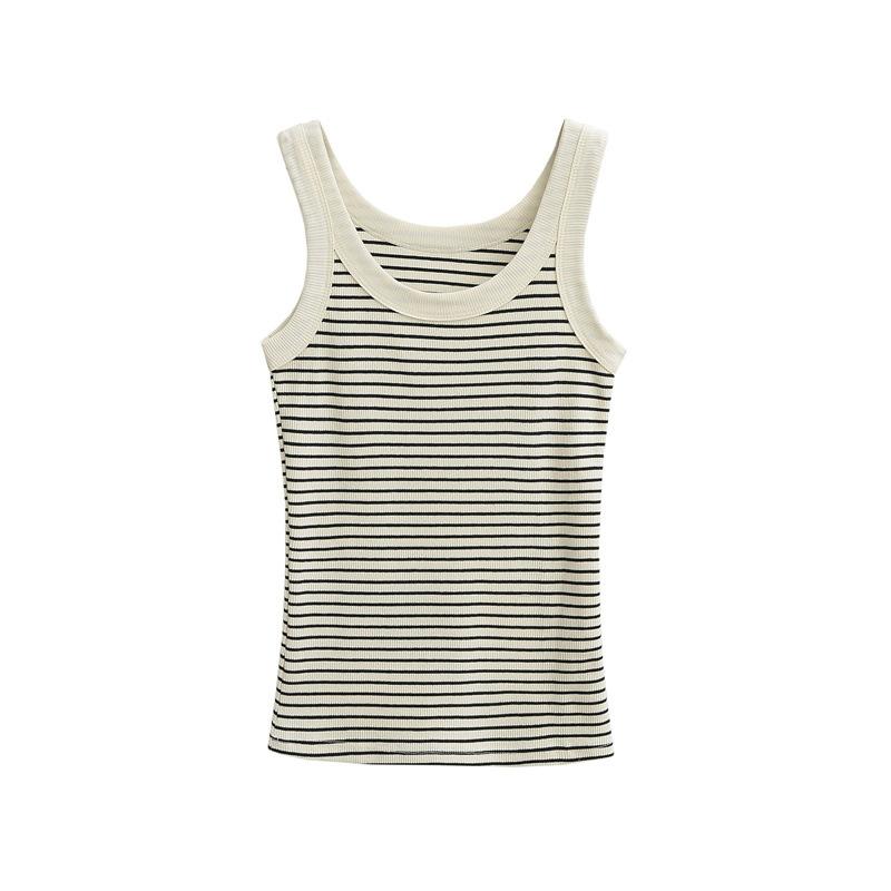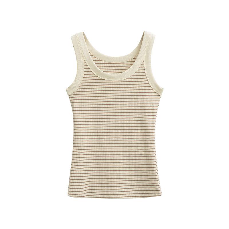 Verano 2025 Nuevo Camisola de Rayas Moda Versátil Slim Sin Mangas Cuello Redondo Ropa Interior Top Cubre Busto para Mujer