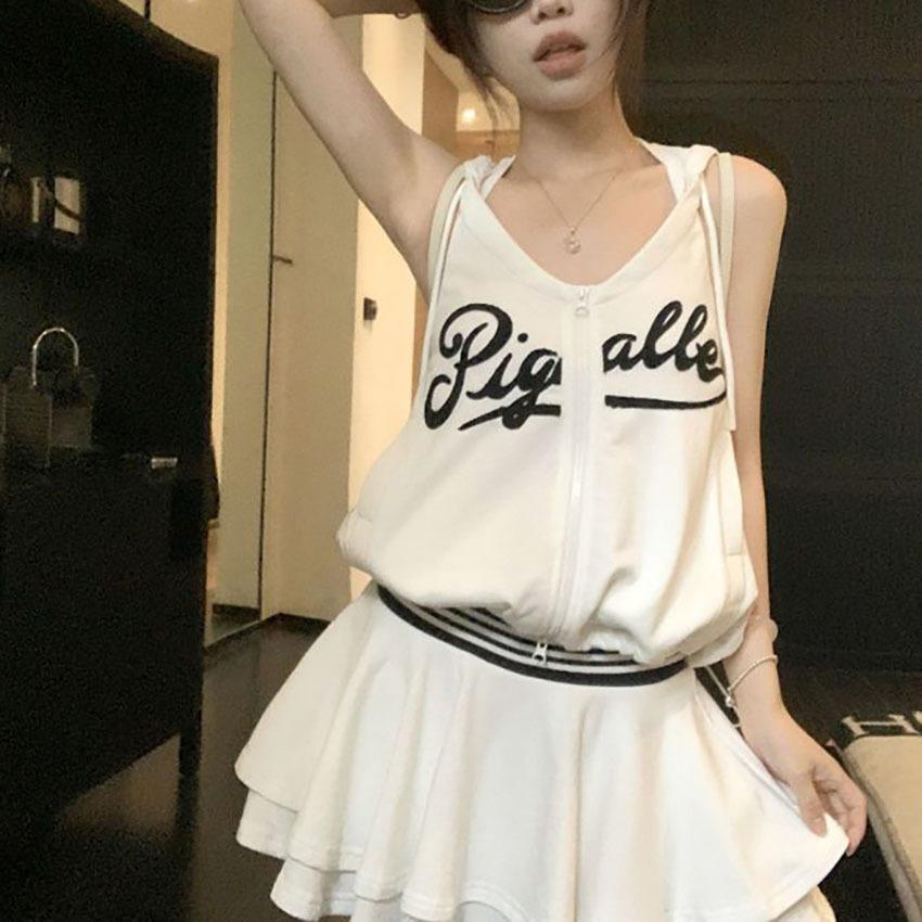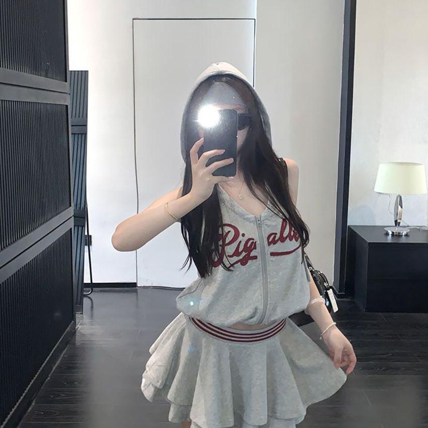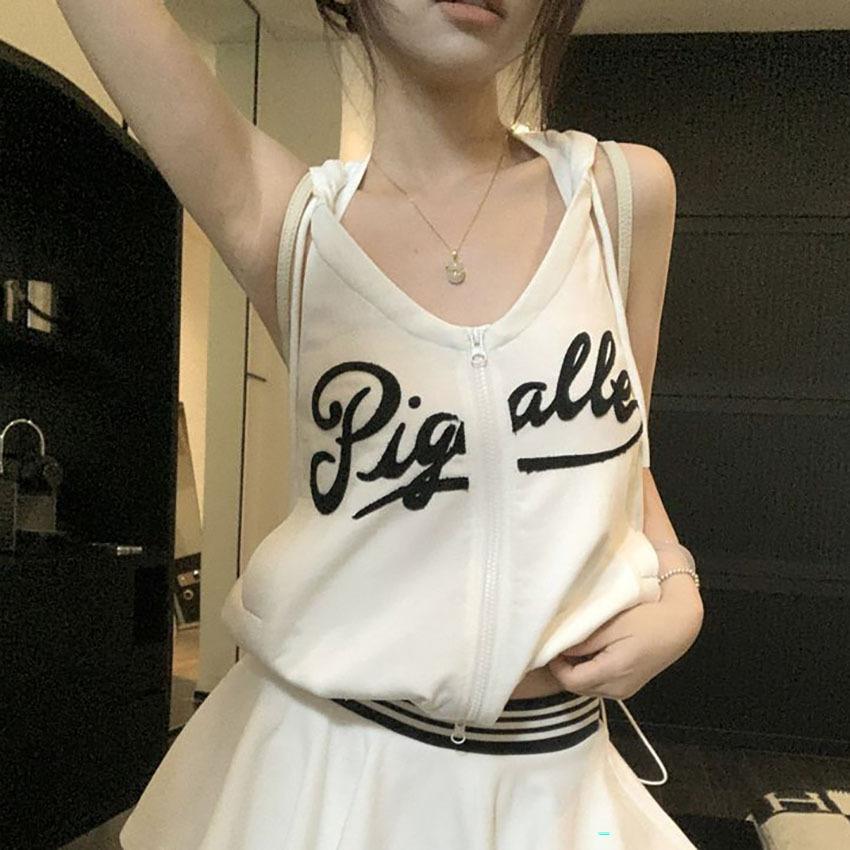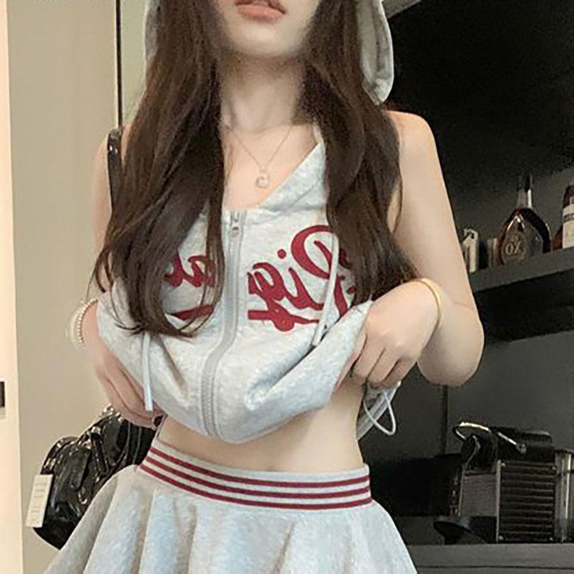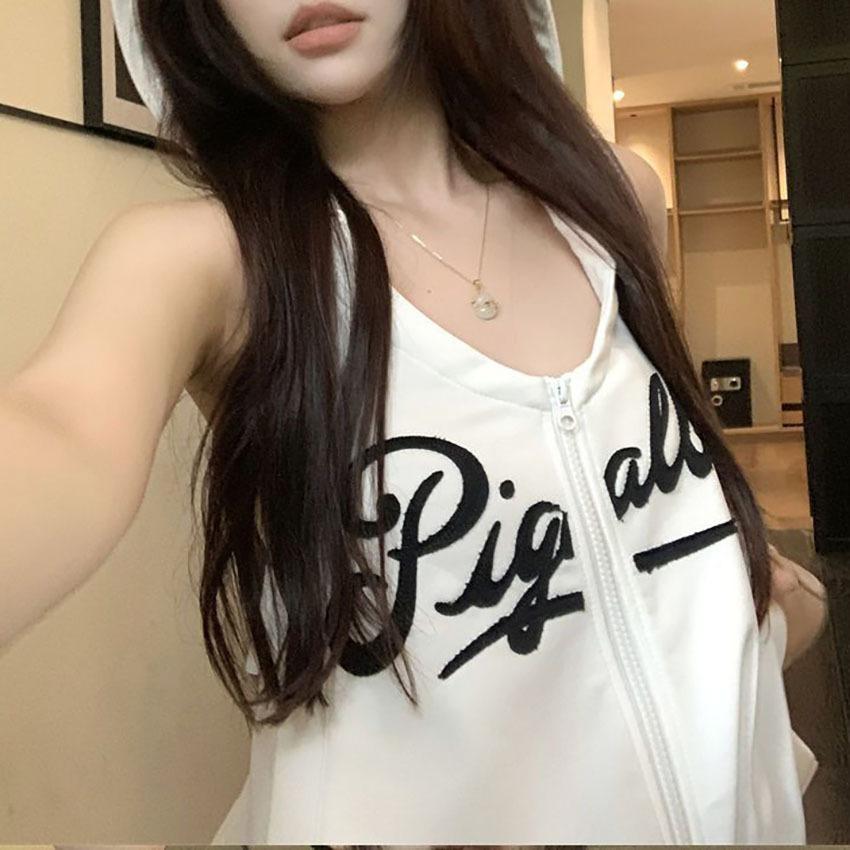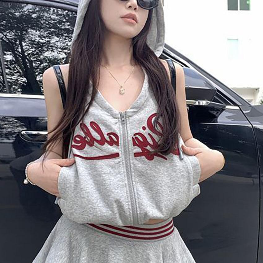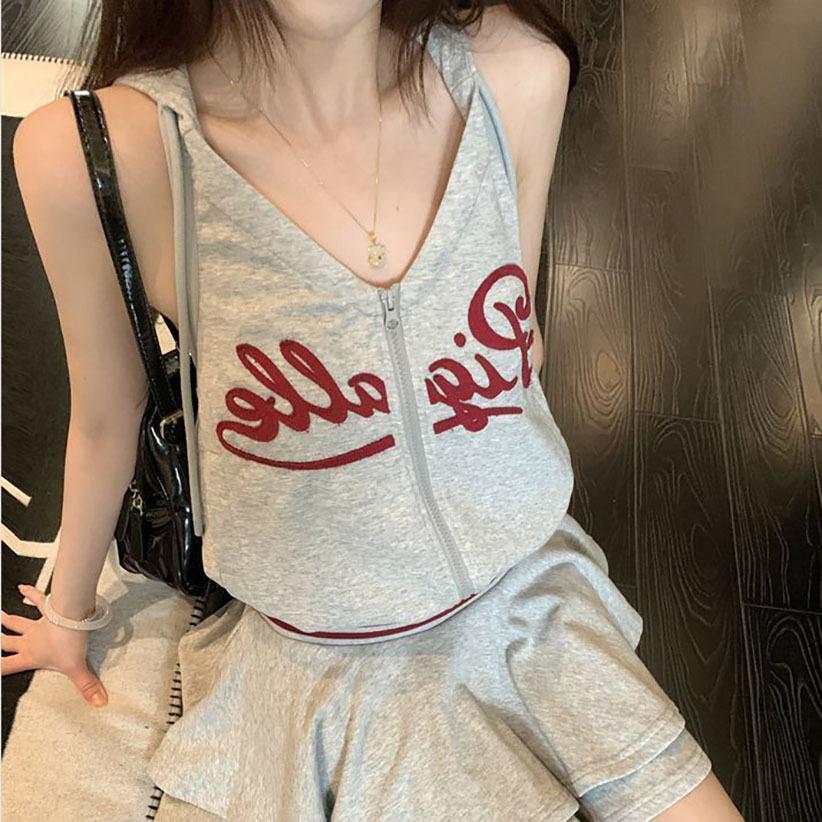 [20 Piezas Envío Gratis] Tops Deportivos Retro para Mujer Verano Nuevo Chaleco con Capucha Gris Dulce Cool Sexy Camiseta Corta