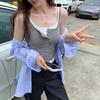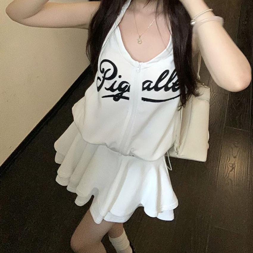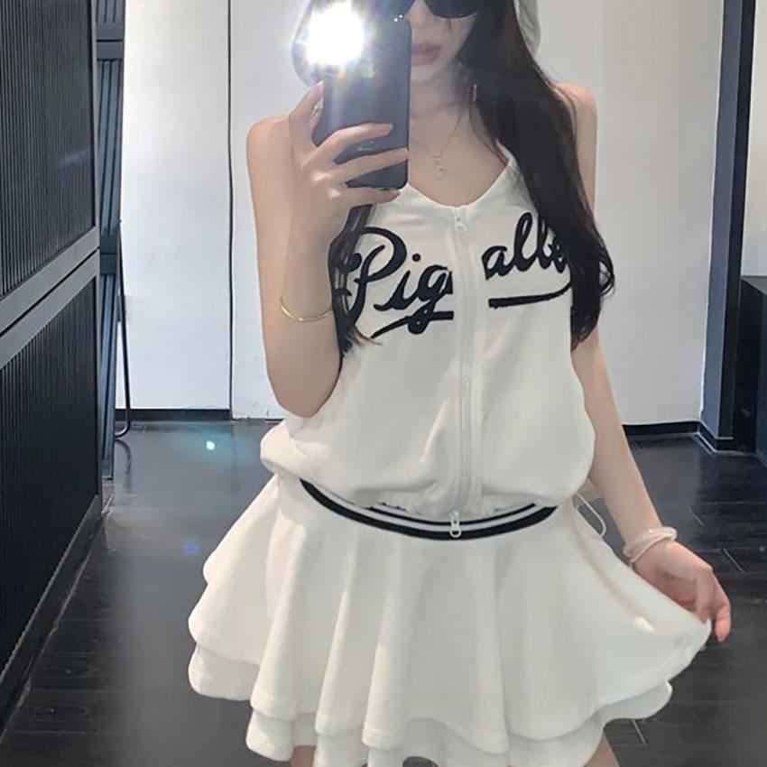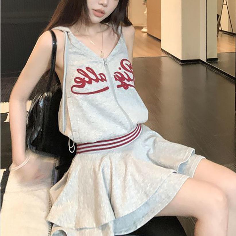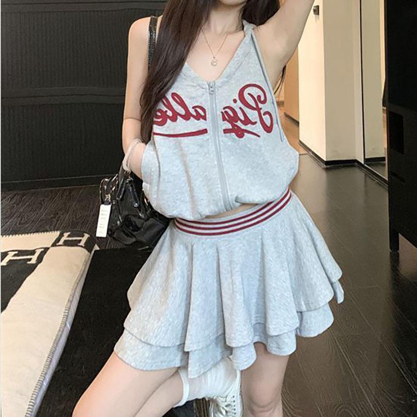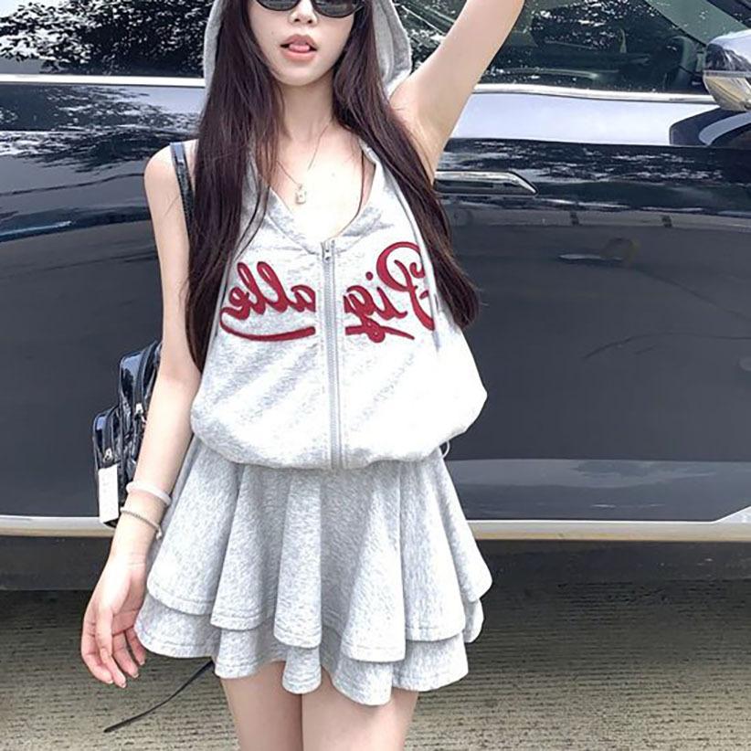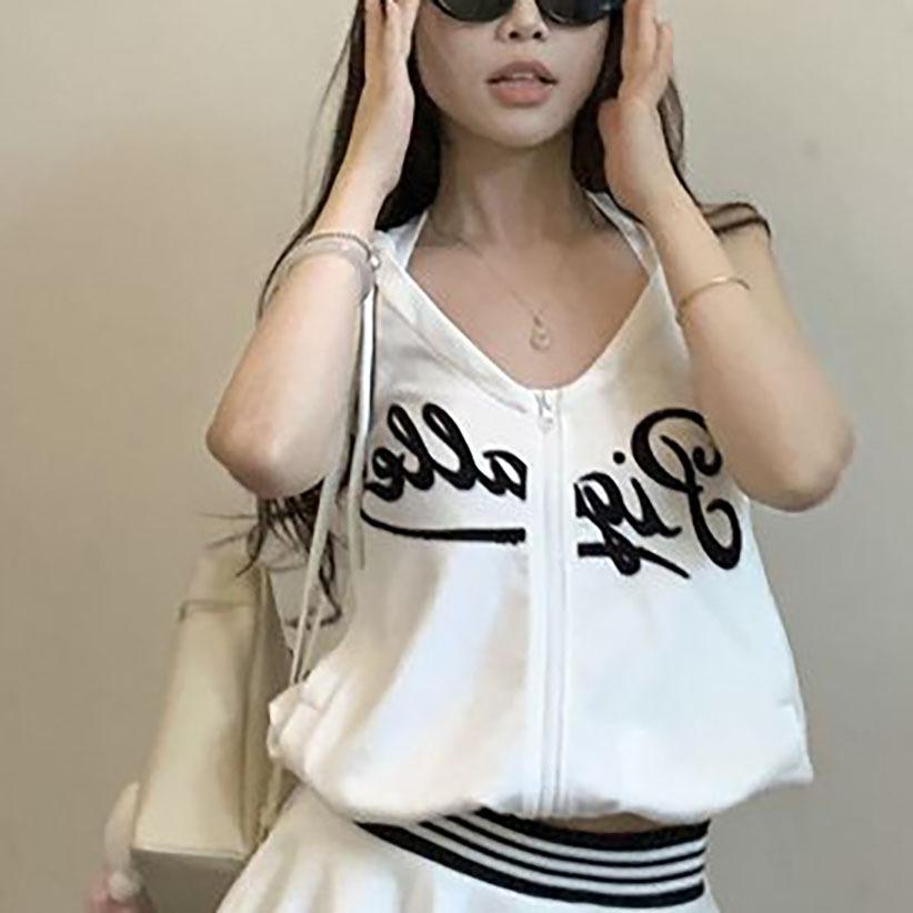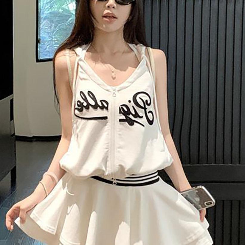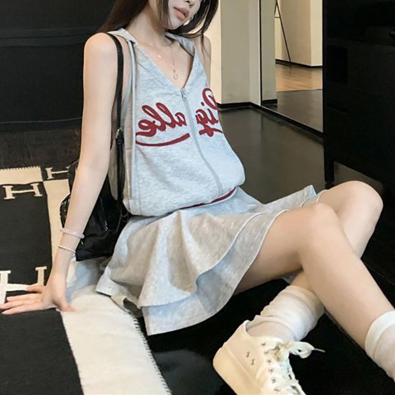 [20 Piezas Envío Gratis] Tops Deportivos Retro para Mujer Verano Nuevo Chaleco con Capucha Gris Dulce Cool Sexy Camiseta Corta