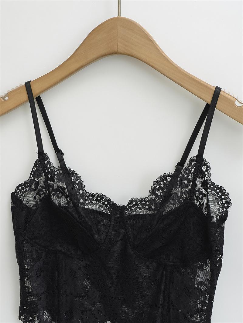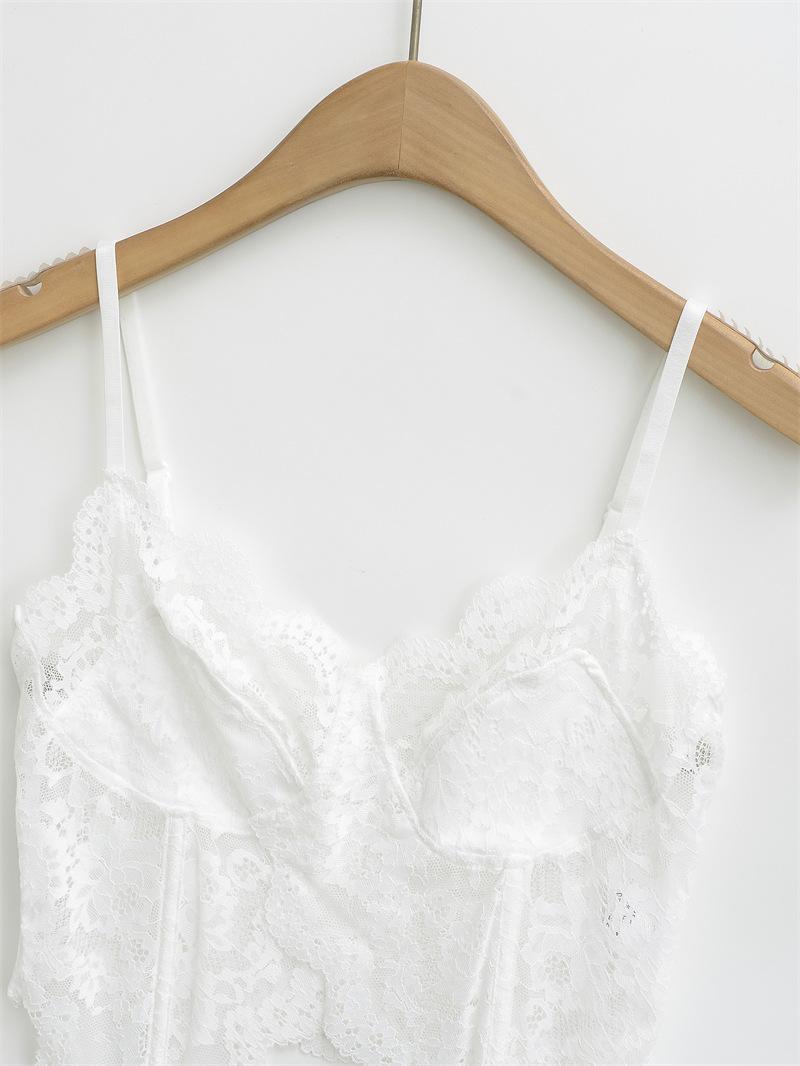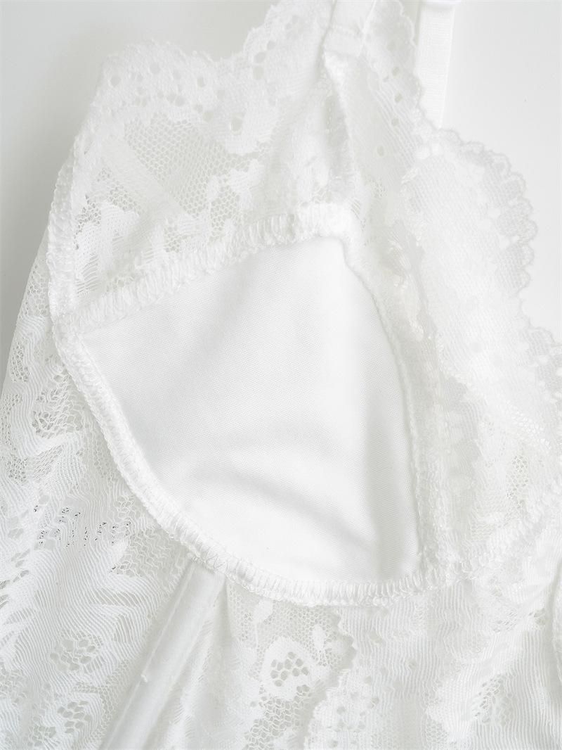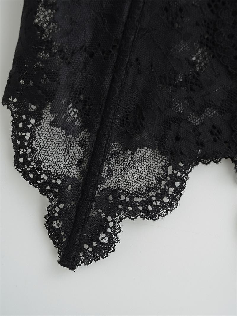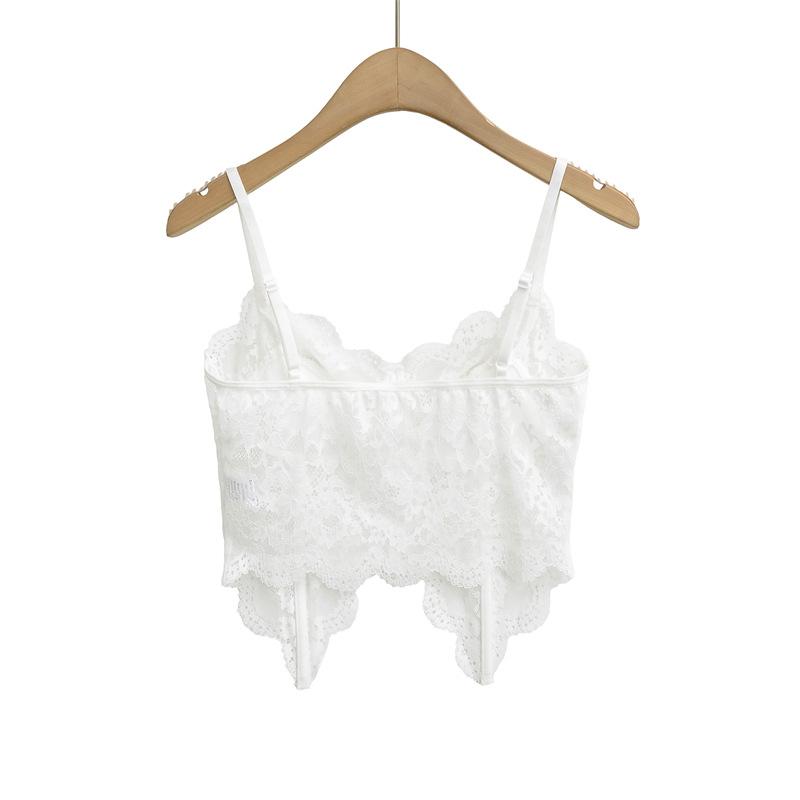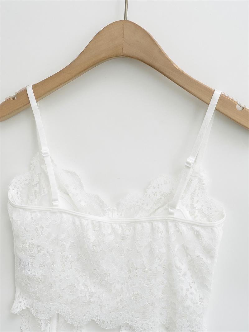 Estilo europeo y americano puro sexy para mujer, cuello en V, color sólido, borde ondulado, abertura irregular, camisola de encaje de mariposa de verano
