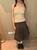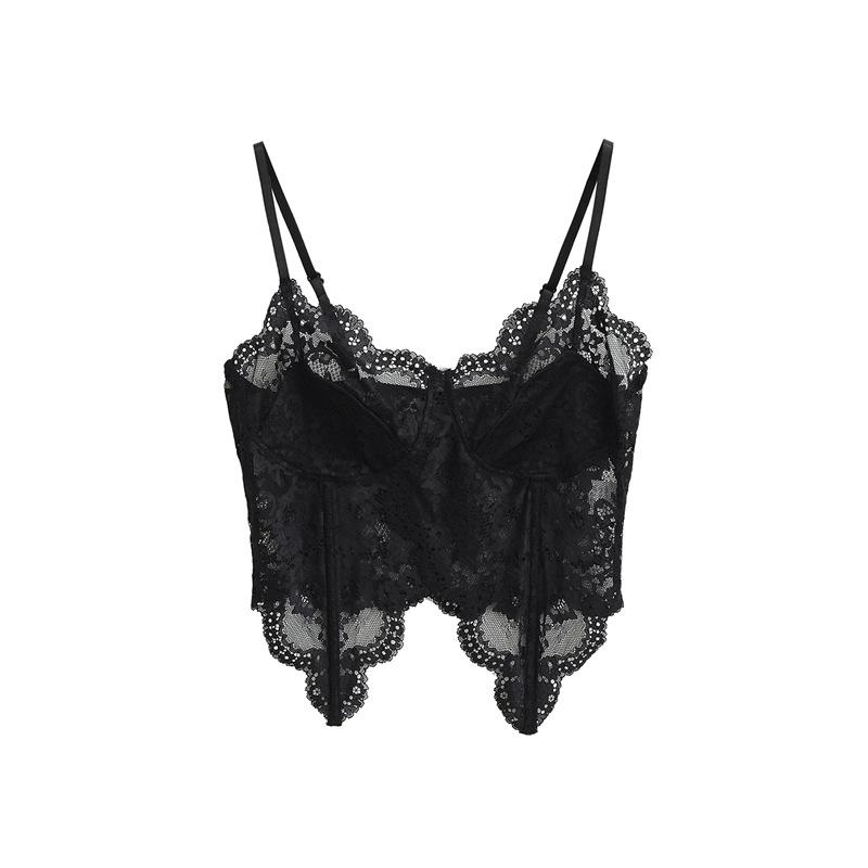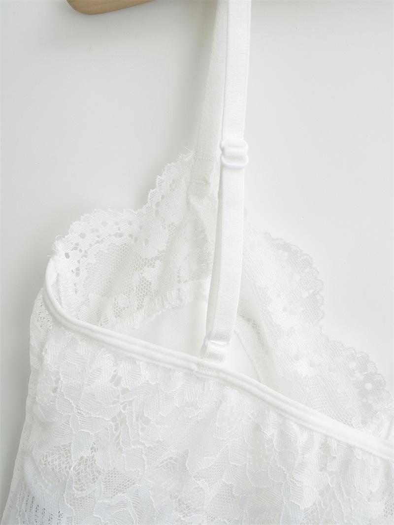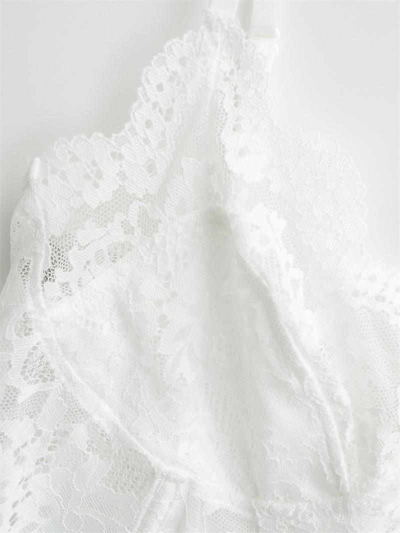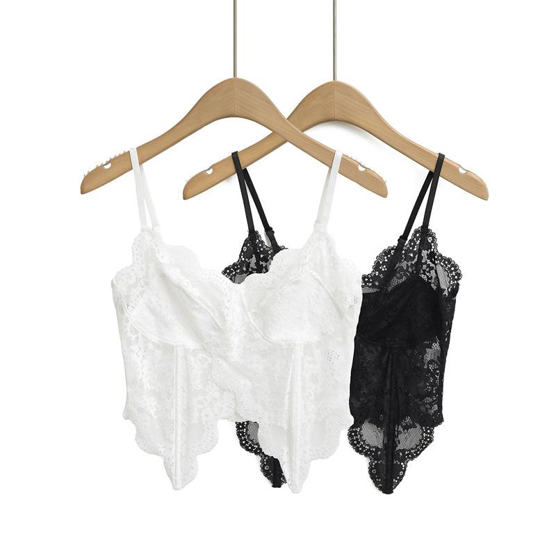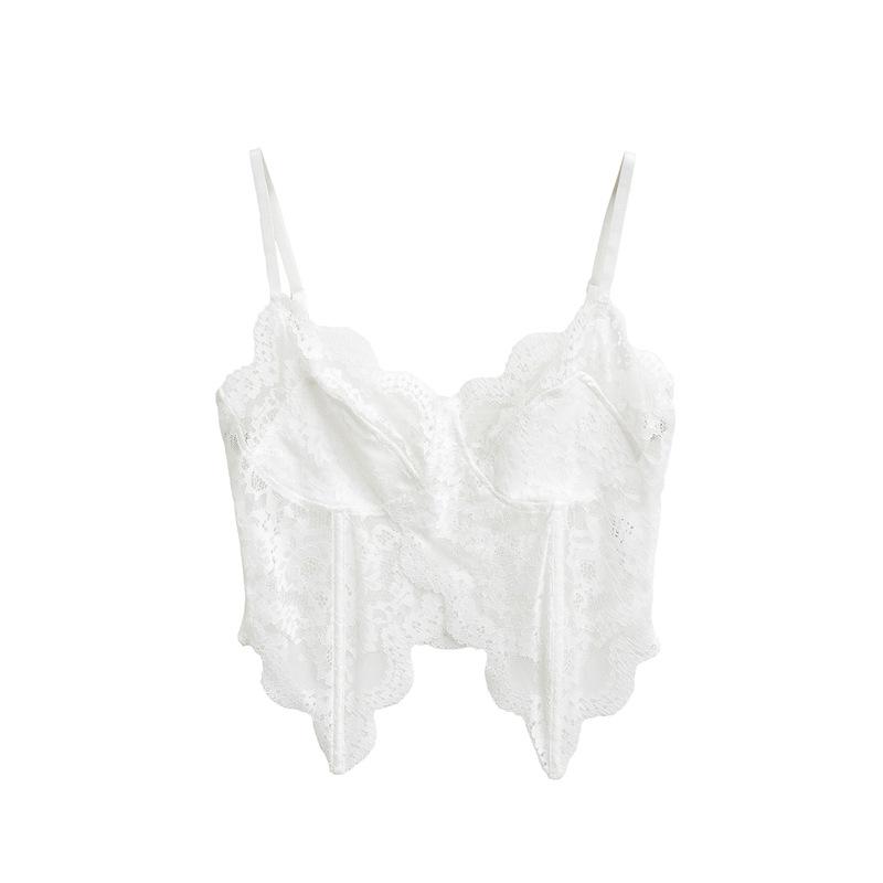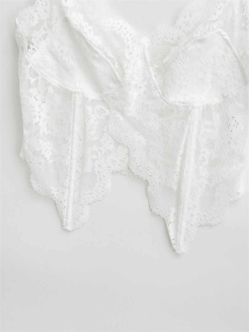 Estilo europeo y americano puro sexy para mujer, cuello en V, color sólido, borde ondulado, abertura irregular, camisola de encaje de mariposa de verano