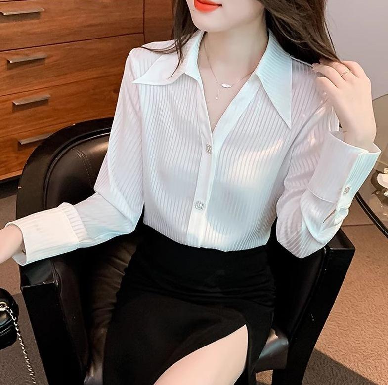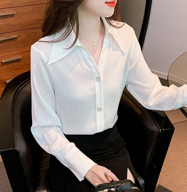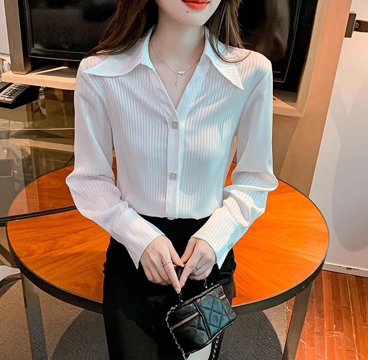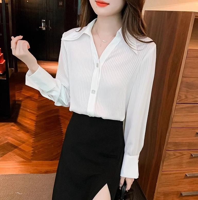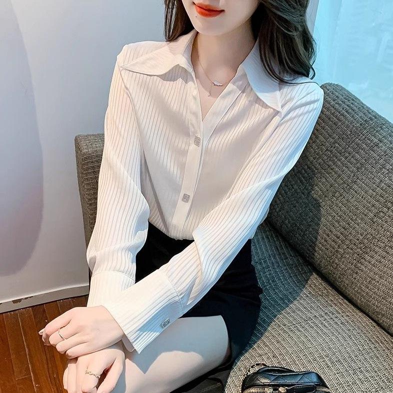 Camisa de Chifón Rayada Pequeña para Mujer Nueva para Primavera y Otoño 2025 Top de Manga Larga Camisa de Moda que Combina con Todo