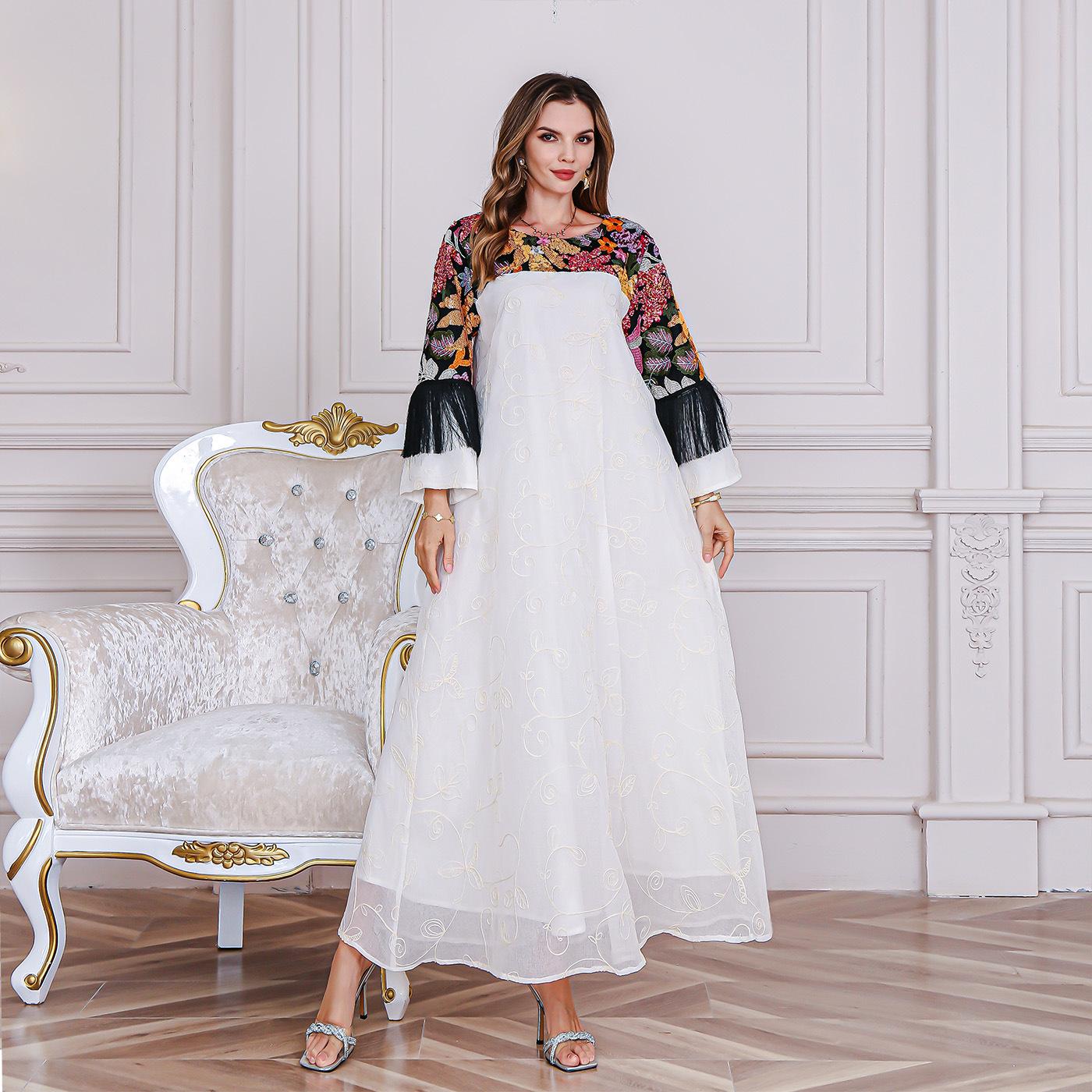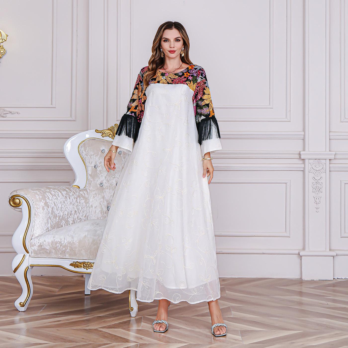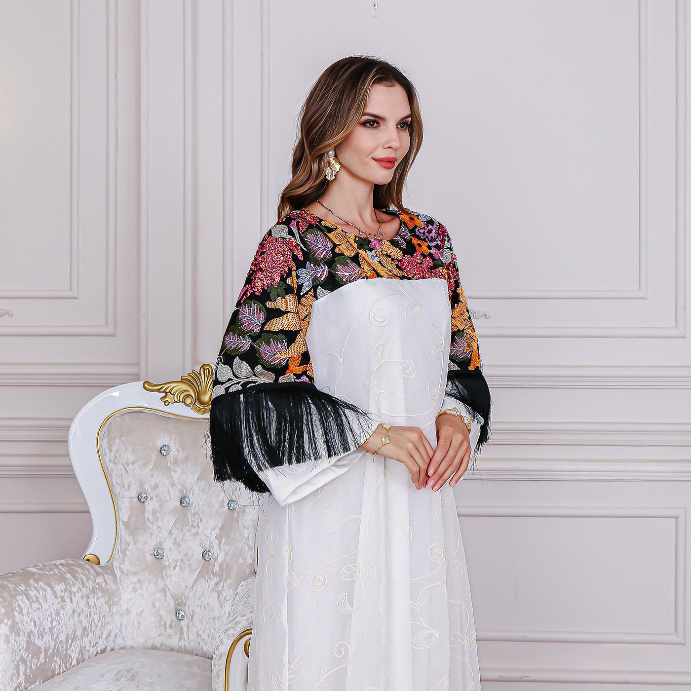 Bata Musulmana Personalizada OEM Bordada con Cuentas Vestido Abaya para Mujer Nuevo Vestido de Noche