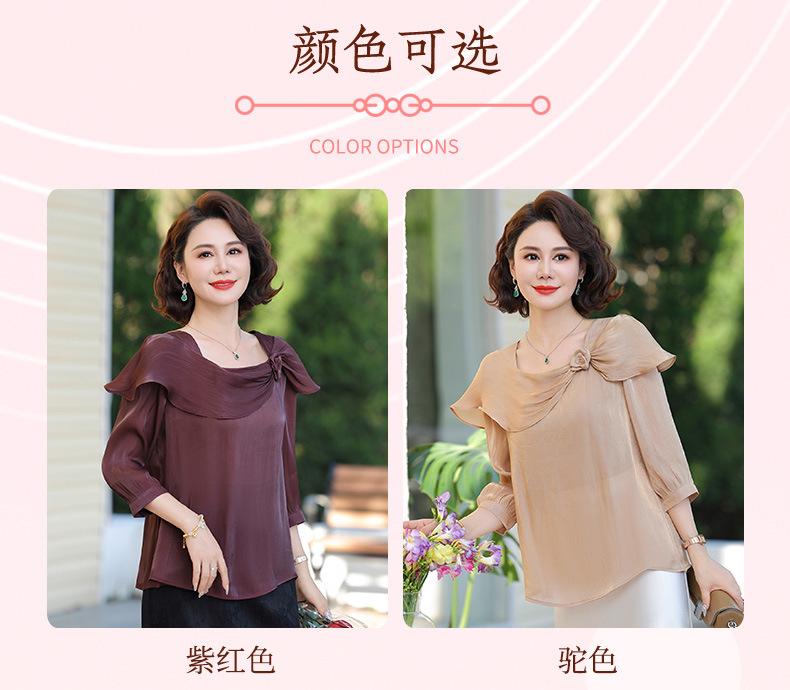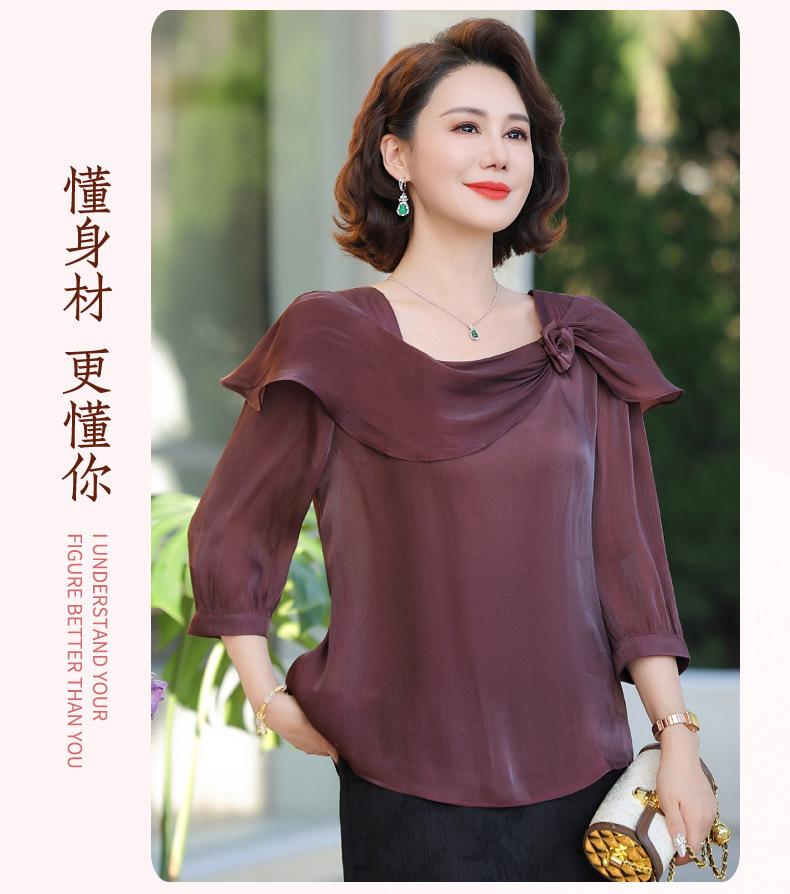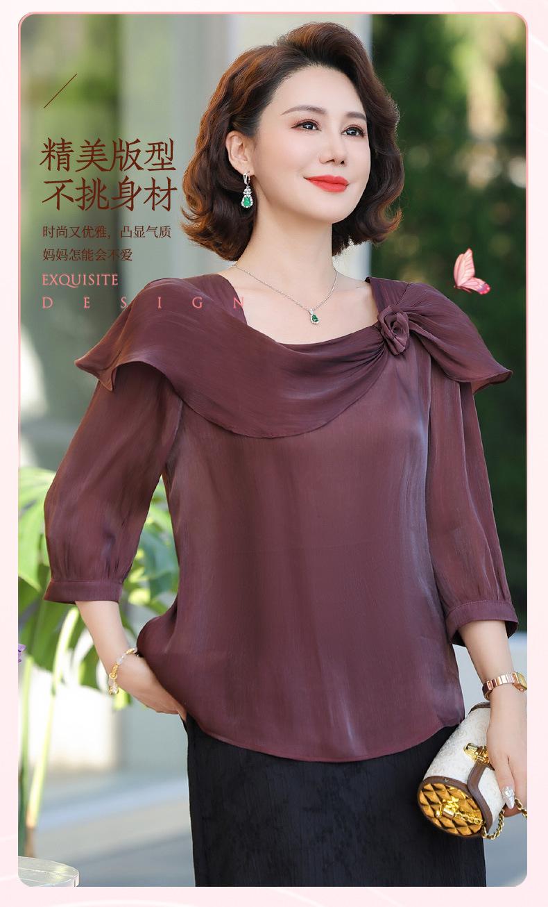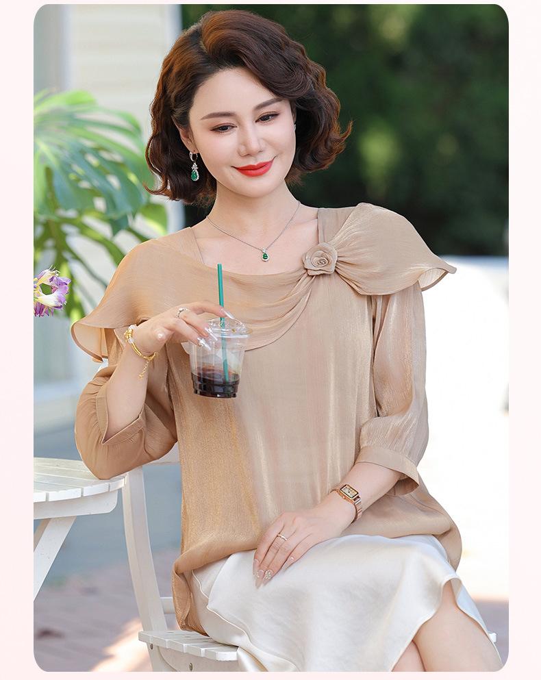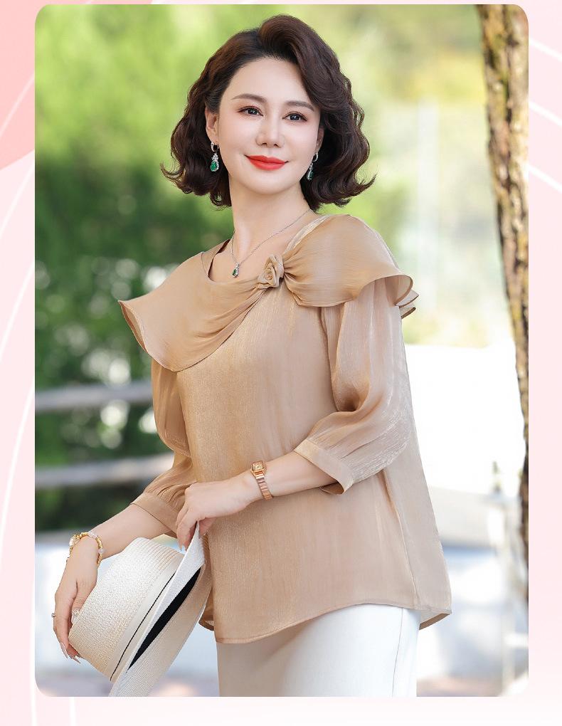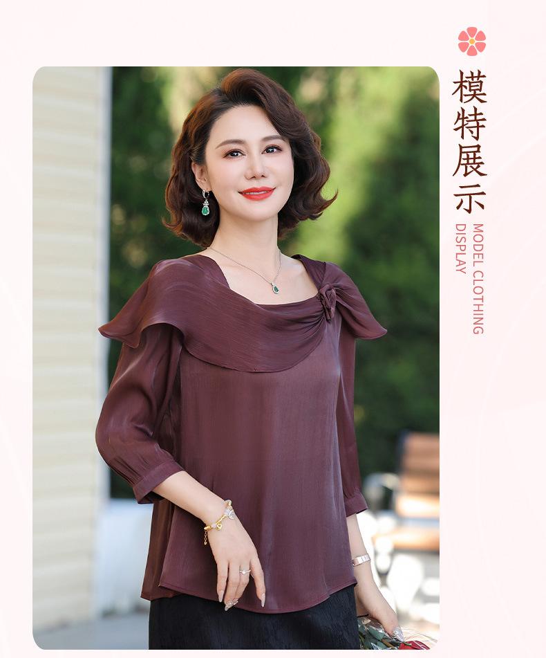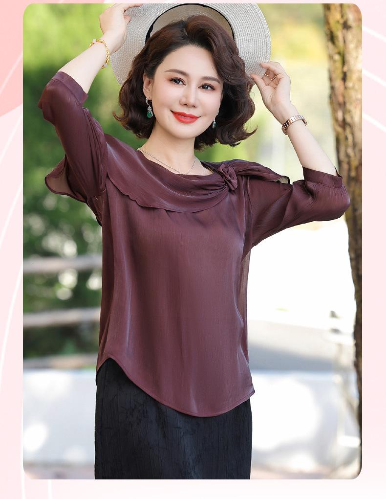 Estilo de Verano de Mamá Top de Manga Corta con Lazo 2025 Nueva Moda para Mujeres de Mediana Edad Nueva Camisa Delgada