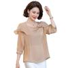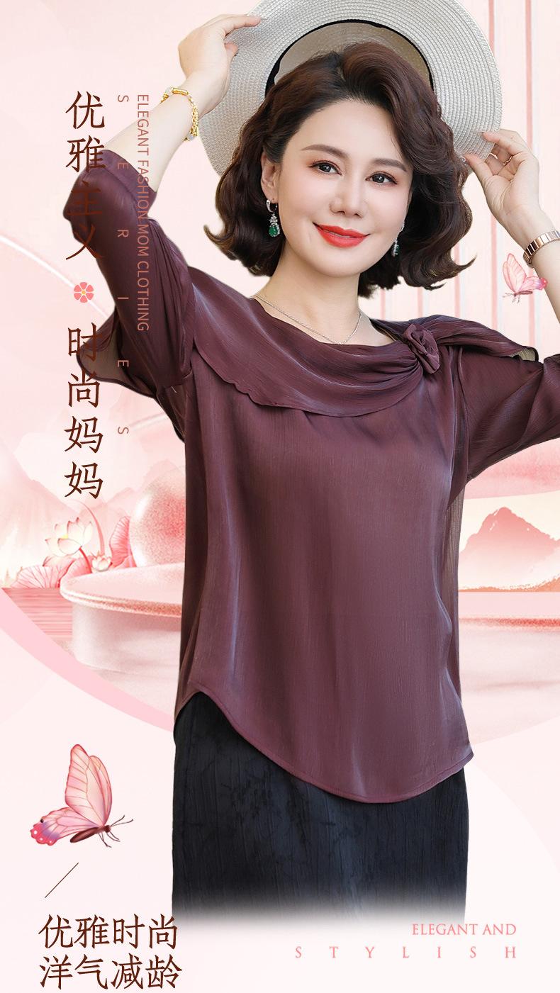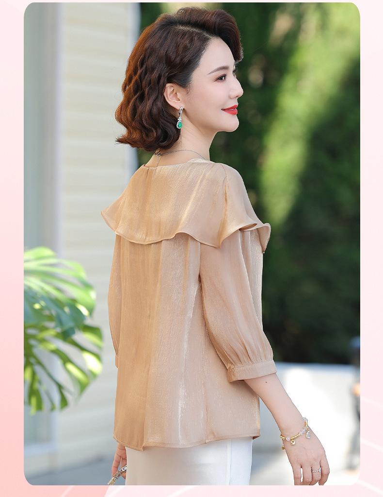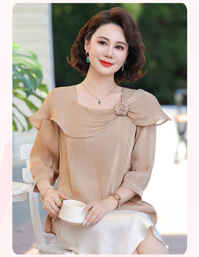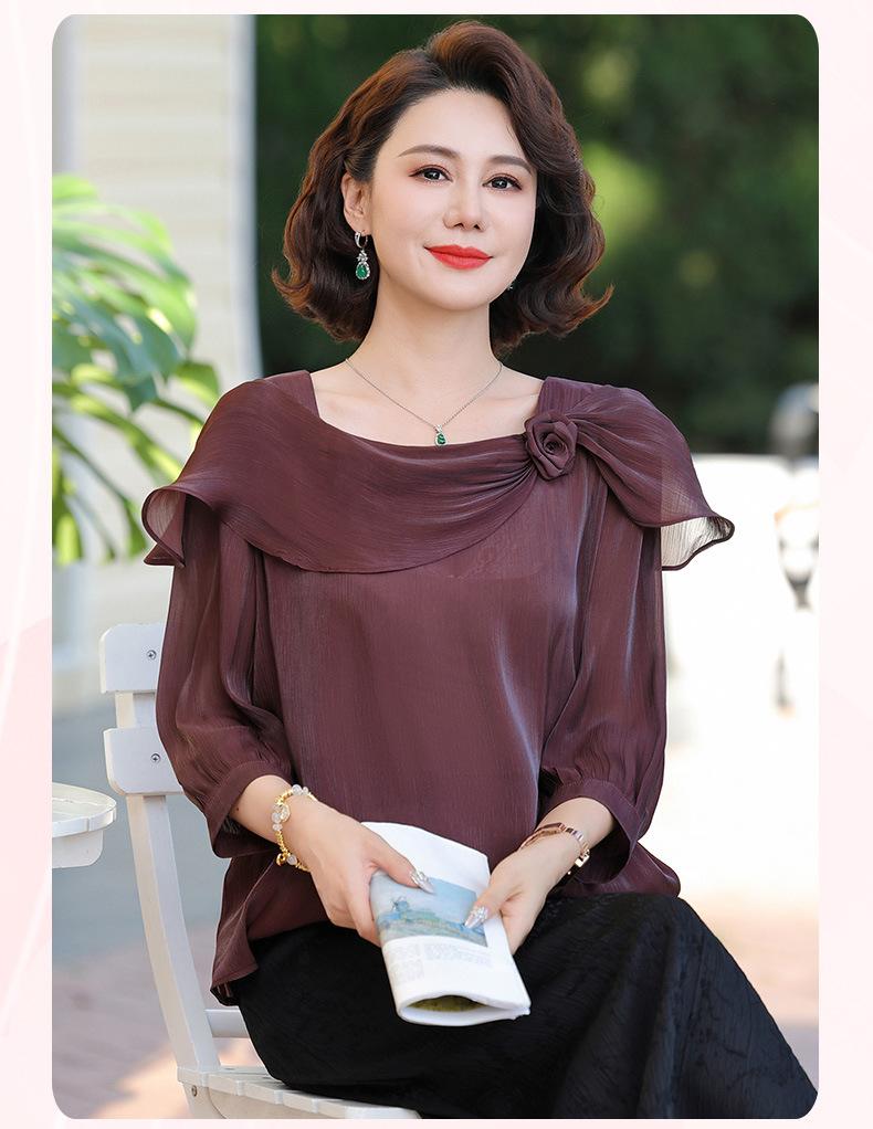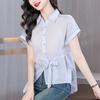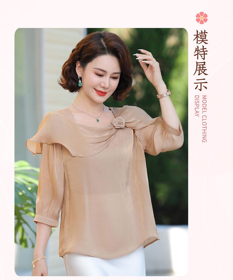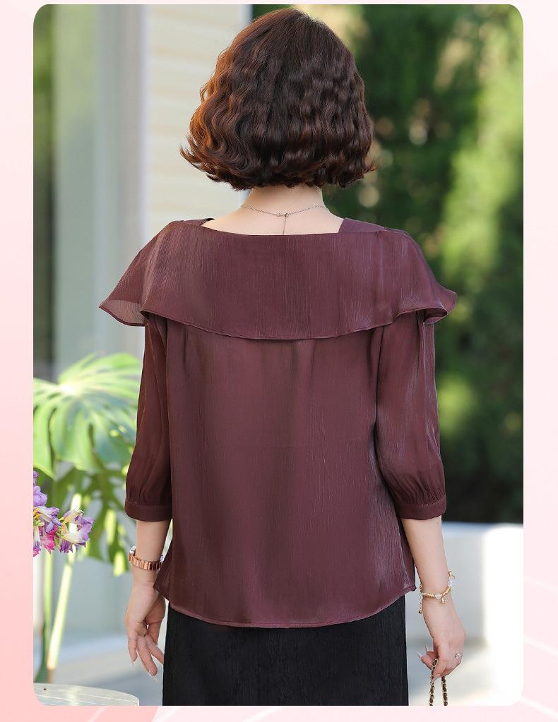 Estilo de Verano de Mamá Top de Manga Corta con Lazo 2025 Nueva Moda para Mujeres de Mediana Edad Nueva Camisa Delgada