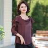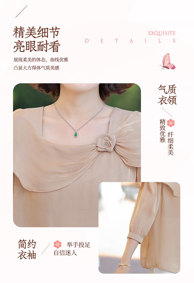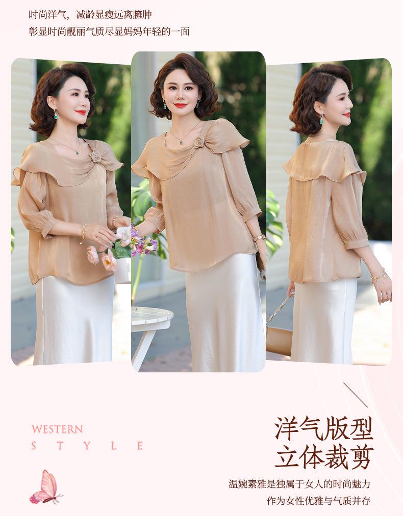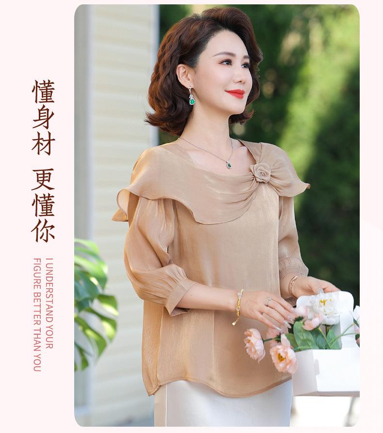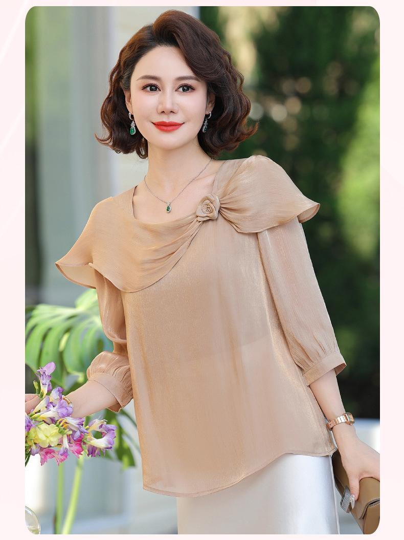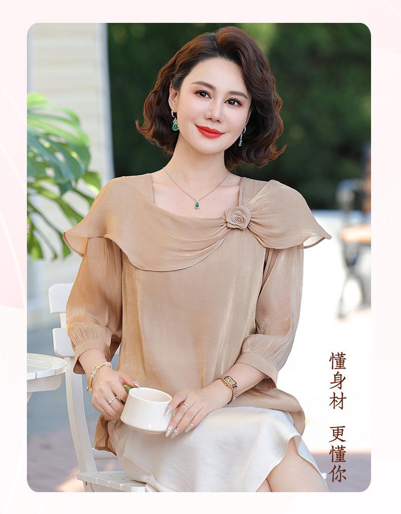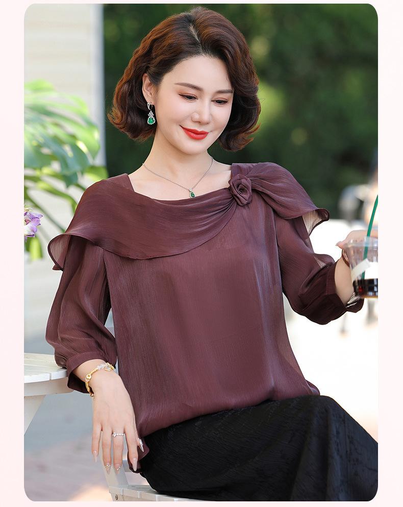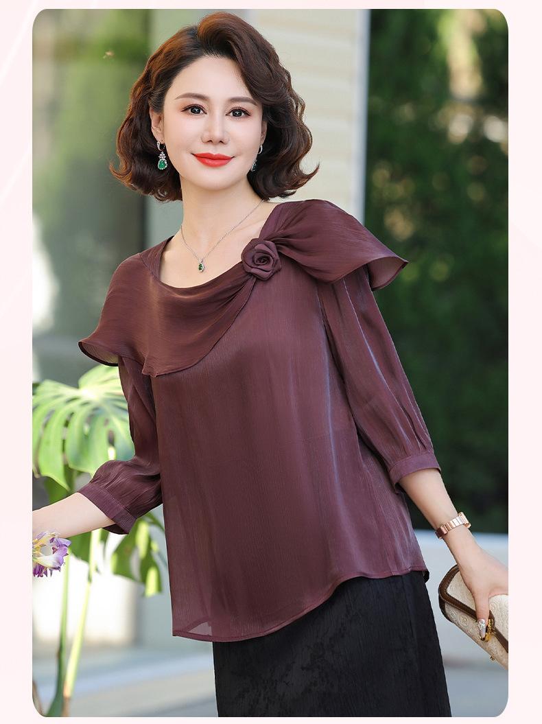 Estilo de Verano de Mamá Top de Manga Corta con Lazo 2025 Nueva Moda para Mujeres de Mediana Edad Nueva Camisa Delgada