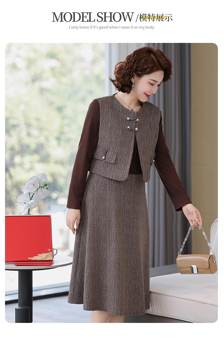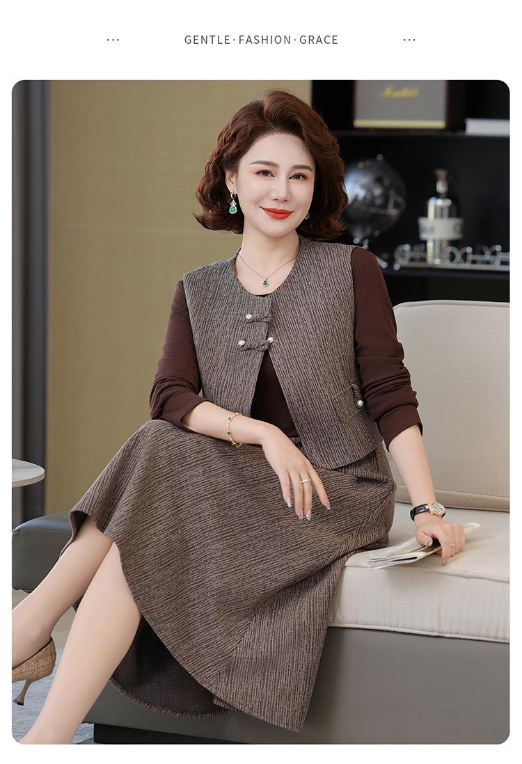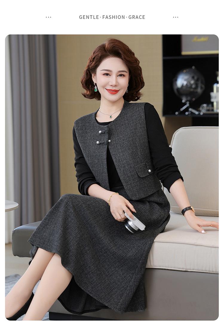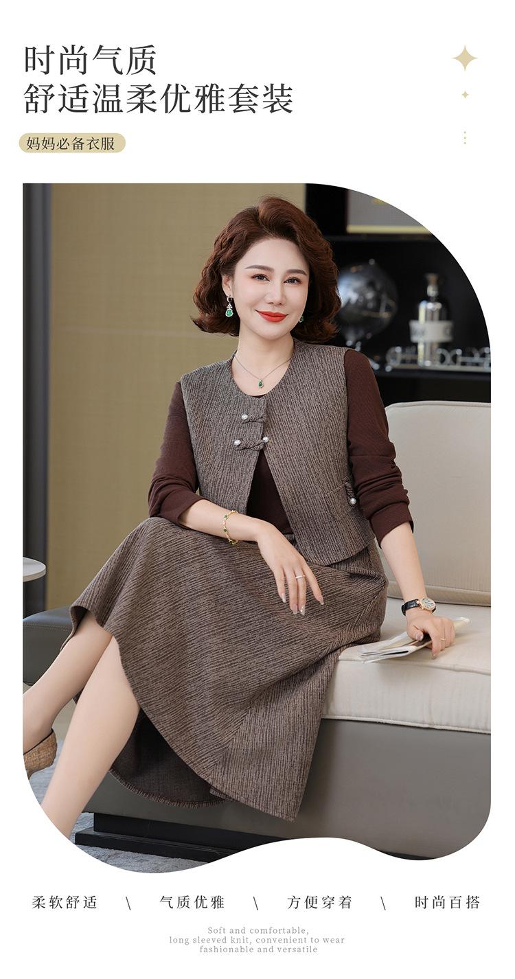 Traje de moda de alta gama para mujer 2025 primavera nuevo estilo pequeño fragante para madre de mediana edad y anciana vestido chaleco conjunto de tres piezas