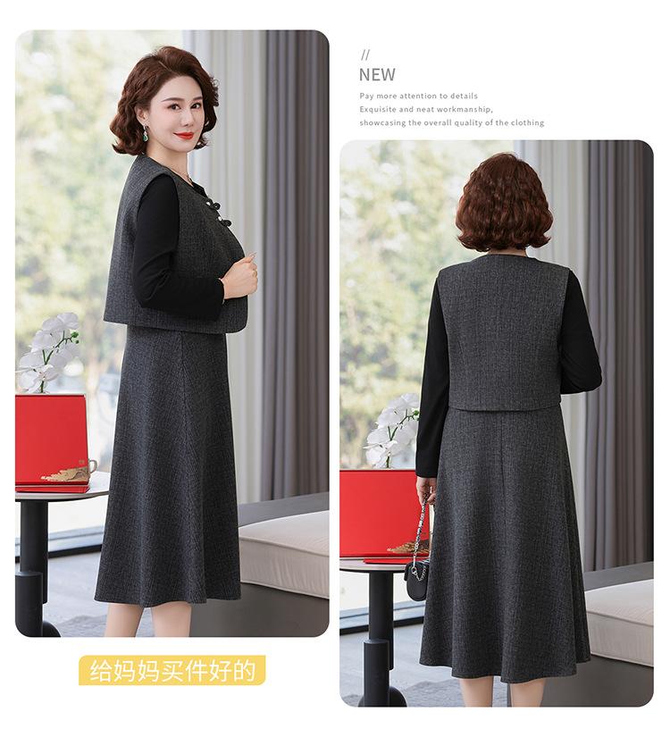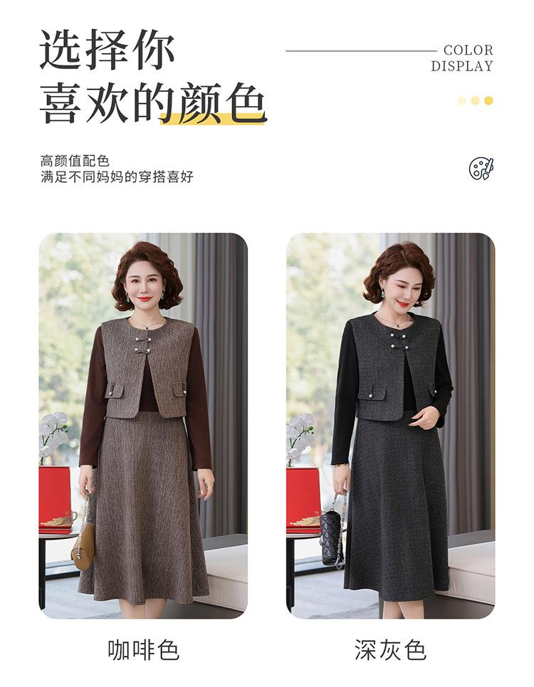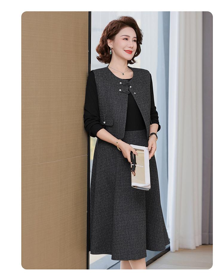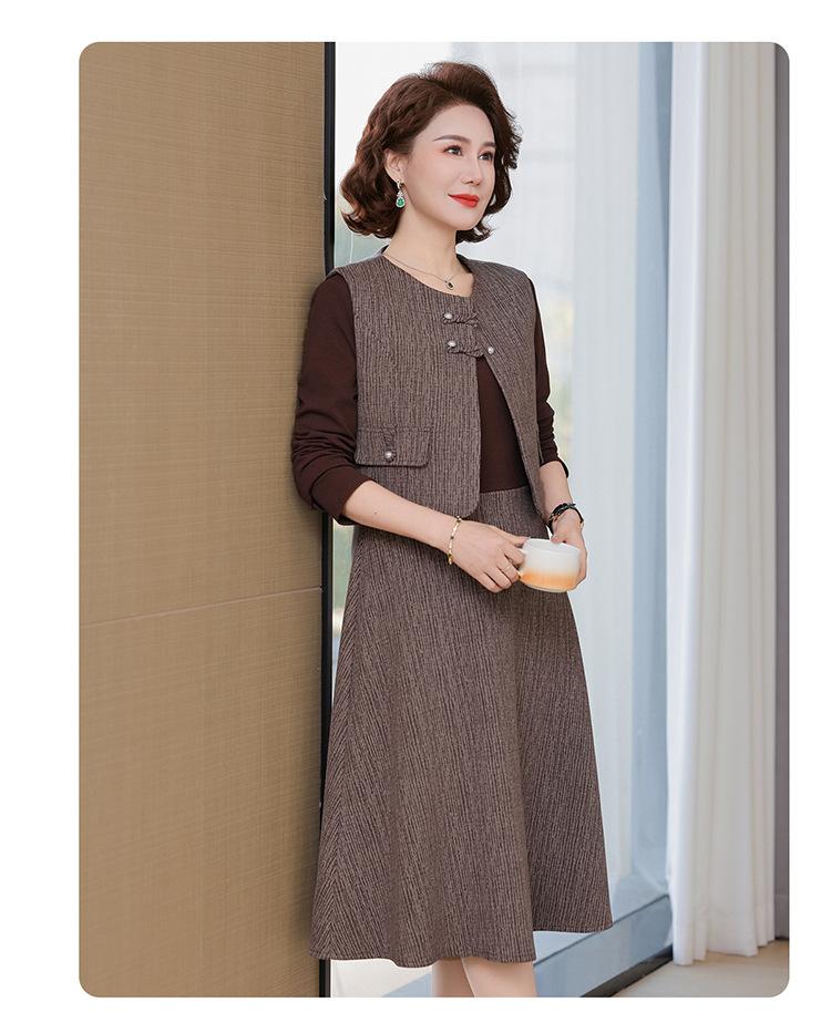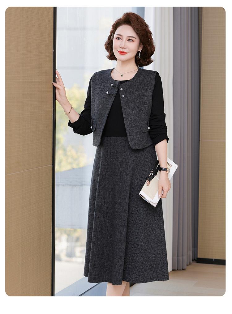 Traje de moda de alta gama para mujer 2025 primavera nuevo estilo pequeño fragante para madre de mediana edad y anciana vestido chaleco conjunto de tres piezas