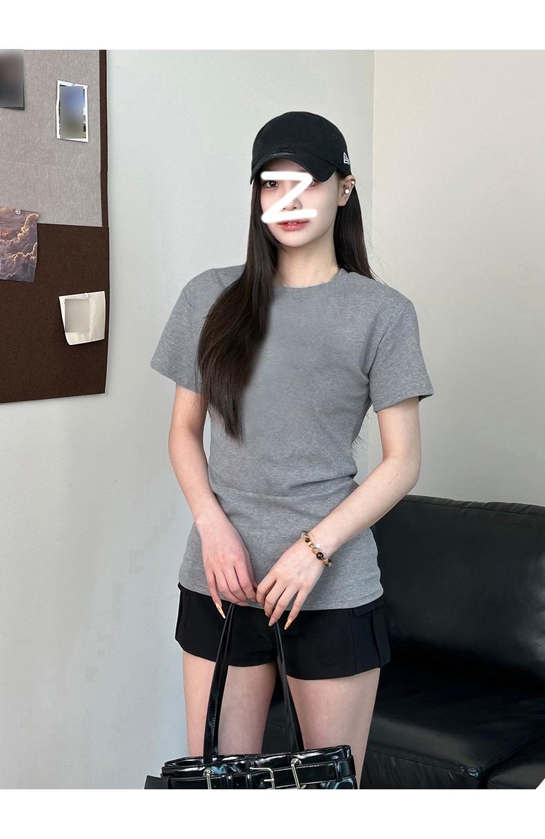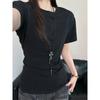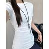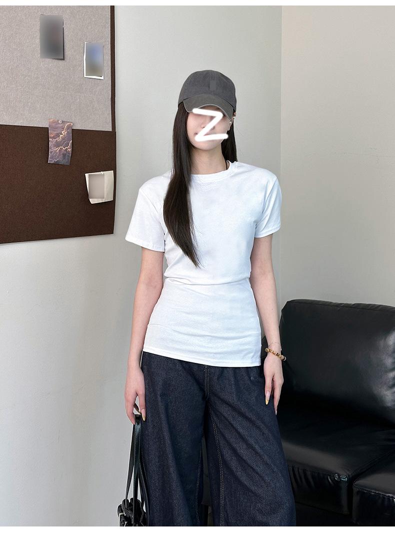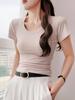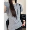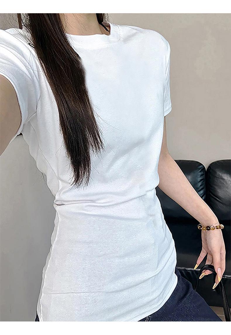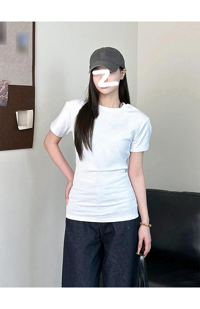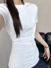 Playera Básica Sencilla de Algodón Puro Americano de Manga Corta con Hombro Derecho Descubierto para Mujer Verano 2025 Nuevo Sexy Cubre-Busto Top con Aspecto Adelgazante