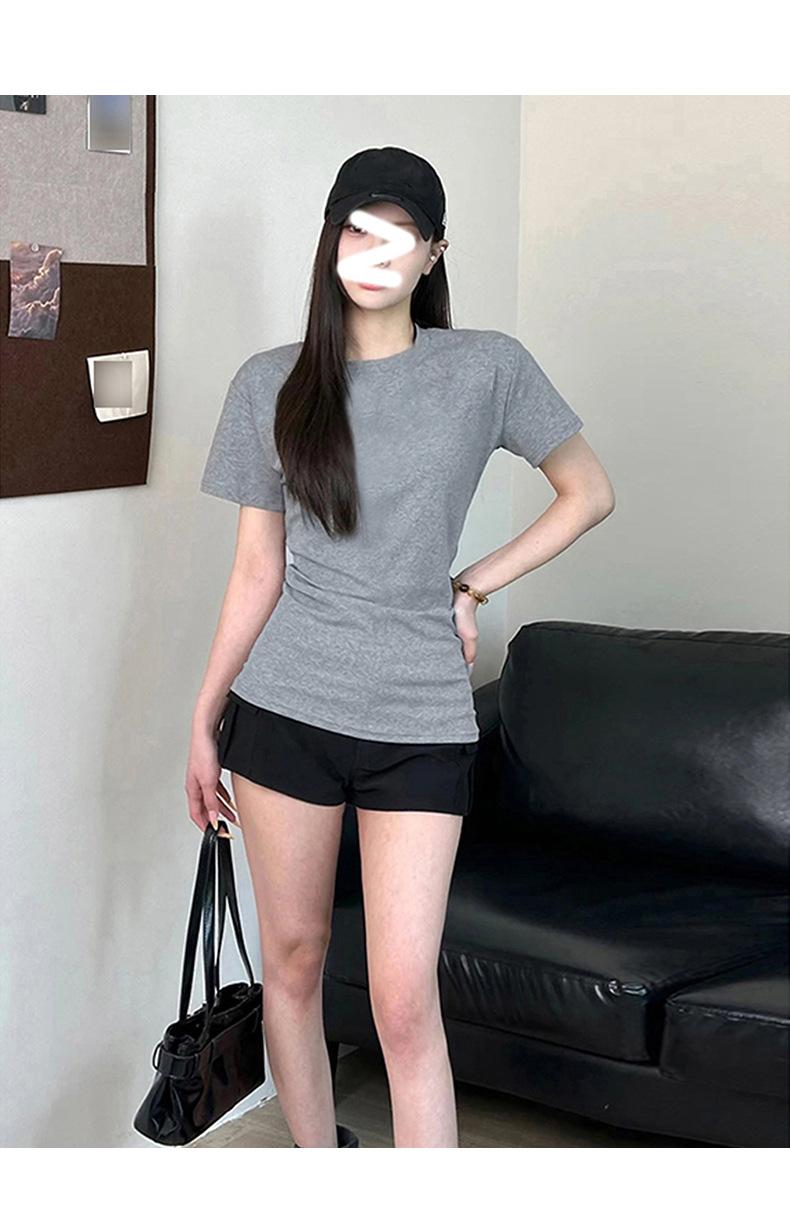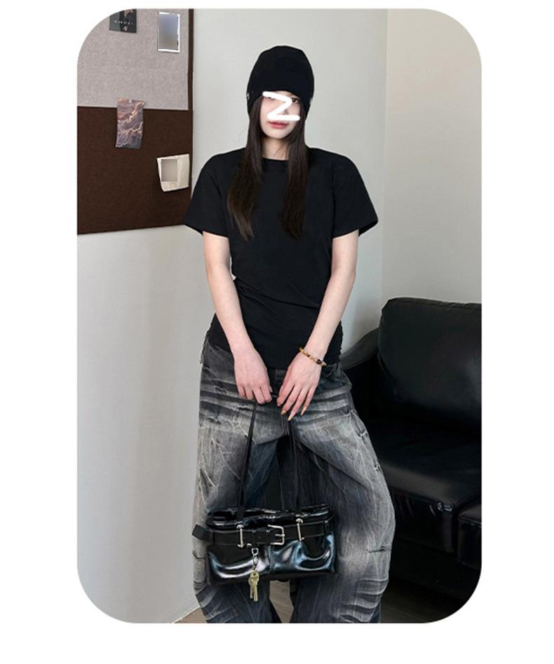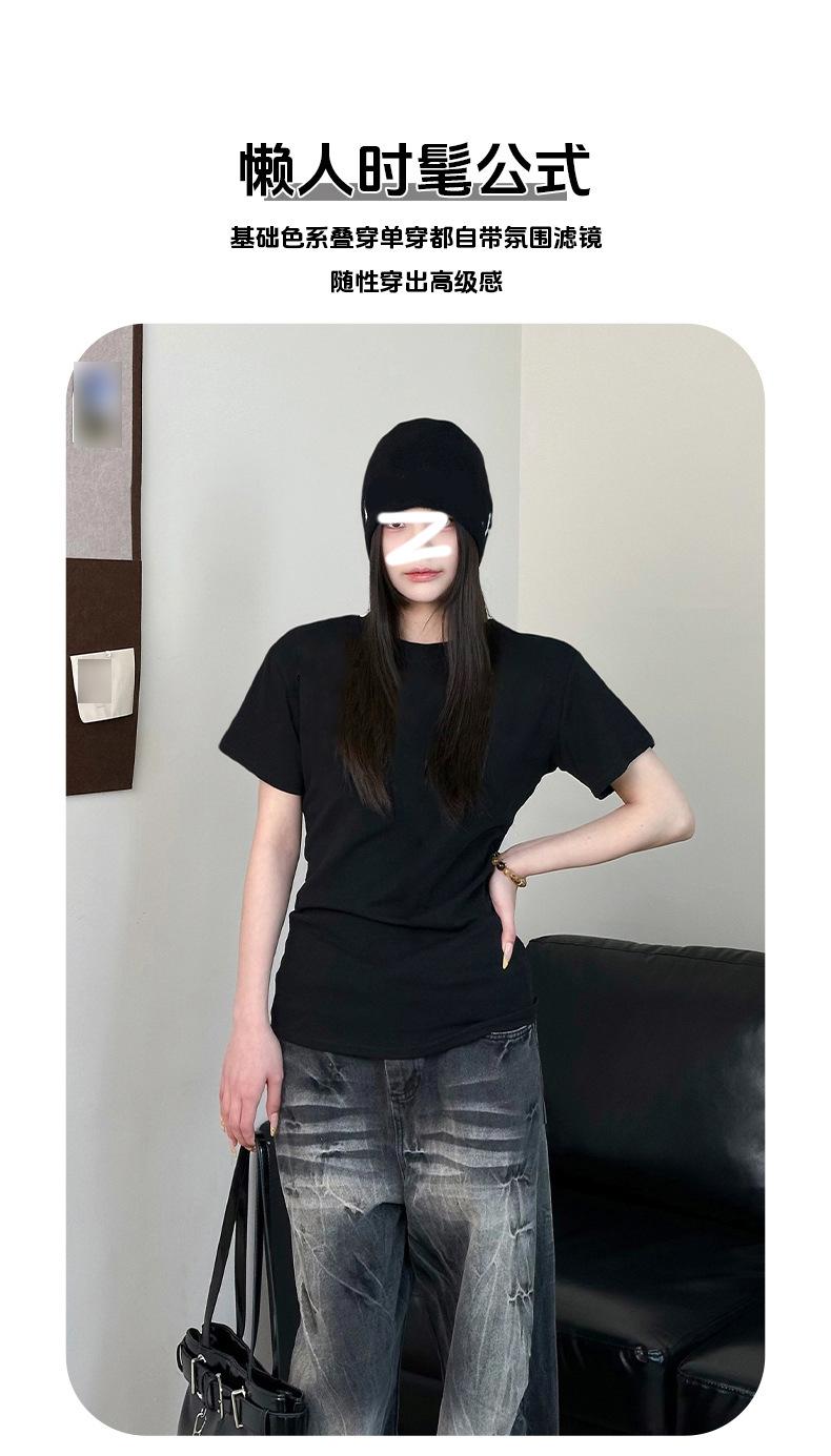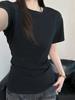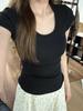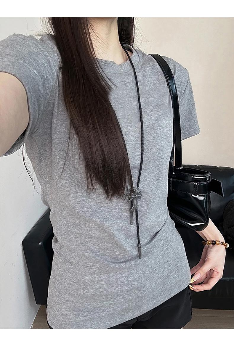 Playera Básica Sencilla de Algodón Puro Americano de Manga Corta con Hombro Derecho Descubierto para Mujer Verano 2025 Nuevo Sexy Cubre-Busto Top con Aspecto Adelgazante