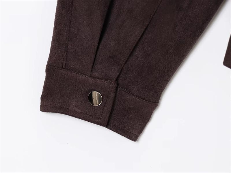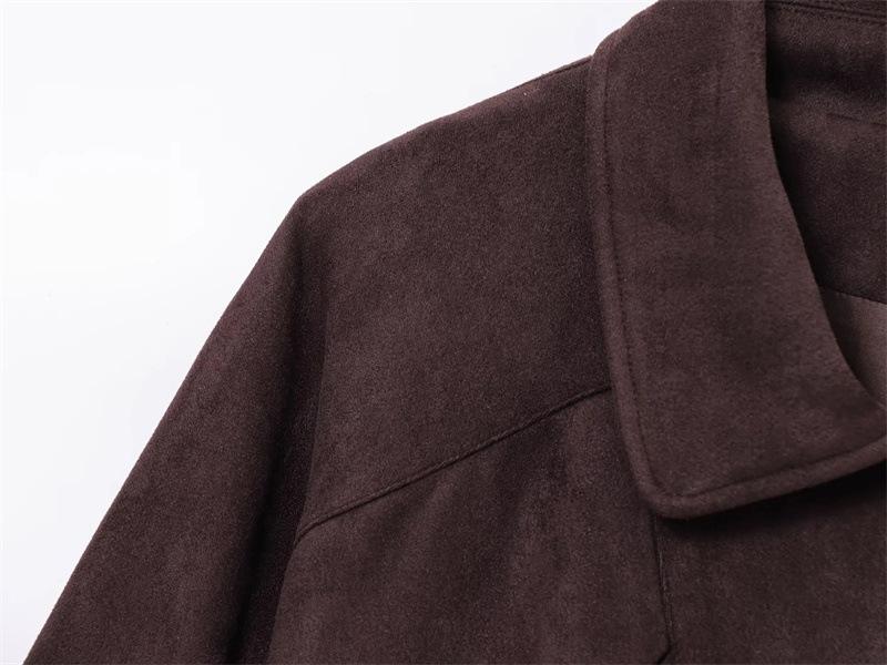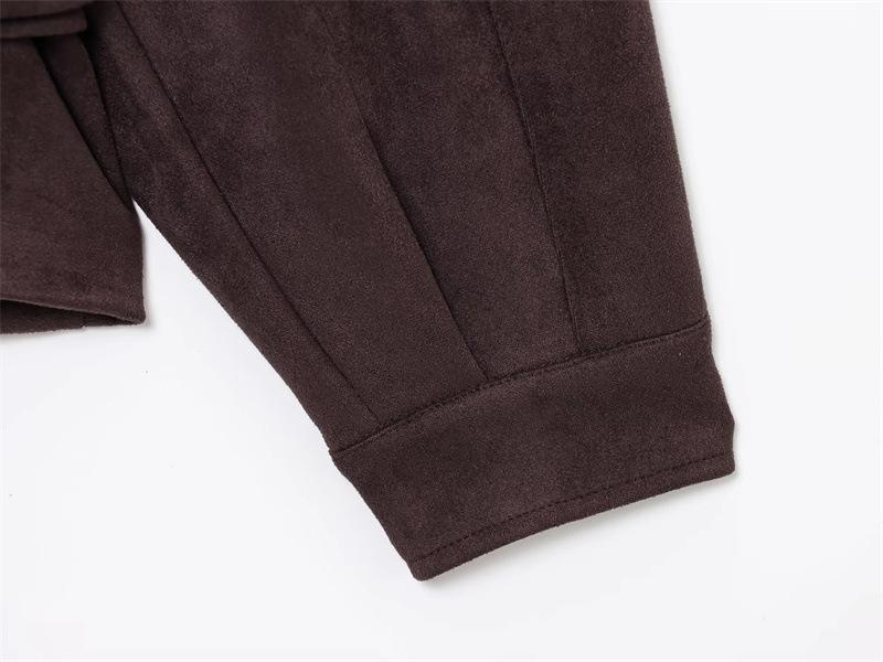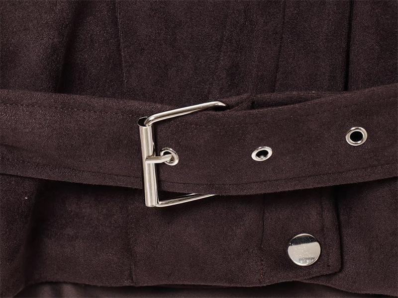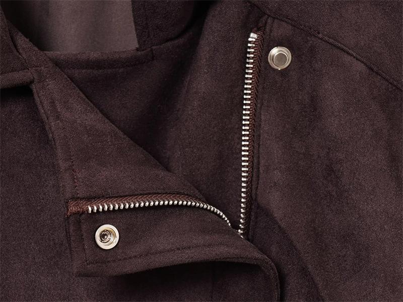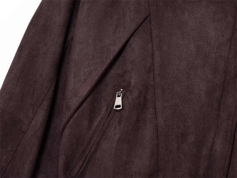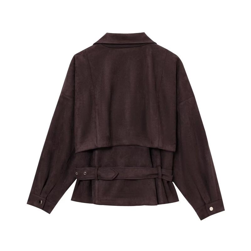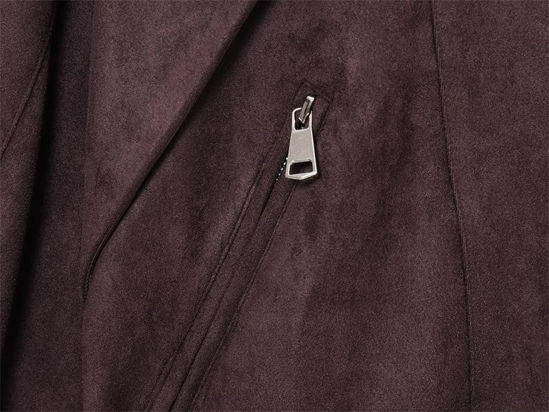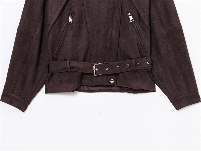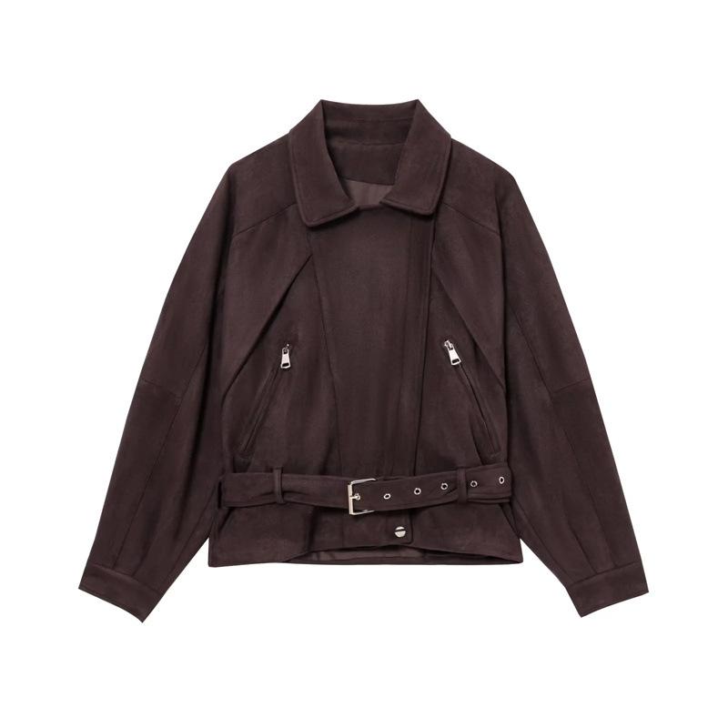 2025 Primavera Mujer Estilo Europeo y Americano Moda Casual Más Fácil de Combinar Solapa Gamuza Estilo Motociclista Chaqueta con Cinturón Chaqueta