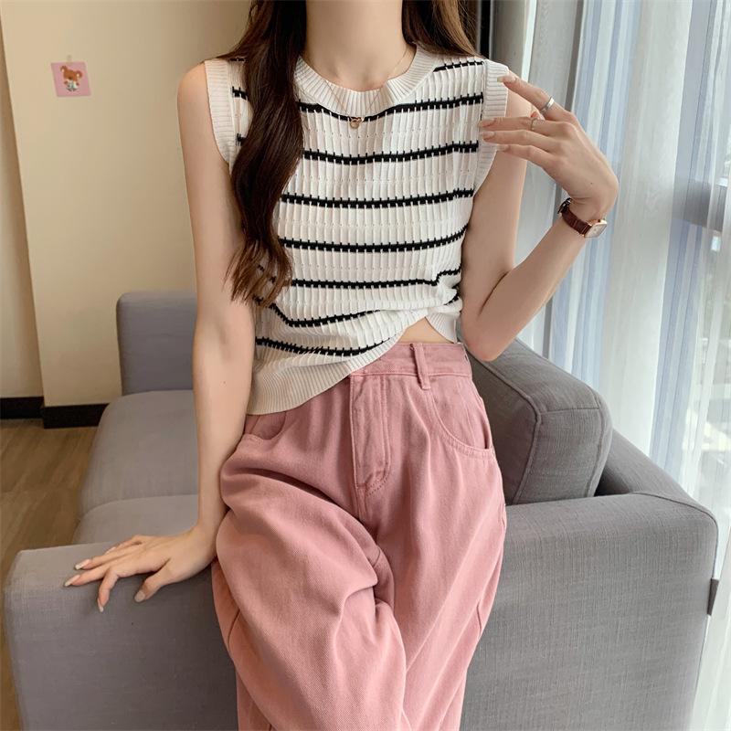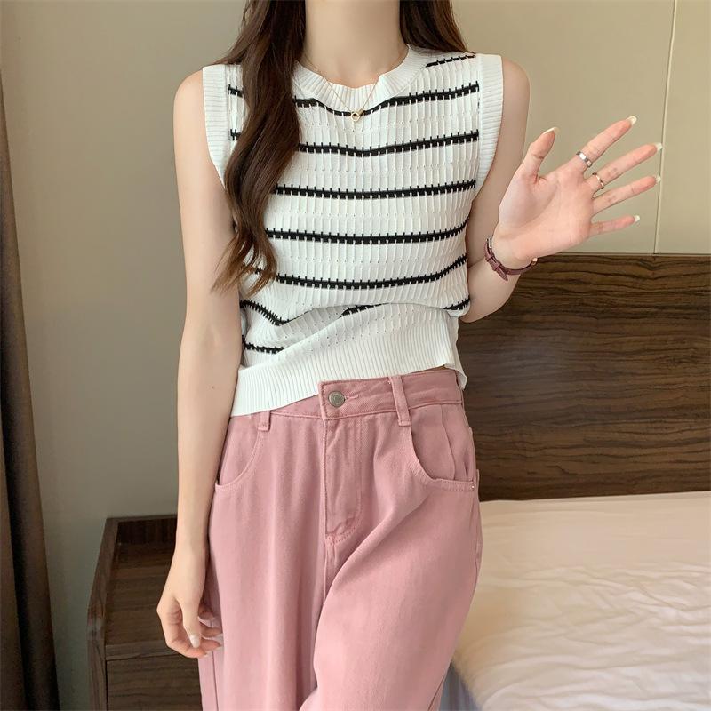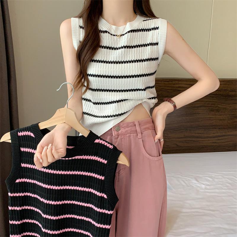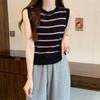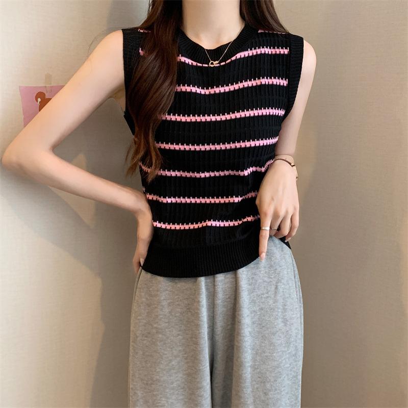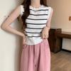Verano Nuevo Estilo Coreano Combinable Color Rayado Sin Mangas Top Chaleco de Punto para Mujer