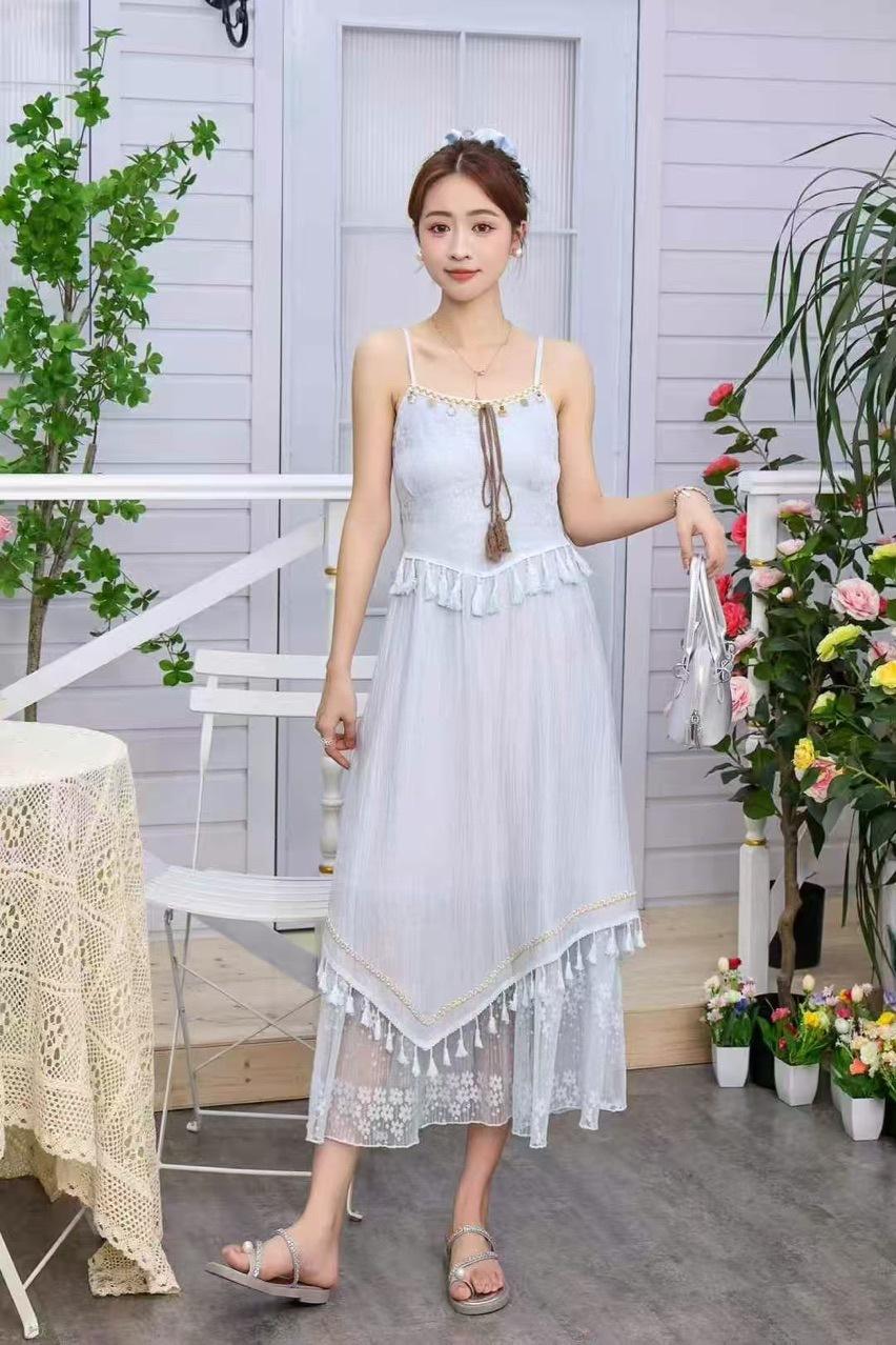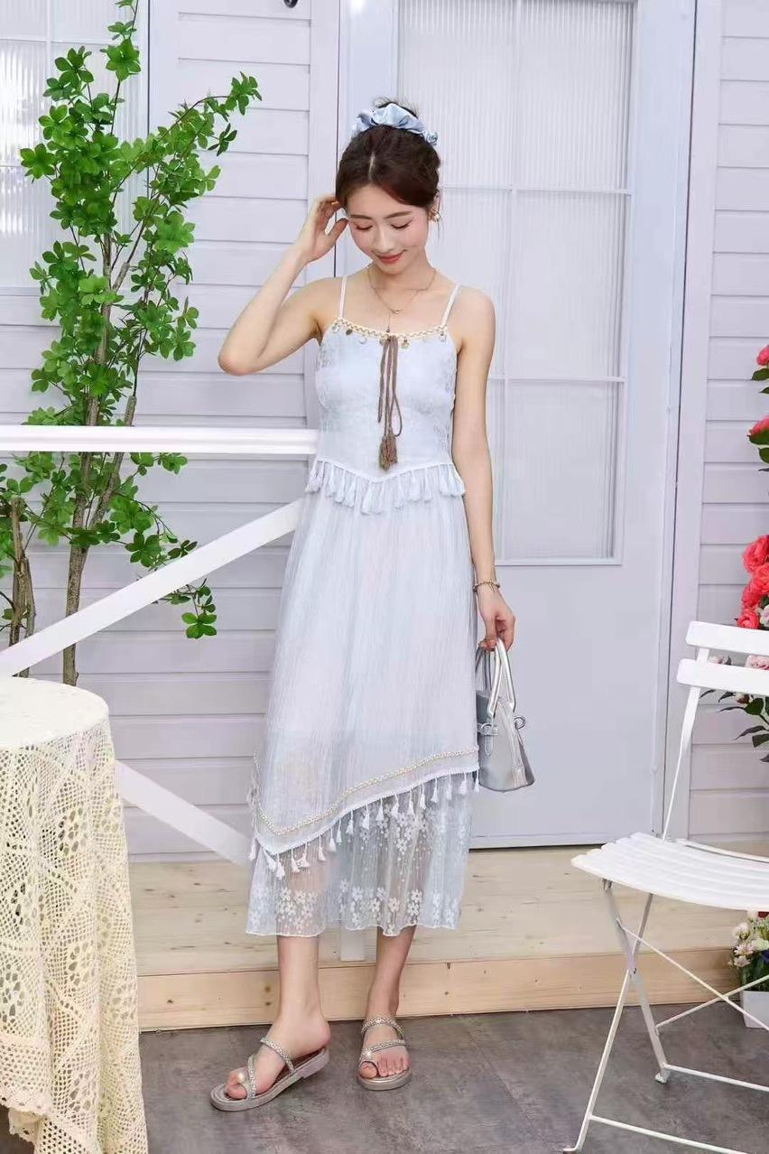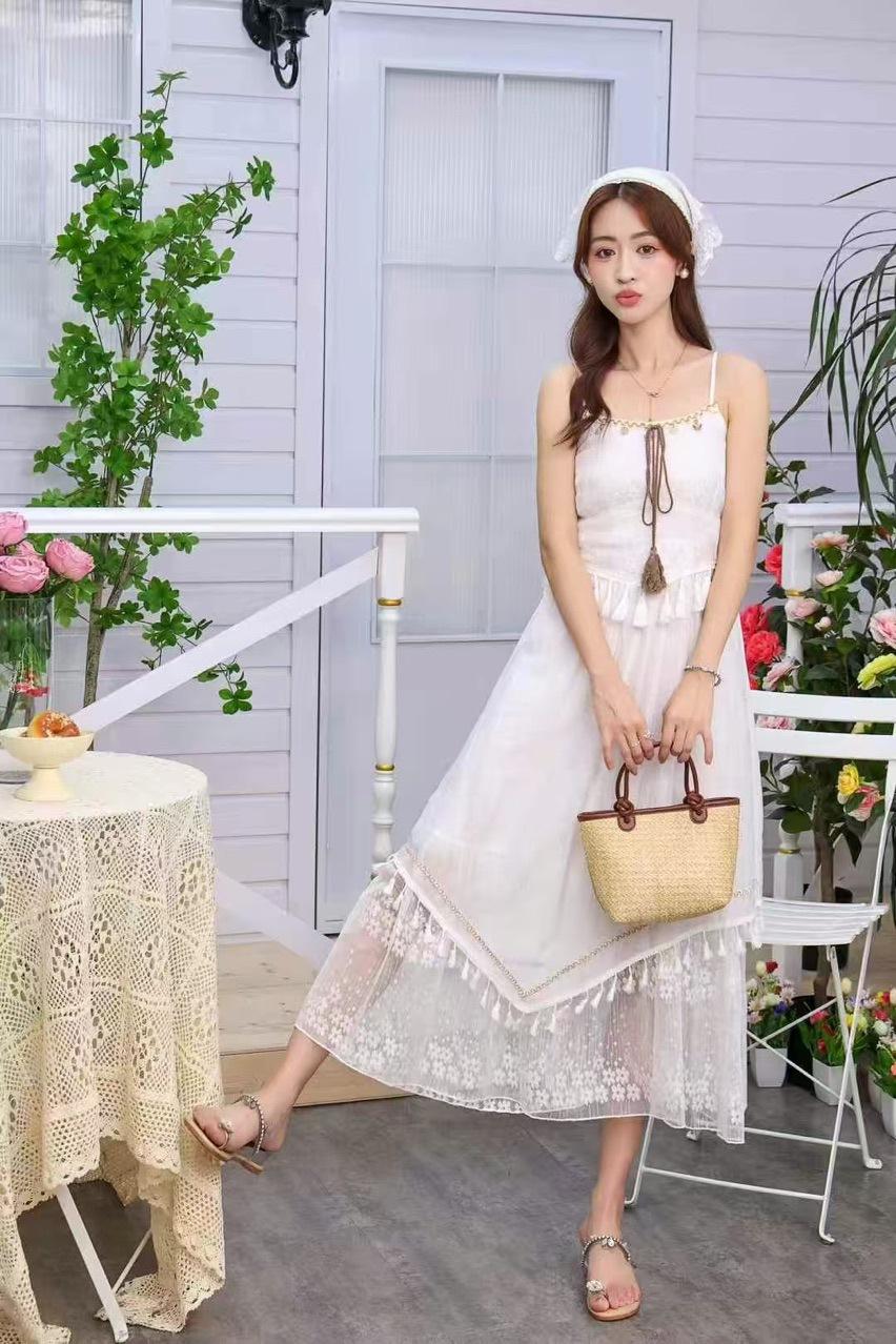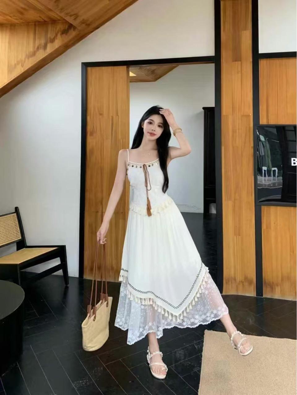 2025 Estilo Étnico Exquisita Falda de Encaje Concha Borla de Cinta Falda Slip vestido