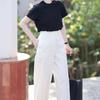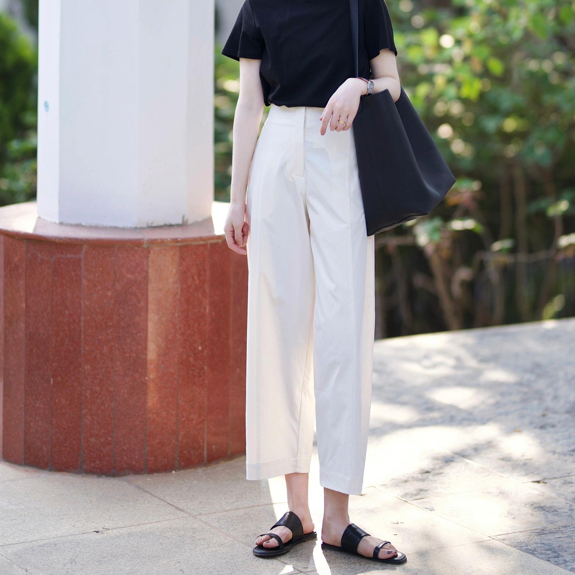 Pantalones harem blancos de nueve puntos para mujer, diseño de verano delgado, nicho recto suelto, pantalones slim de pierna ancha