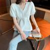 Camisa de Gasa para Mujer Verano Nuevo Estilo Hermosa Camisa Moderna Cubre Vientre Top de Manga Corta