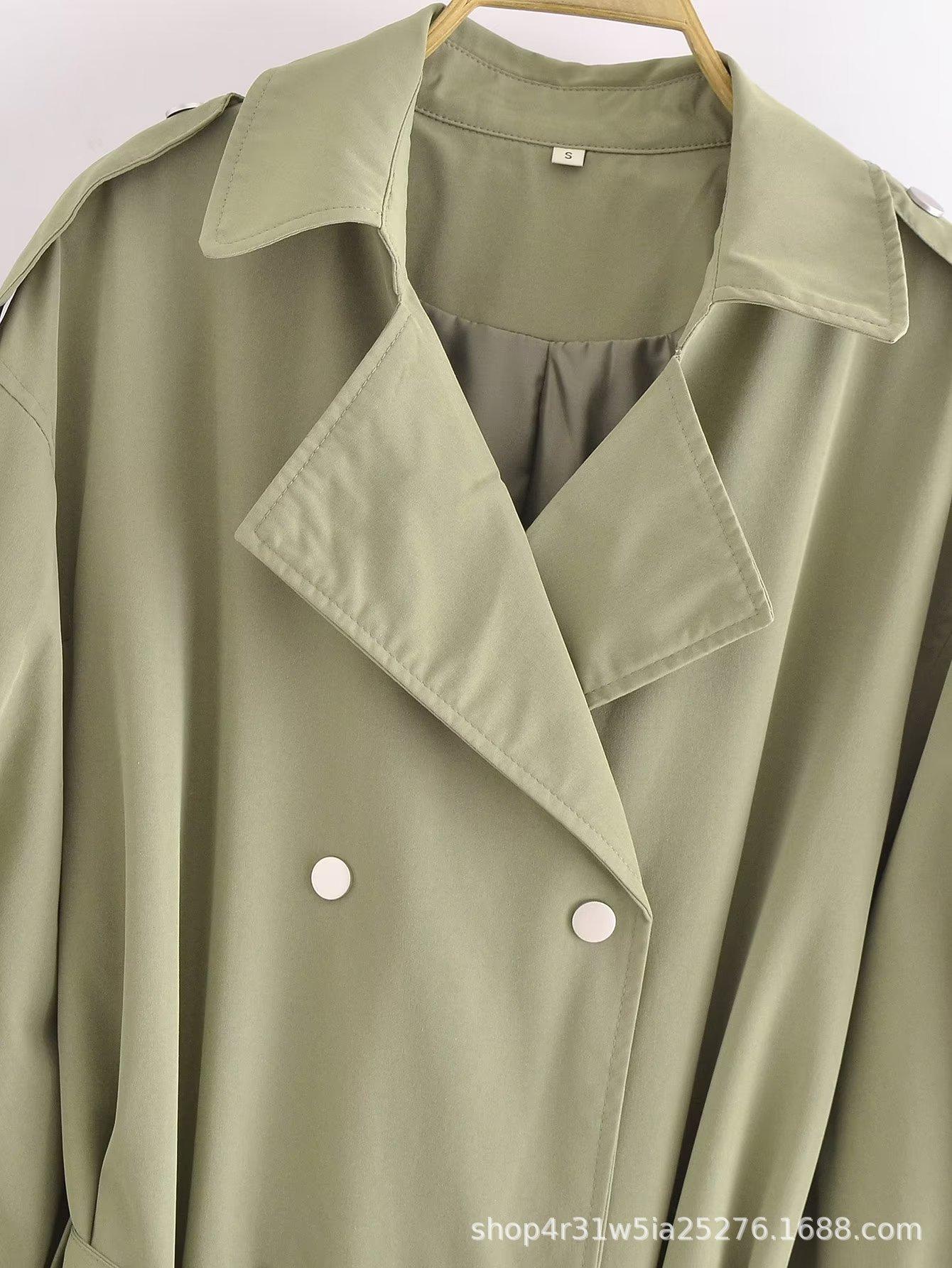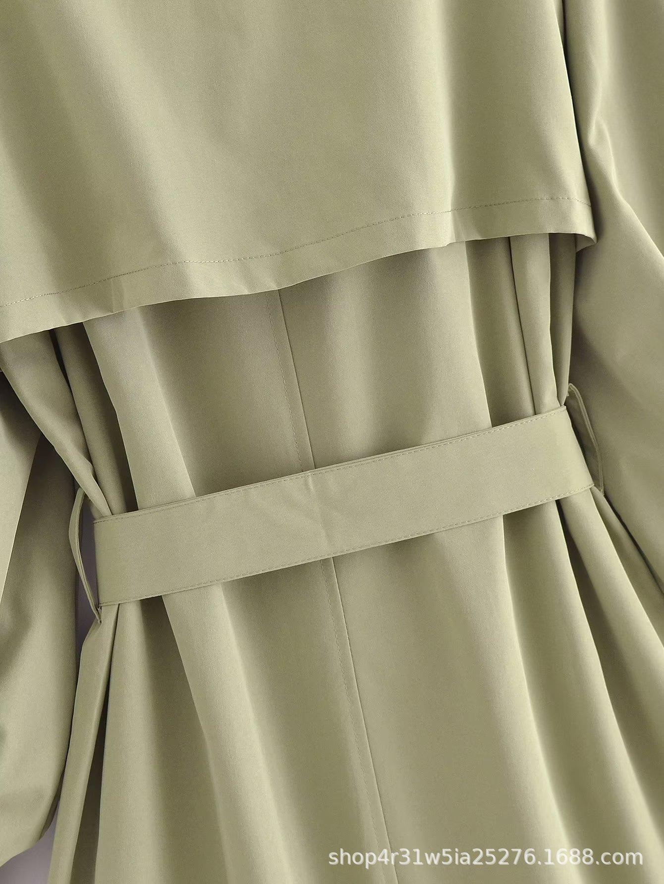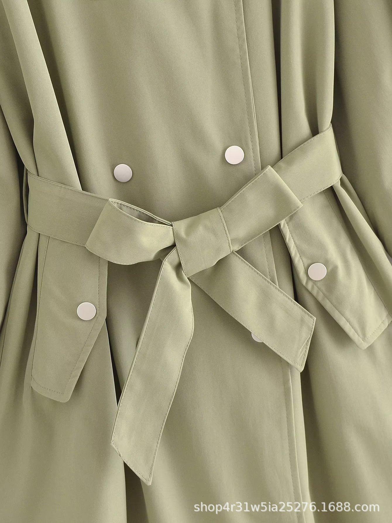 Venta al por mayor transfronteriza europea y americana 2023 otoño nuevo sentido del diseño nicho doble botonadura cintura abrigo trench midi
