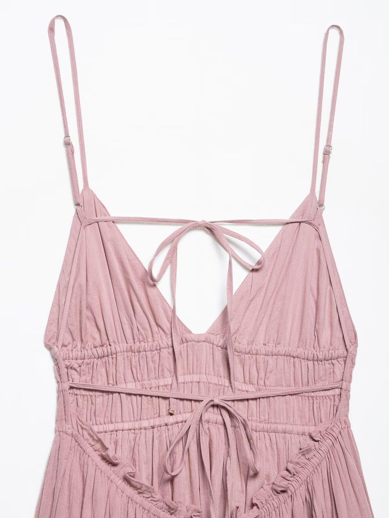 2025 Verano Nuevo Ropa de Mujer Transfronteriza Europea y Americana Elegante Moda Tul Midi Vestido de Tirantes W085 265615