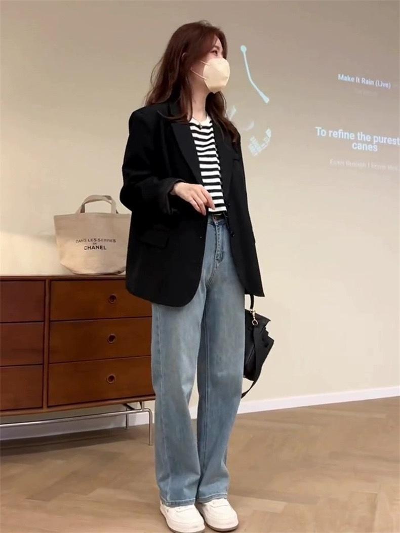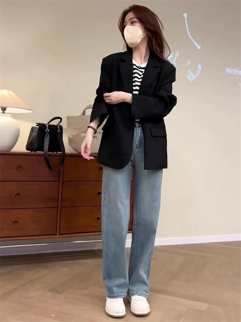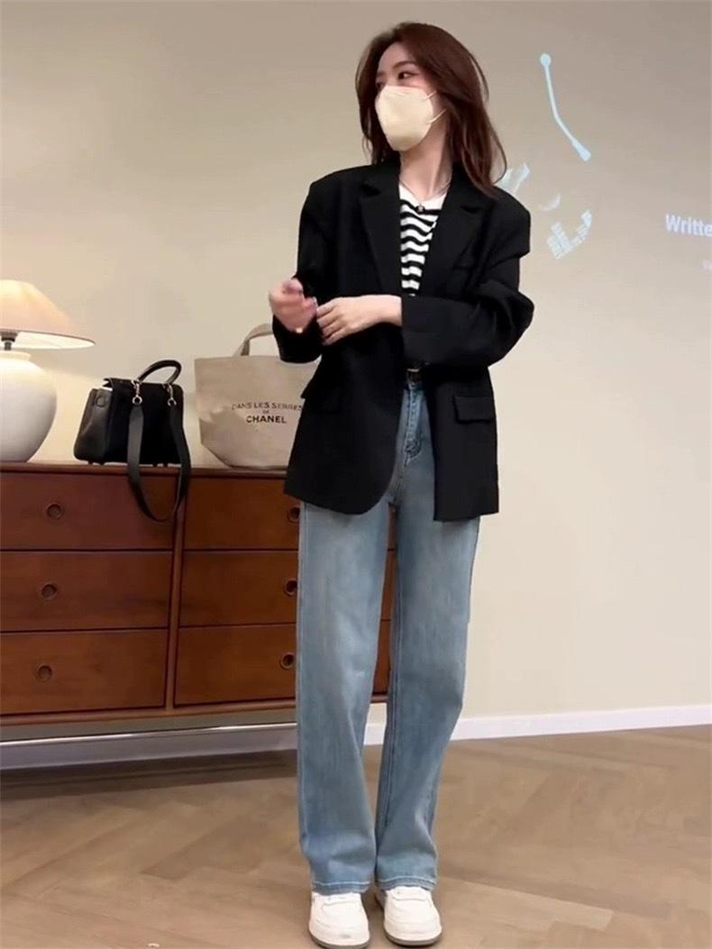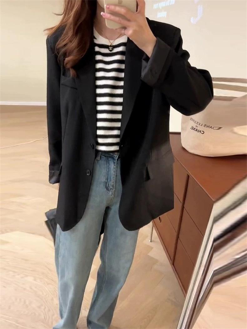 2024 Primavera y Otoño Nuevo Elegante Casual Sentido del Diseño Nicho Negro Chaqueta de Traje Pequeño Traje Pequeño para Mujer