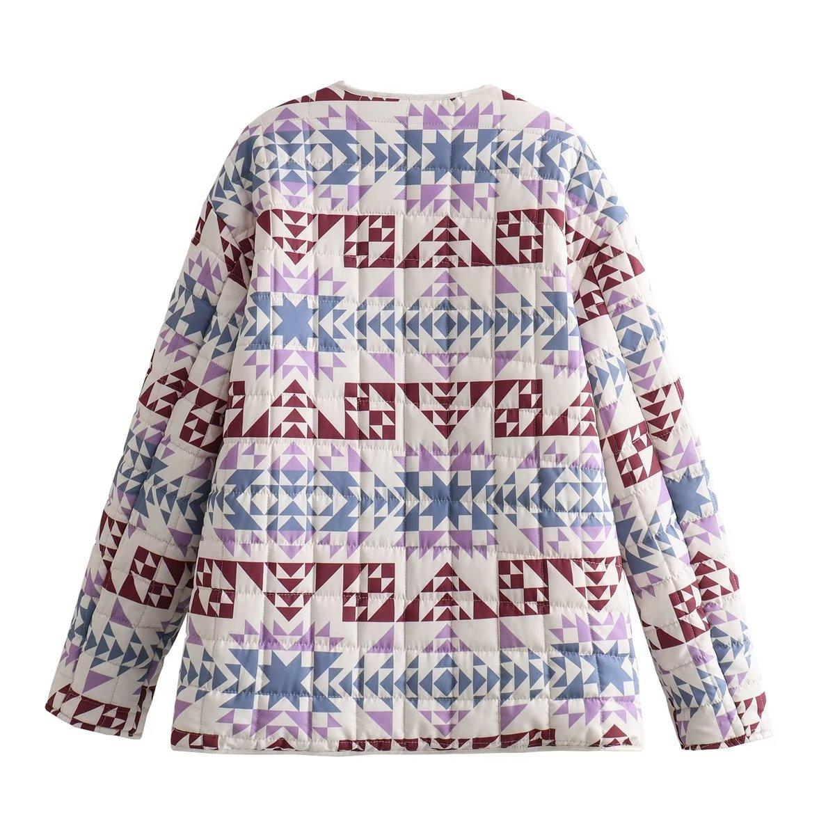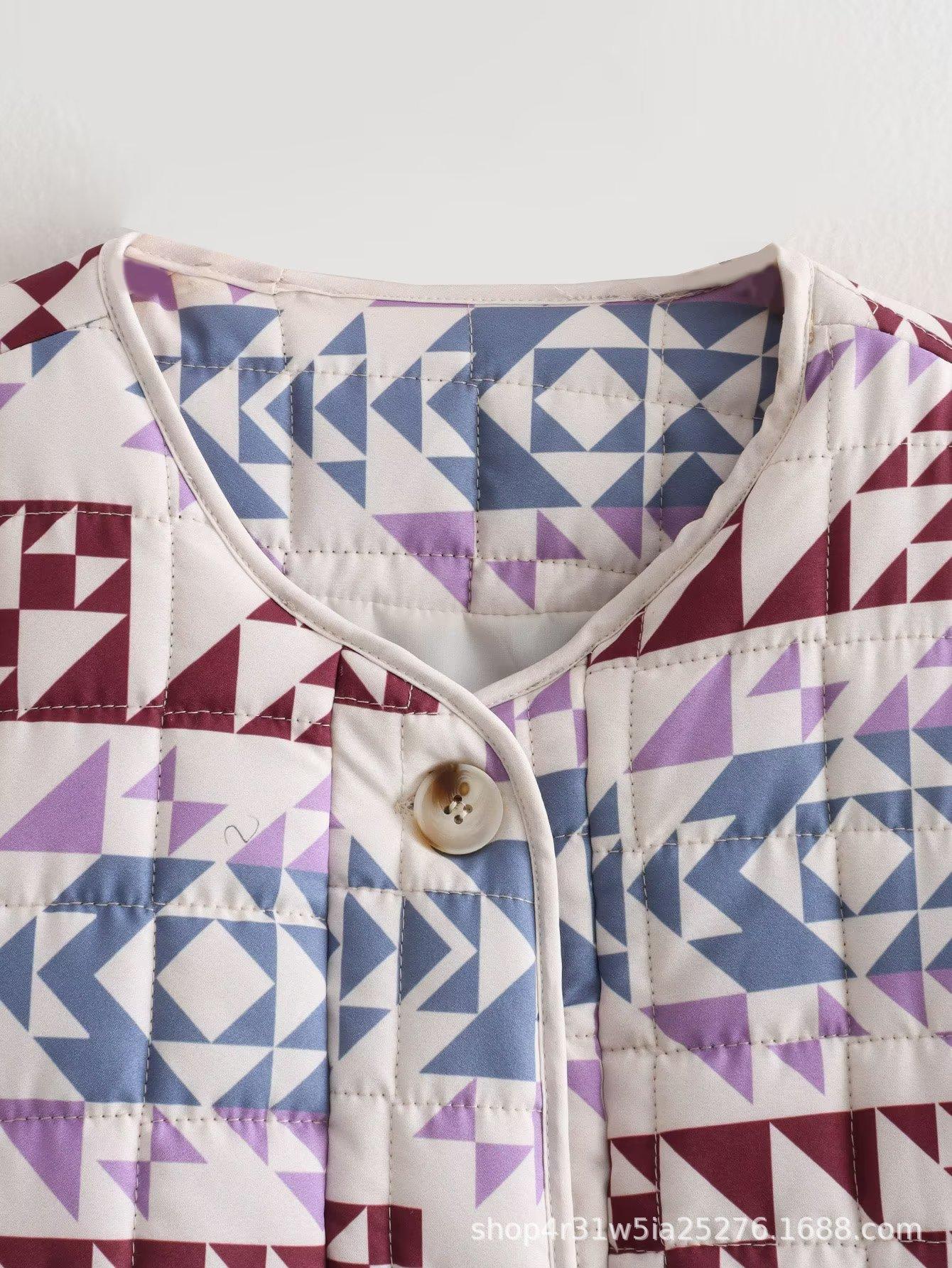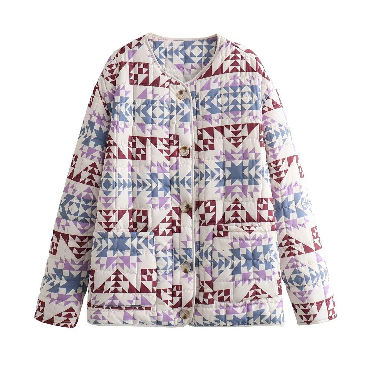 Venta al por mayor transfronteriza Otoño 2023 nueva ropa de mujer retro suelta de manga larga casual que combina con todo chamarra acolchada de algodón estampada