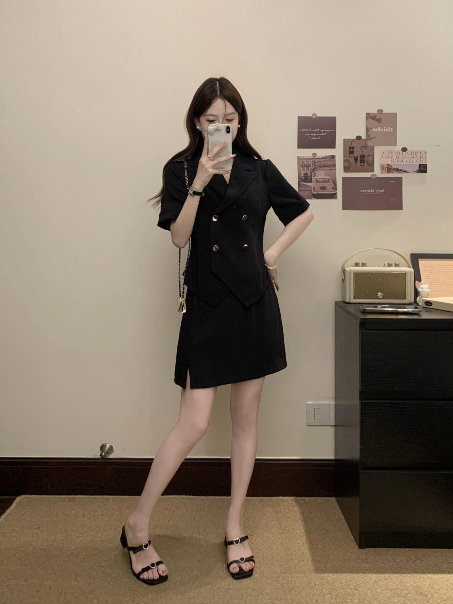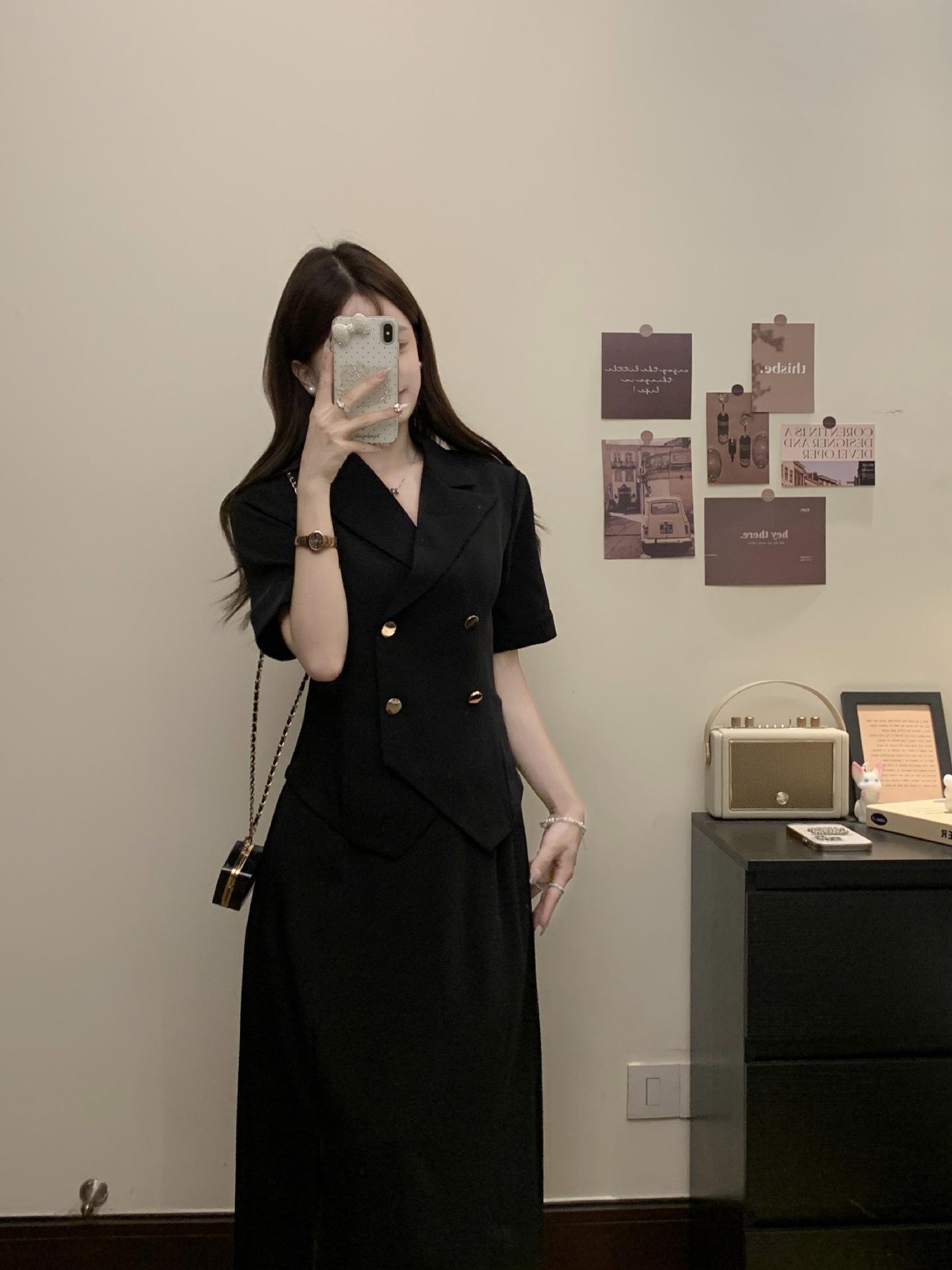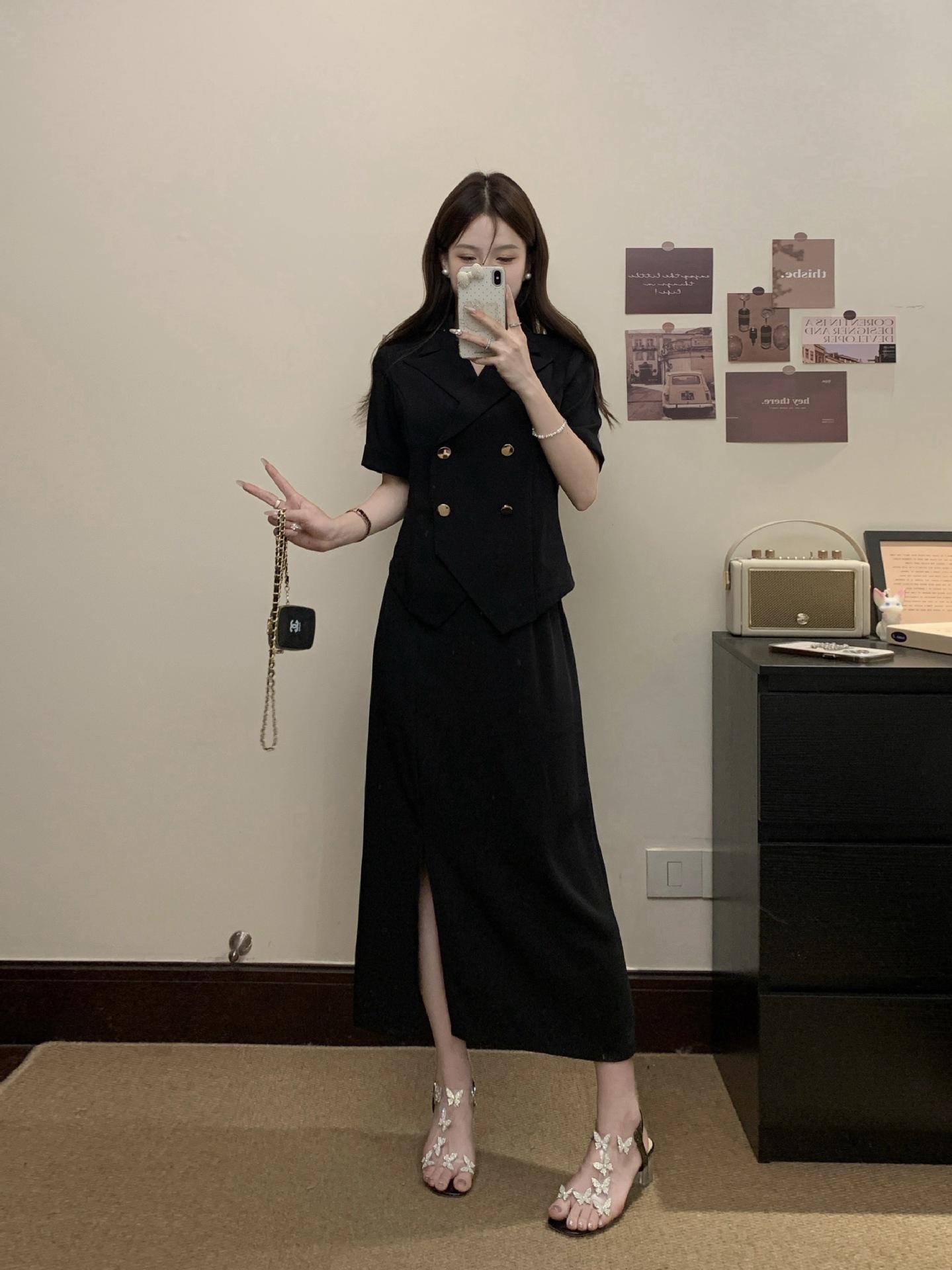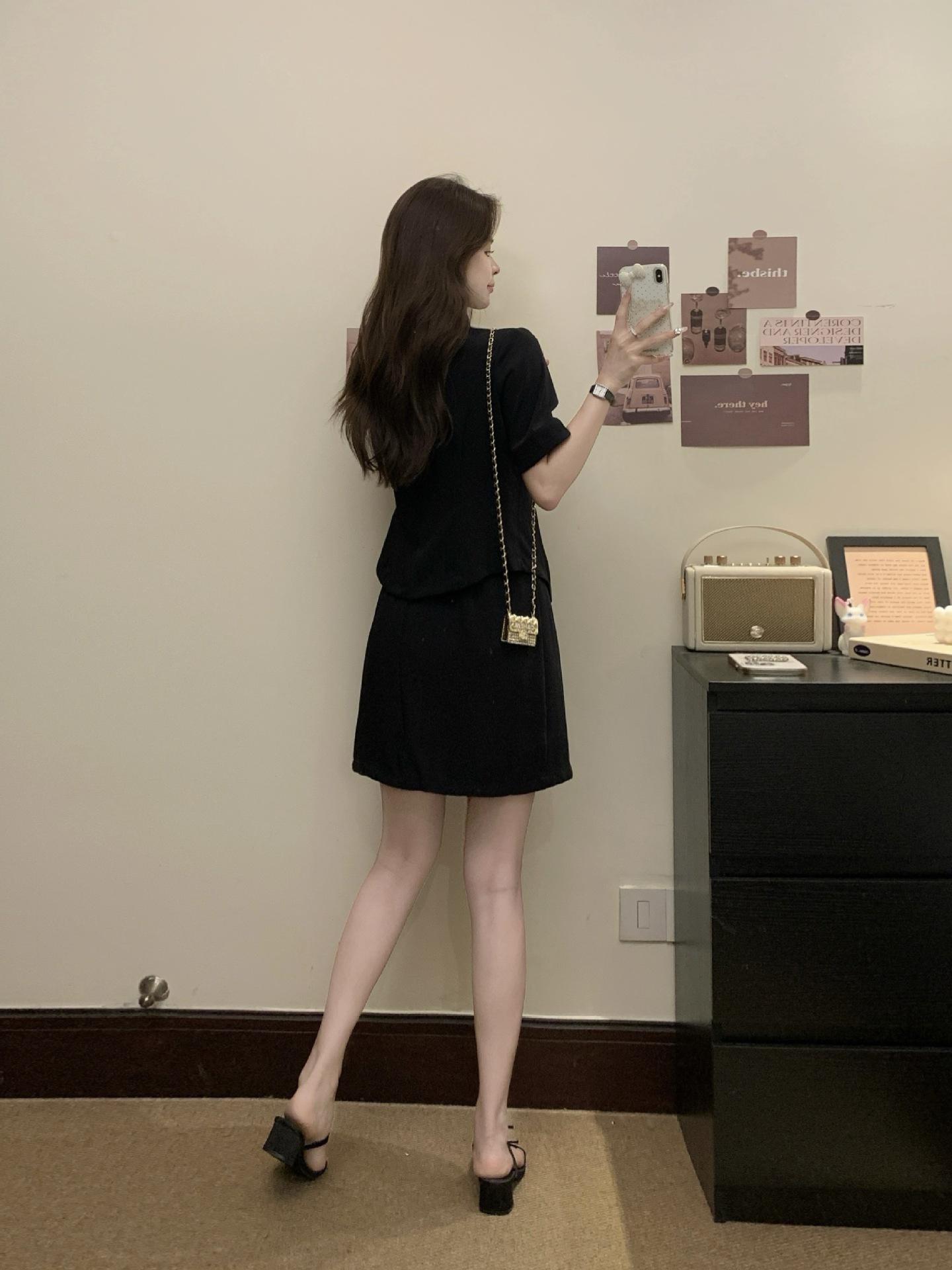 Black-long skirt two-piece set, Black-short skirt two-piece set