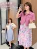 Traje de Viajero Adelgazante de Moda de Talla Grande Traje de Verano para Mujer Top con Cuello + Falda con Abertura Conjunto de Dos Piezas