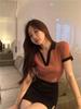 2025 Nuevo Verano Estilo Coreano Diseño Holgado con Cuello Polo Nicho Estilo Dulce y Picante Deseo Puro Sexy Camiseta de Manga Corta para Mujer