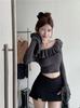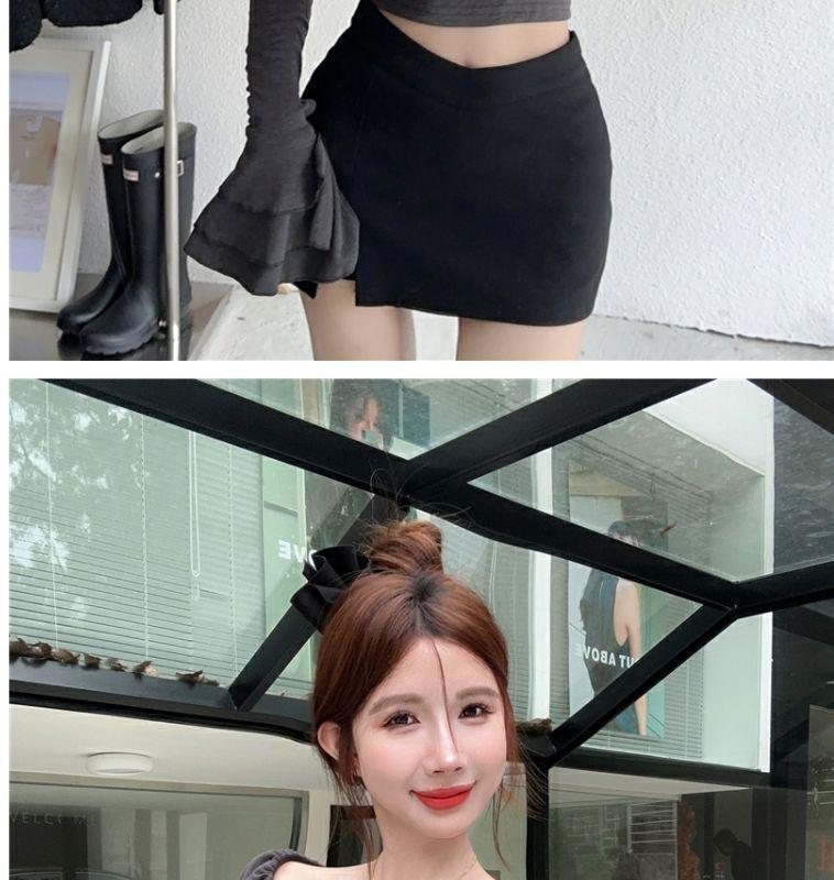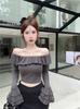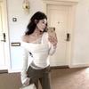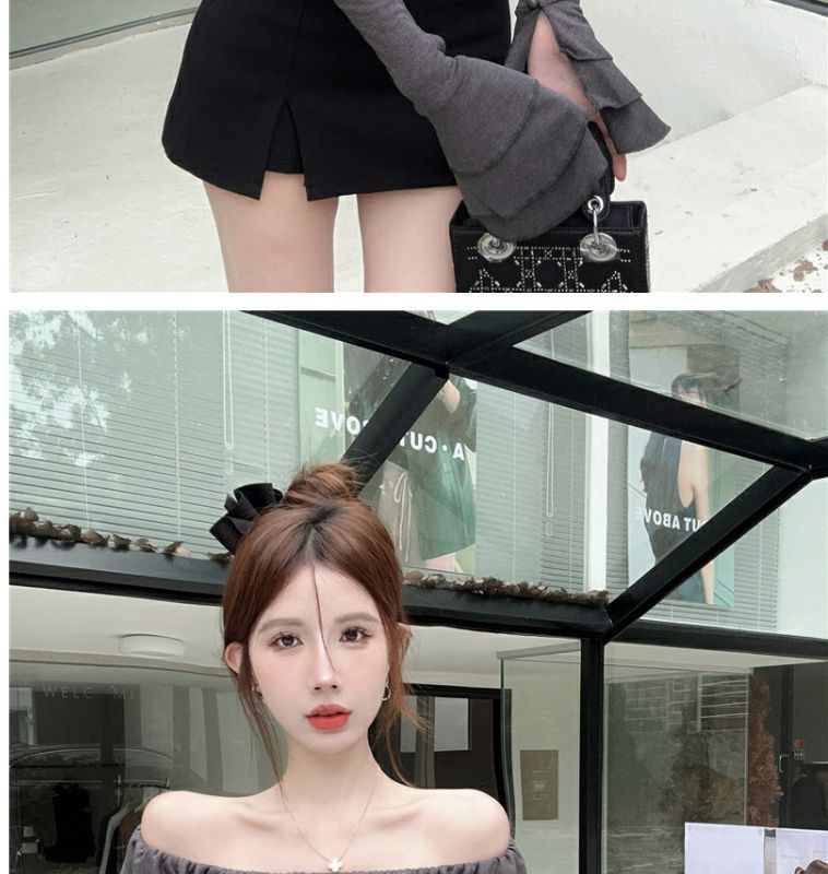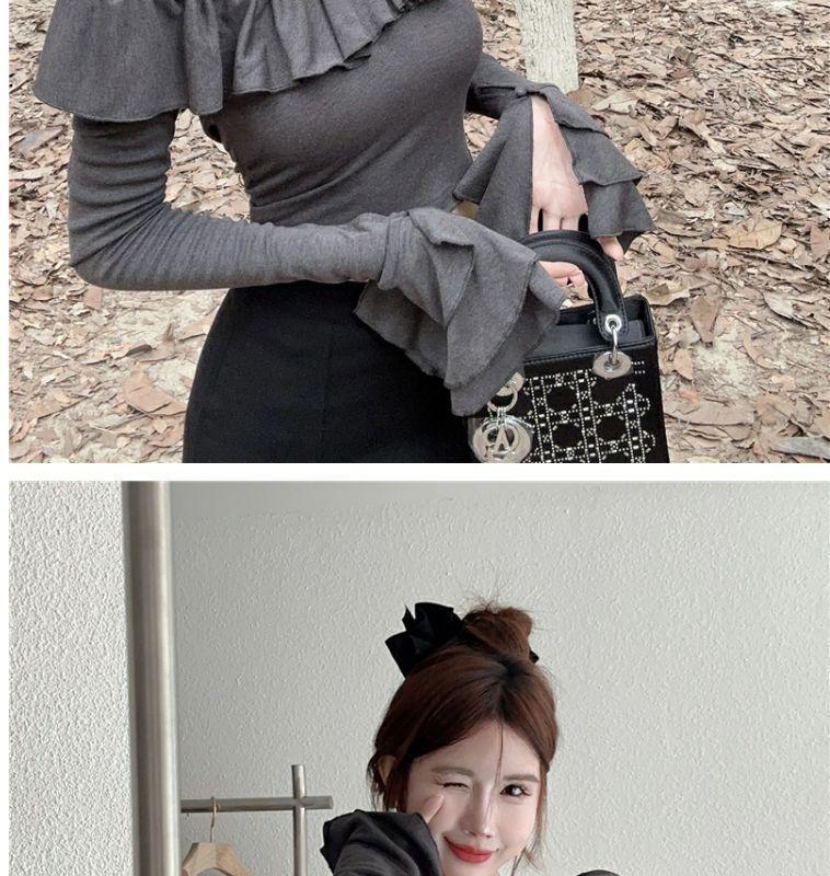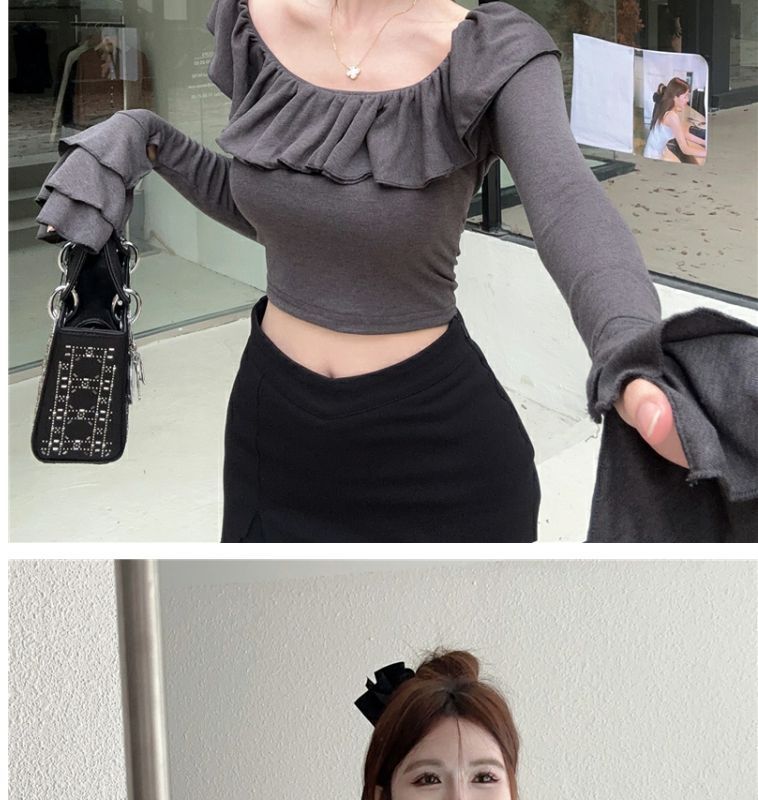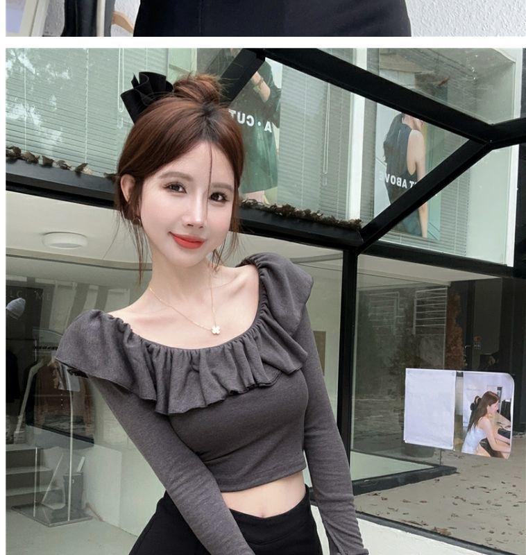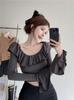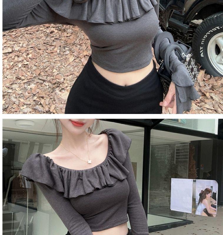 [Venta al por mayor transfronteriza] Top de un hombro con volantes Pure Desire, manga acampanada, sexy, hombros descubiertos, camiseta de manga larga, camisa básica