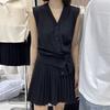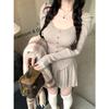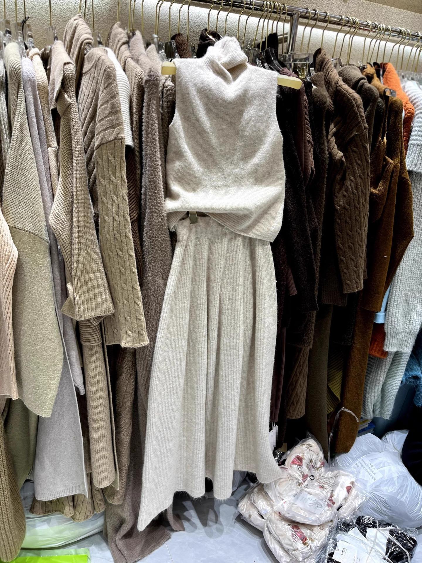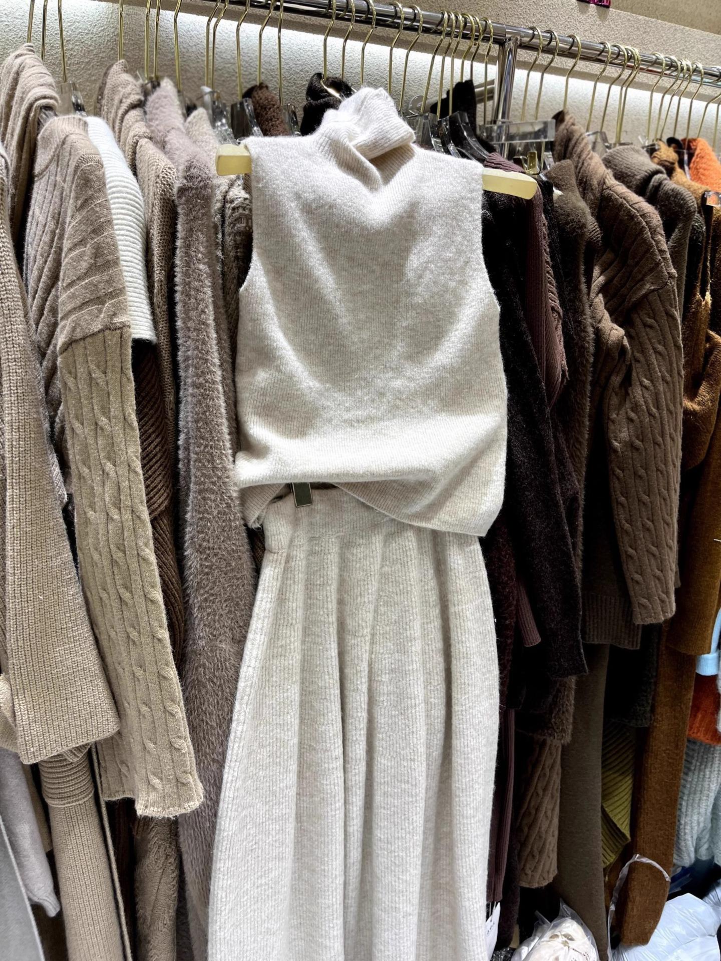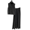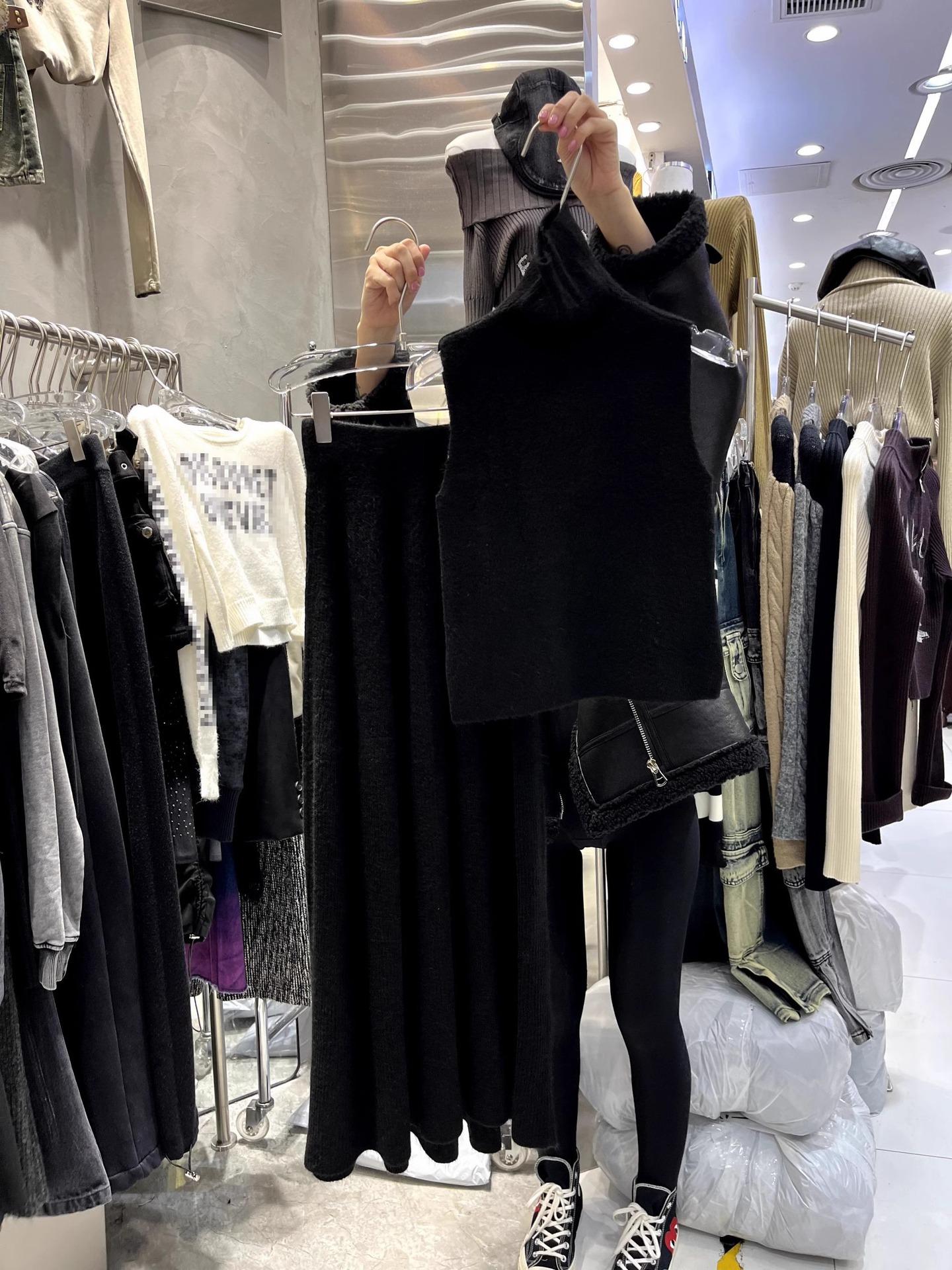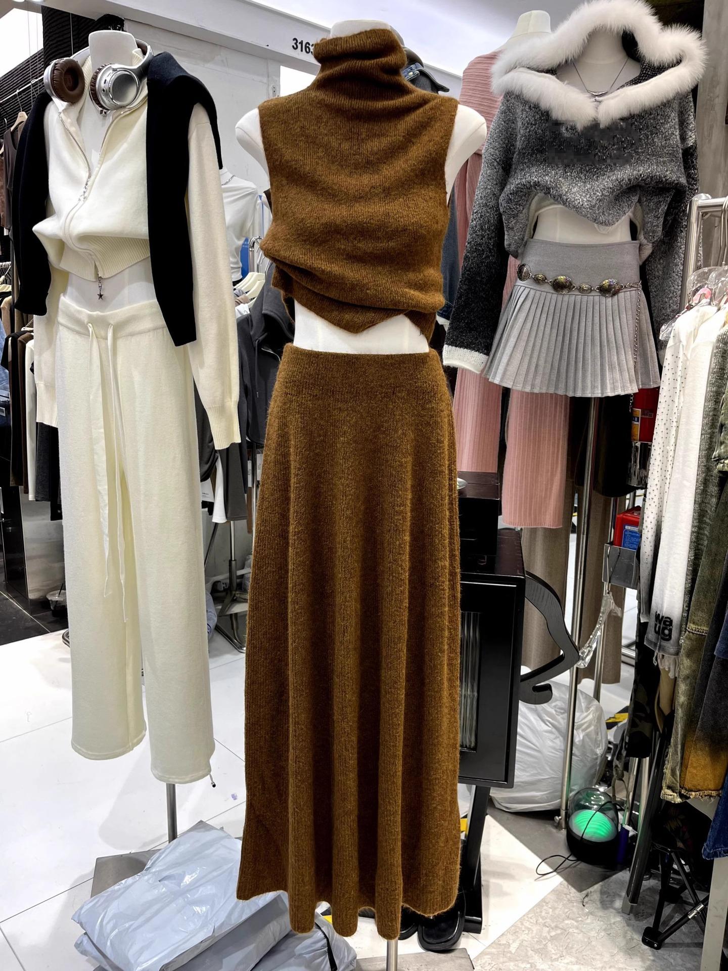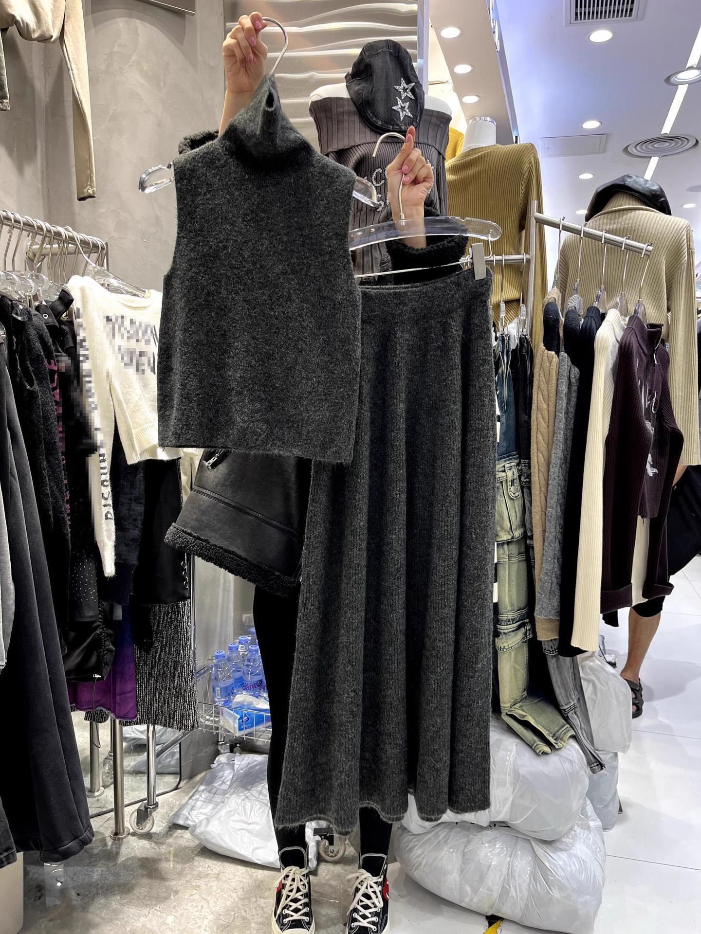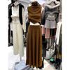 Otoño 2024 Nuevo Estilo Coreano Chaleco de Punto de Cuello Alto para Mujer Falda Plisada de Color Sólido de Cintura Alta Elegante Traje de Dos Piezas