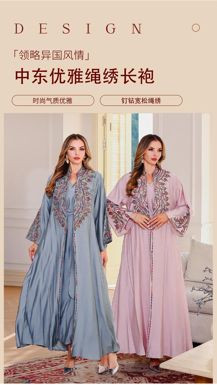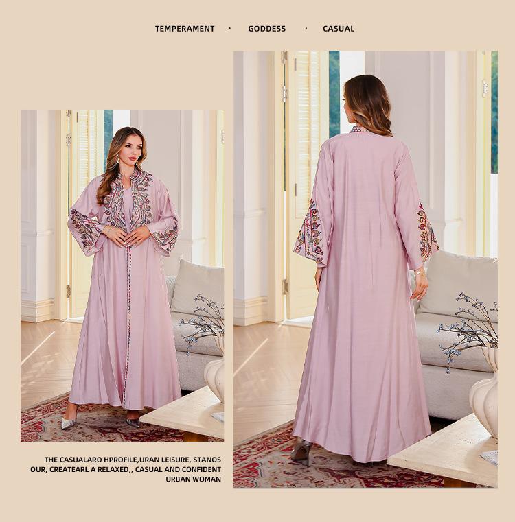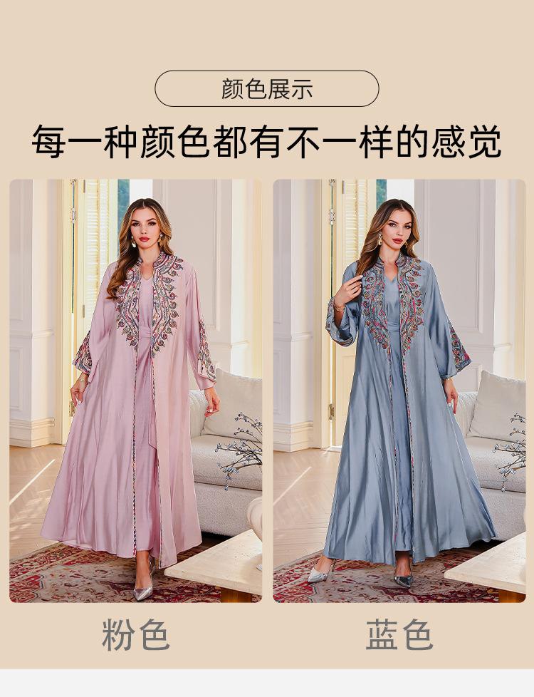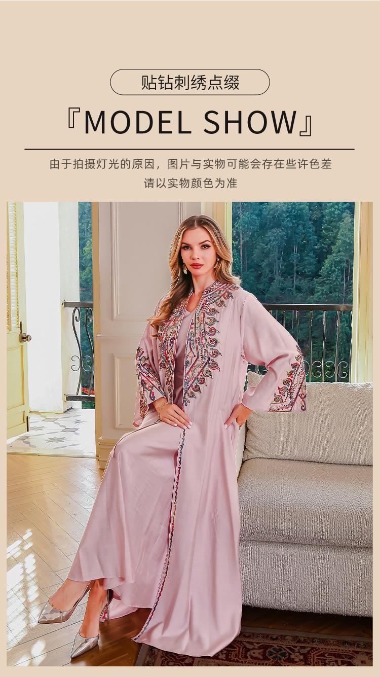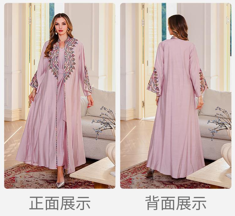 En Stock Nueva Bata Musulmana Bordada Ropa del Medio Oriente Abaya Dubai Vestido Largo Conjunto de Dos Piezas Bata Árabe