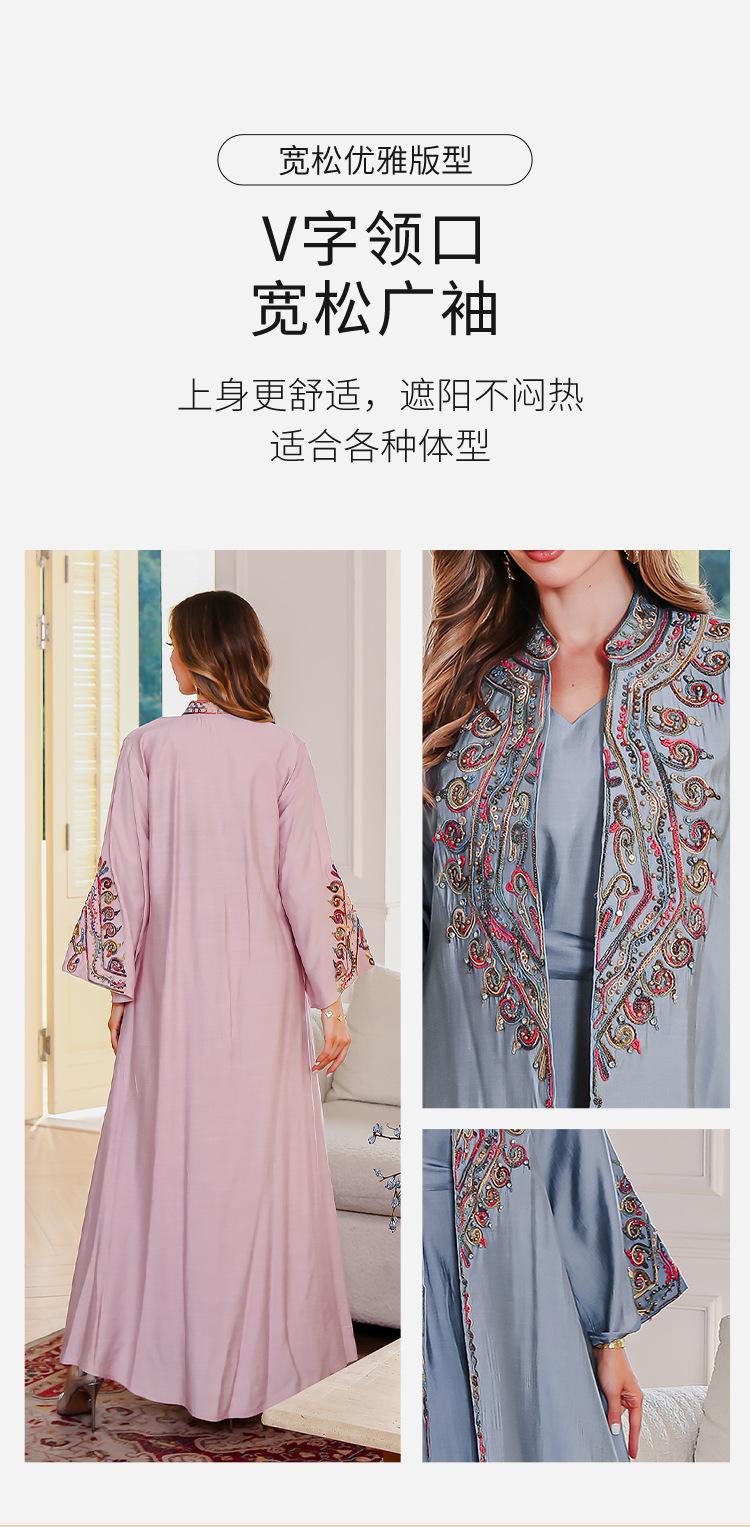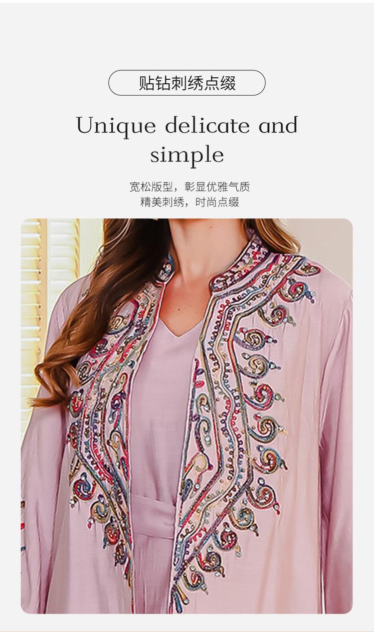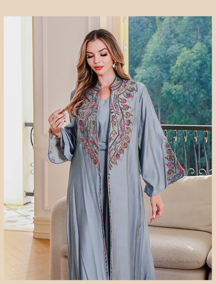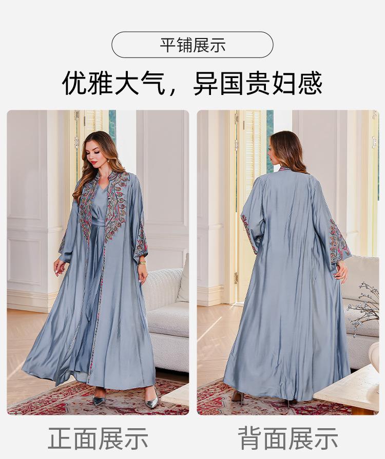 En Stock Nueva Bata Musulmana Bordada Ropa del Medio Oriente Abaya Dubai Vestido Largo Conjunto de Dos Piezas Bata Árabe