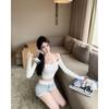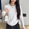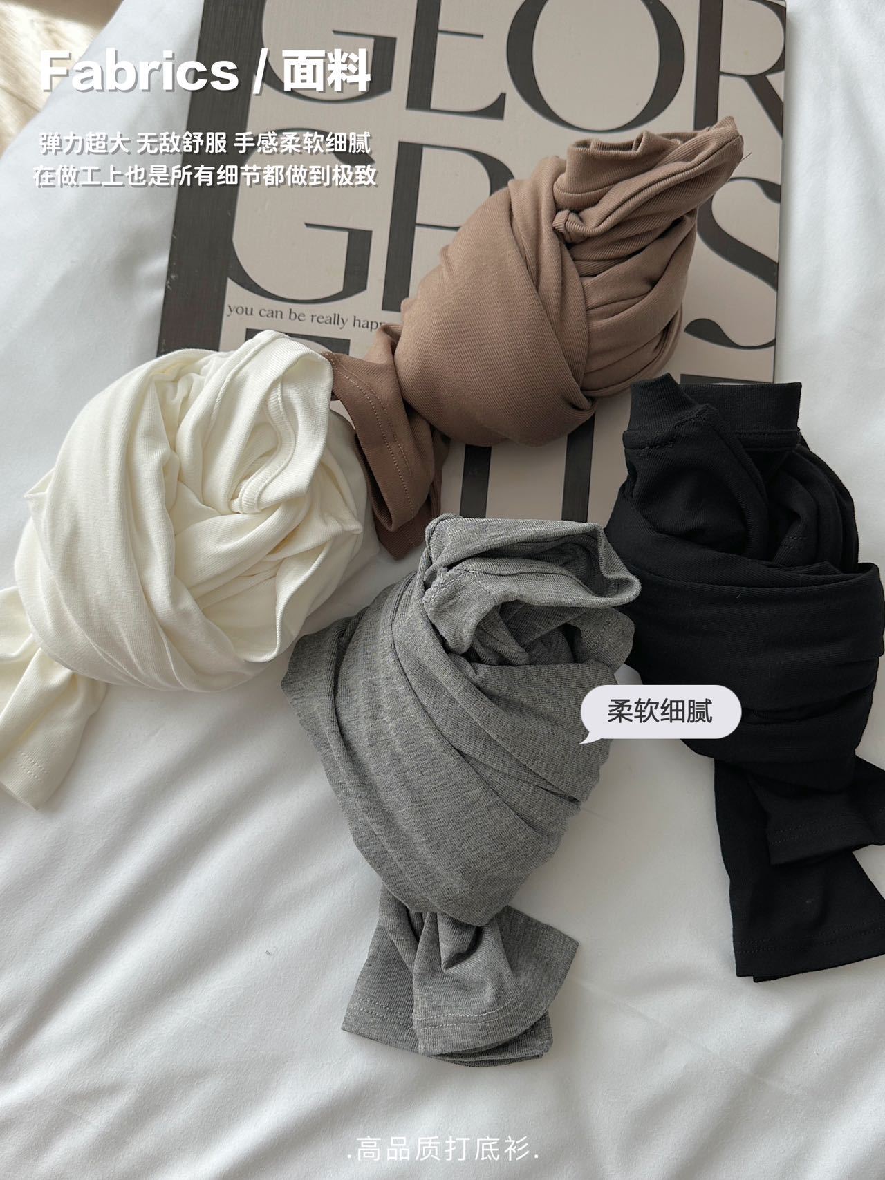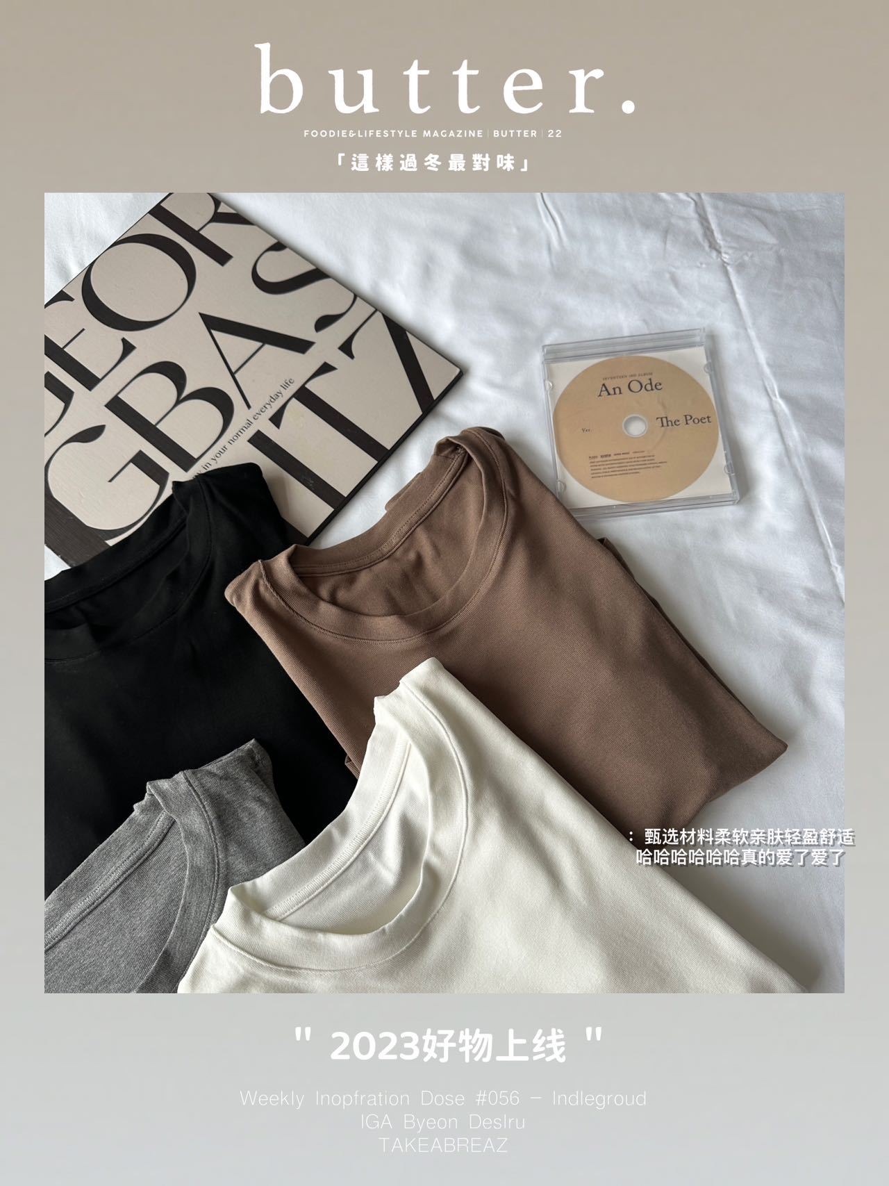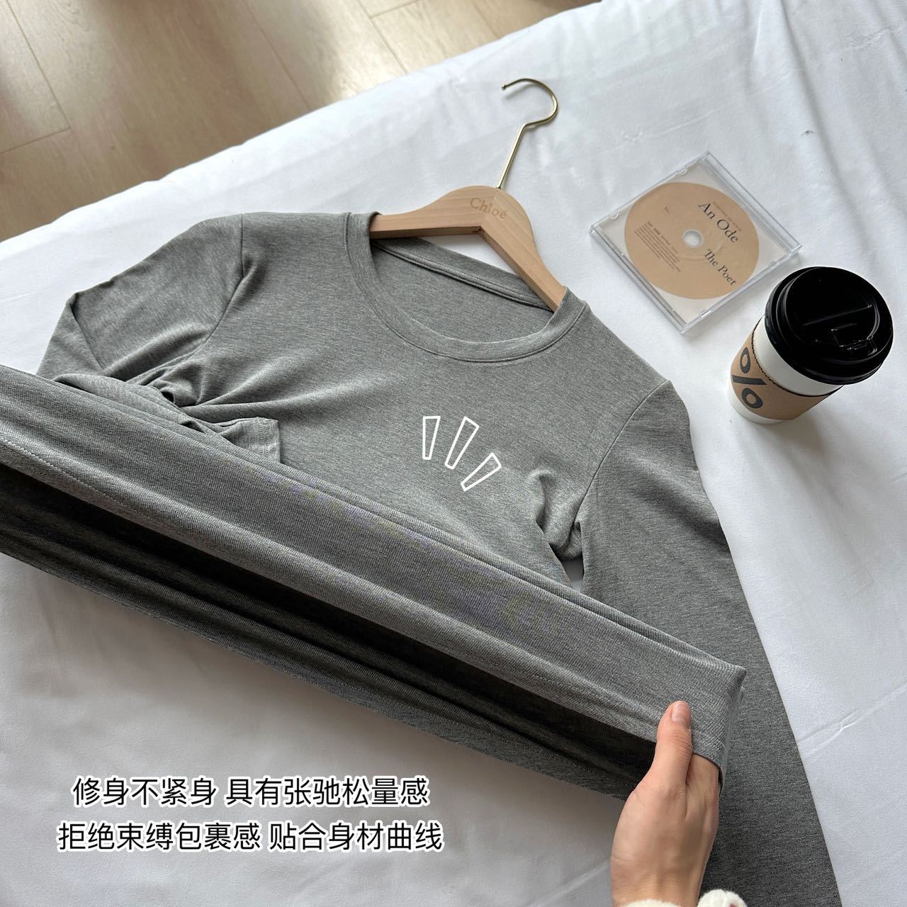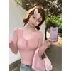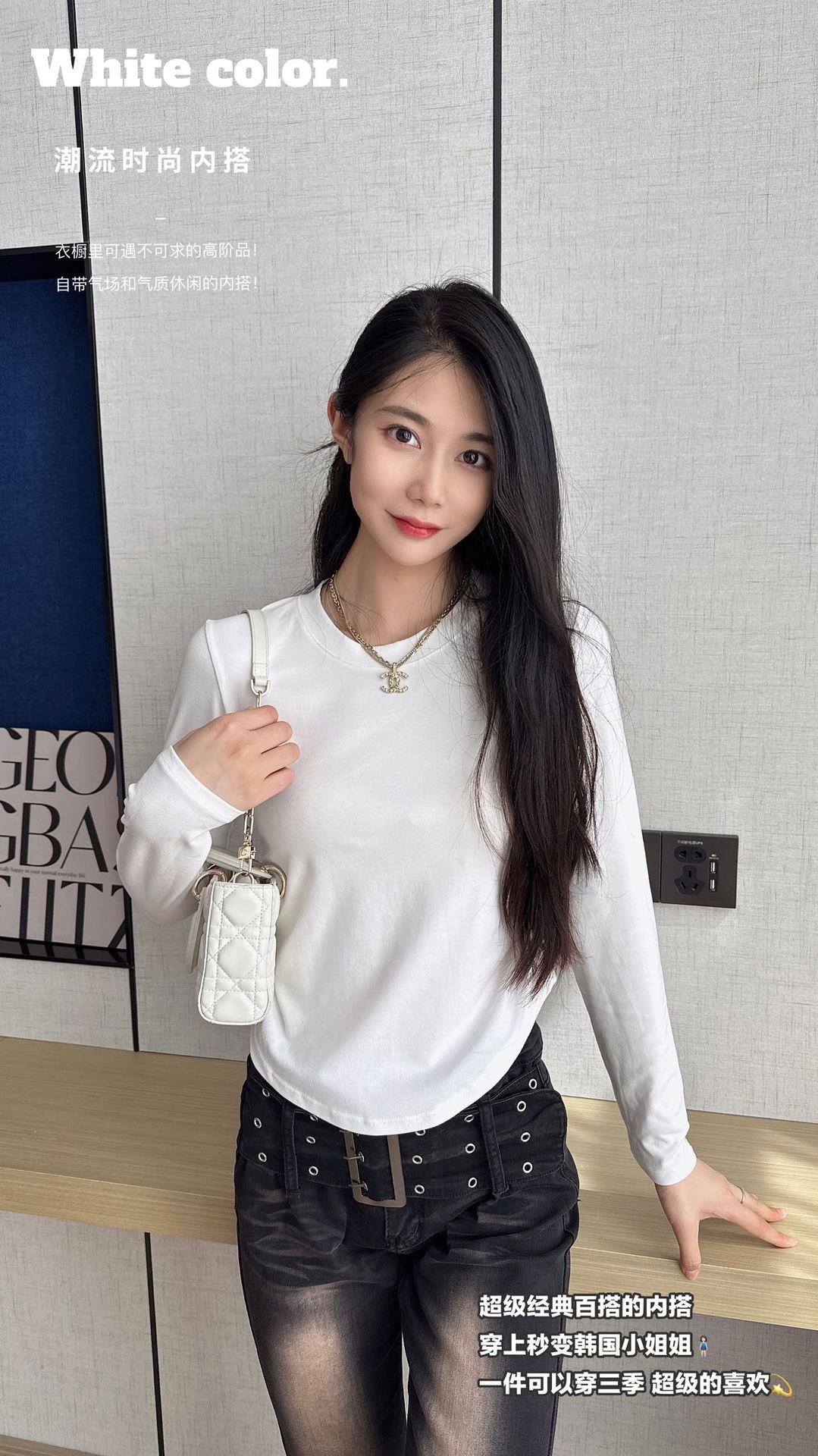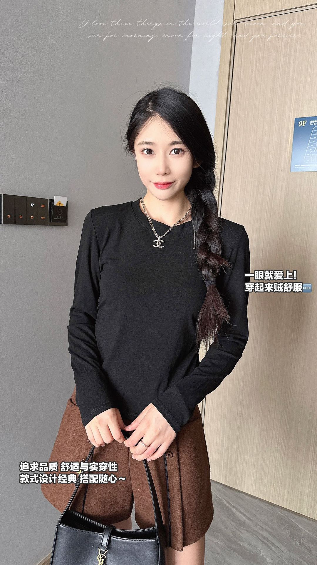 Cuello Redondo Cintura Elástica Color Sólido Hombro Regular Top Corto Ajustado para Mujer Camiseta Base Otoño Nuevo Estilo