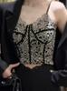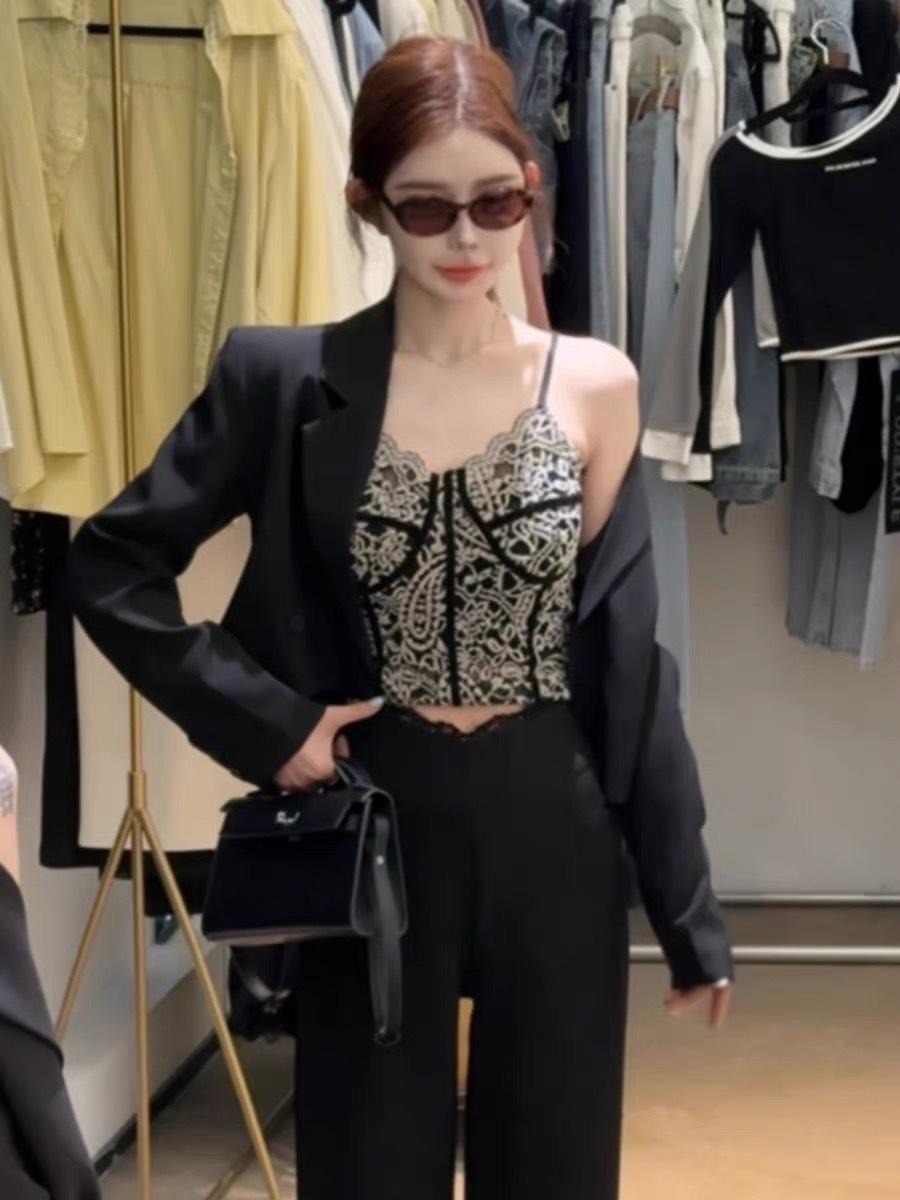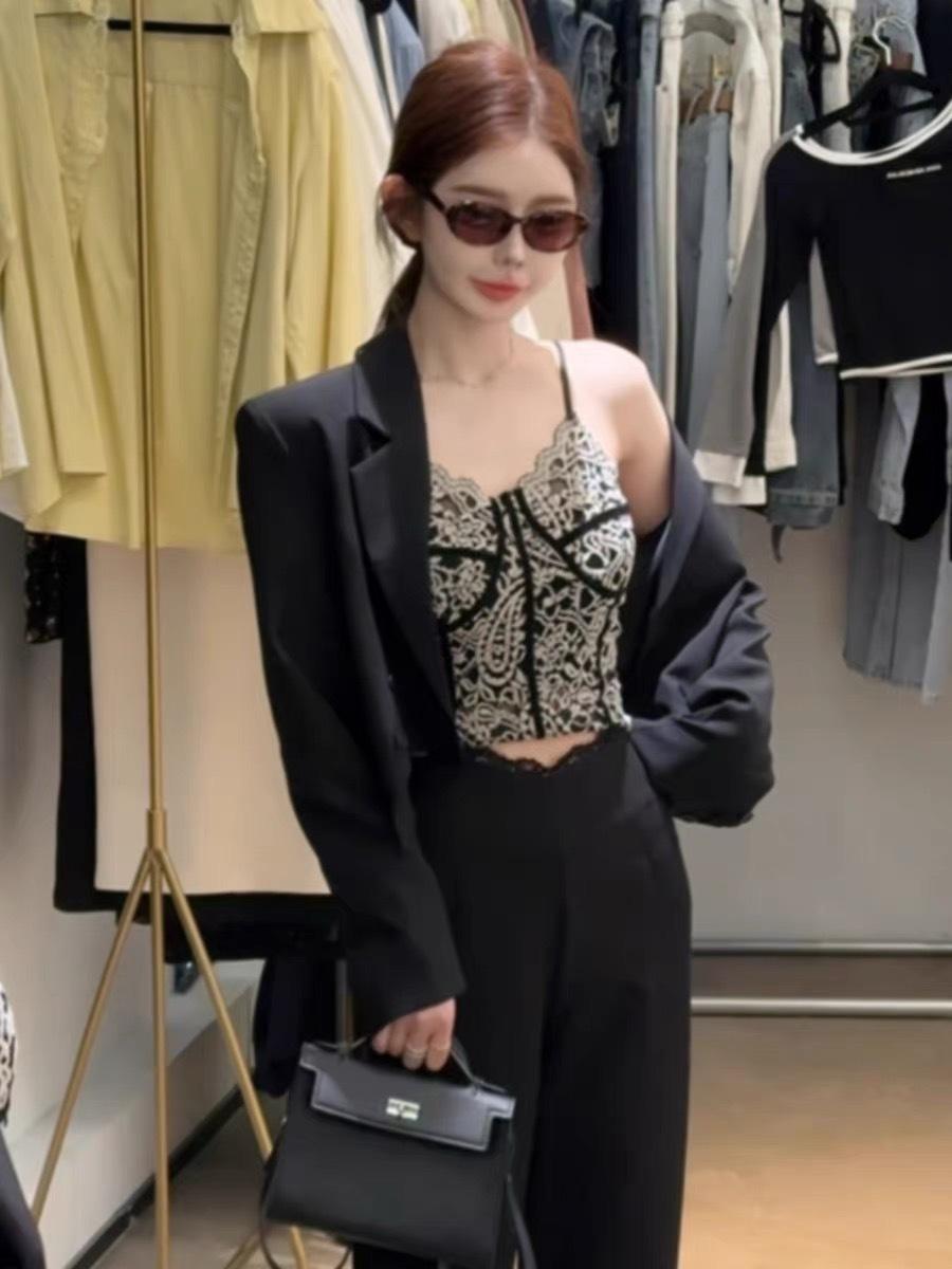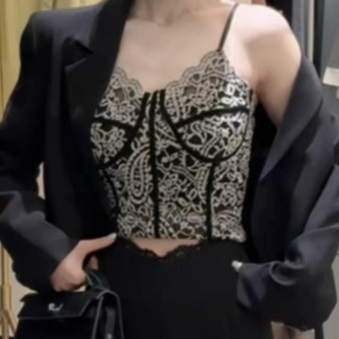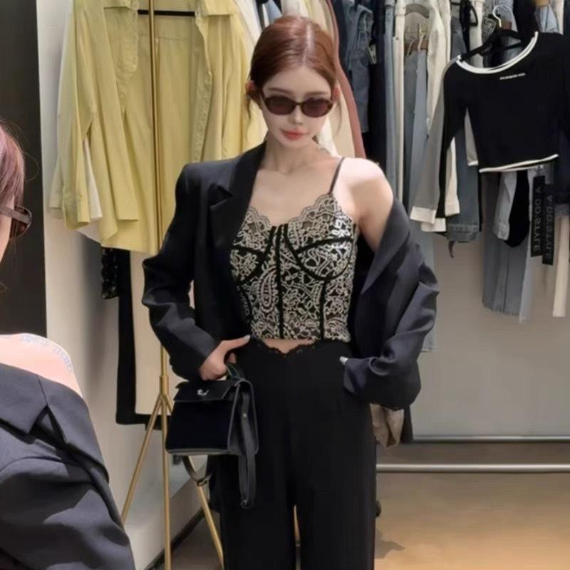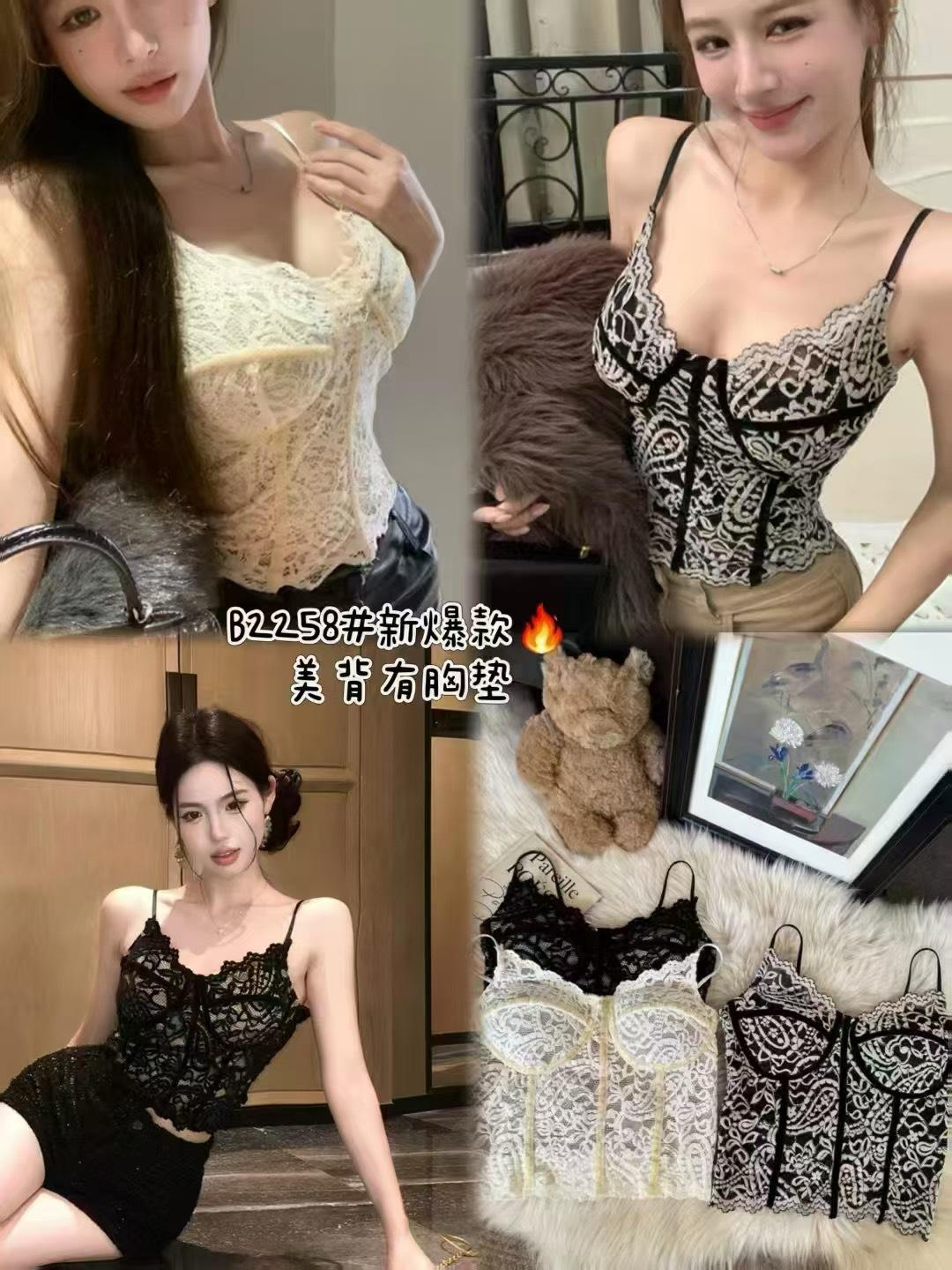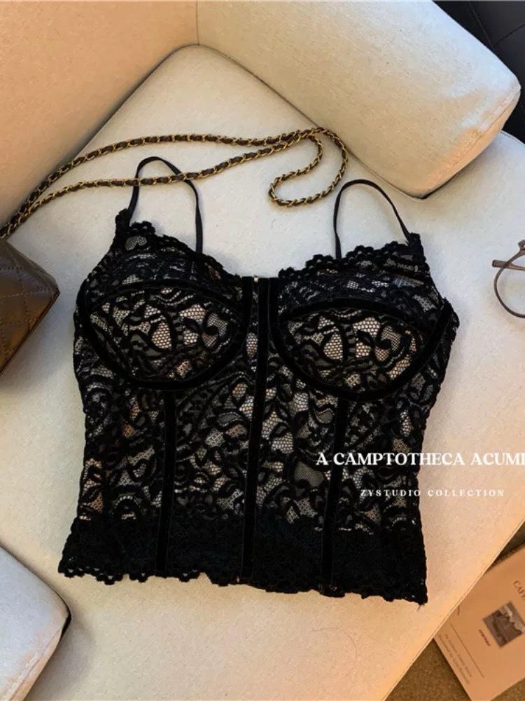Camisola de Encaje Bordado Francés Hermosa Espalda Íntimos Básicos para Mujer con Almohadillas para el Busto Look Adelgazante Top Exterior