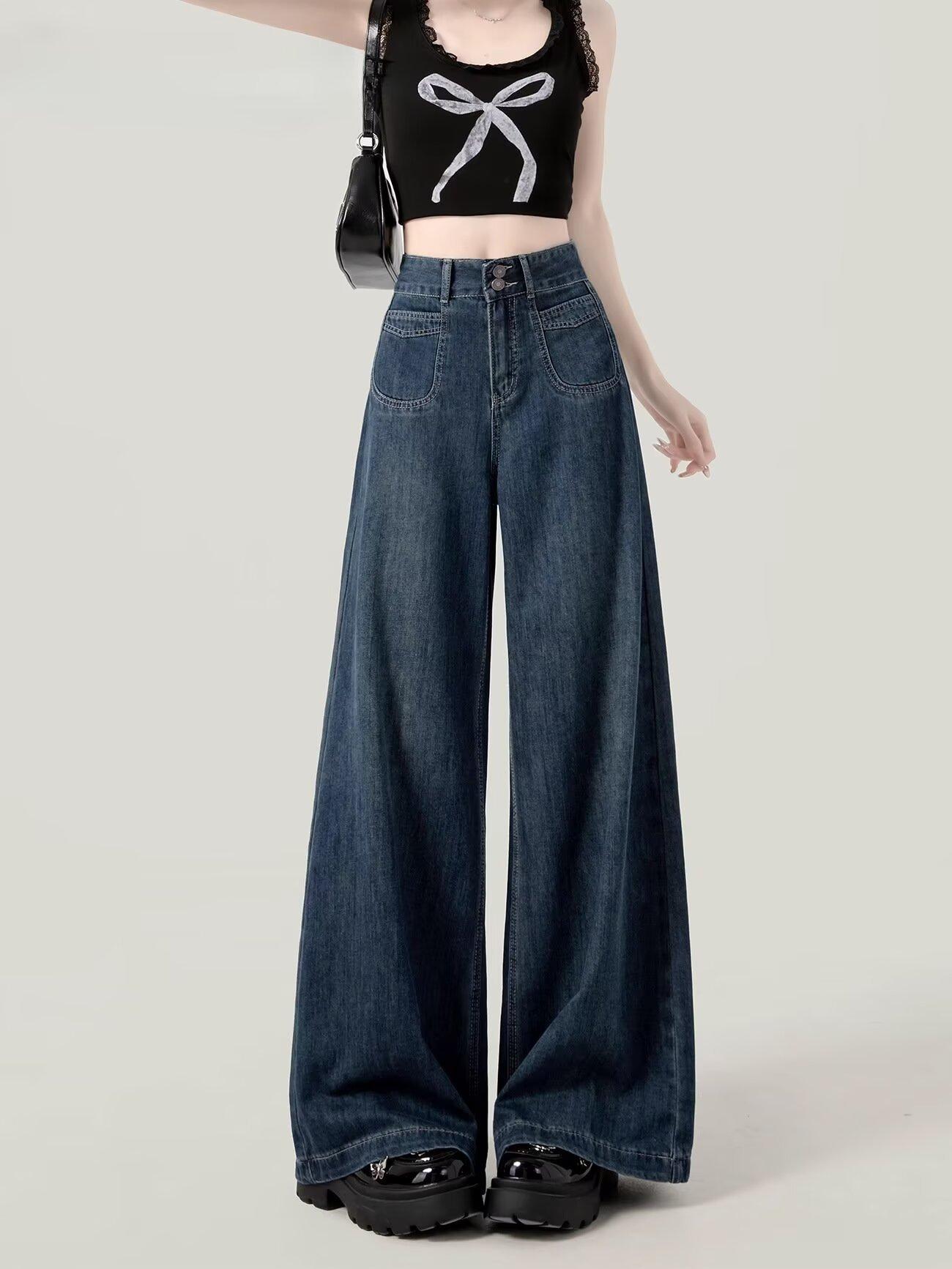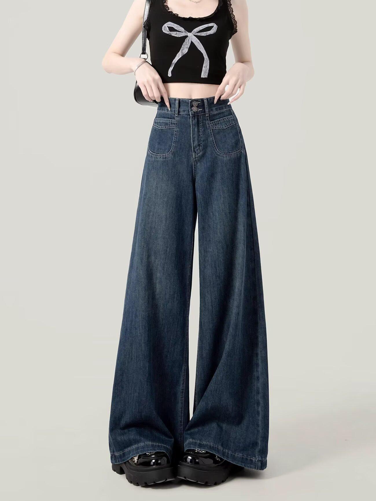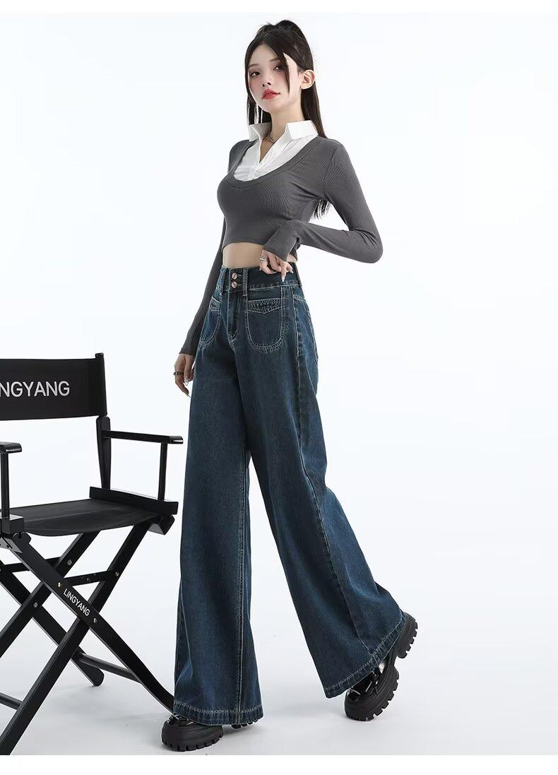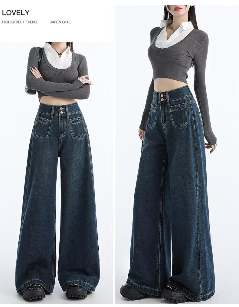 Jeans de Cintura Alta y Pierna Ancha para Mujer 2024 Nuevo Casual Lazy Dape Sueltos Adelgazantes Rectos Primavera y Otoño a la Moda