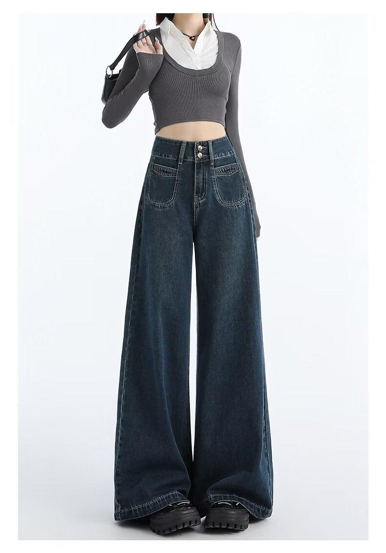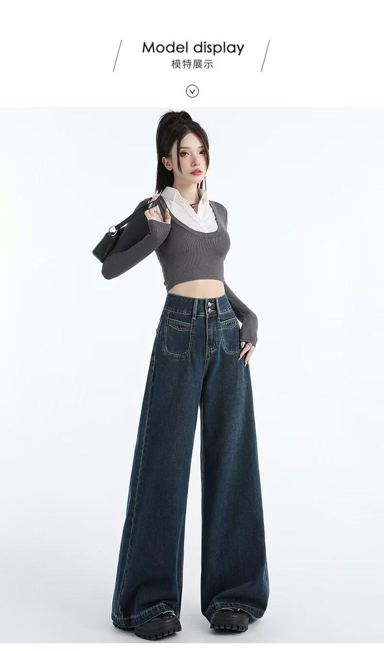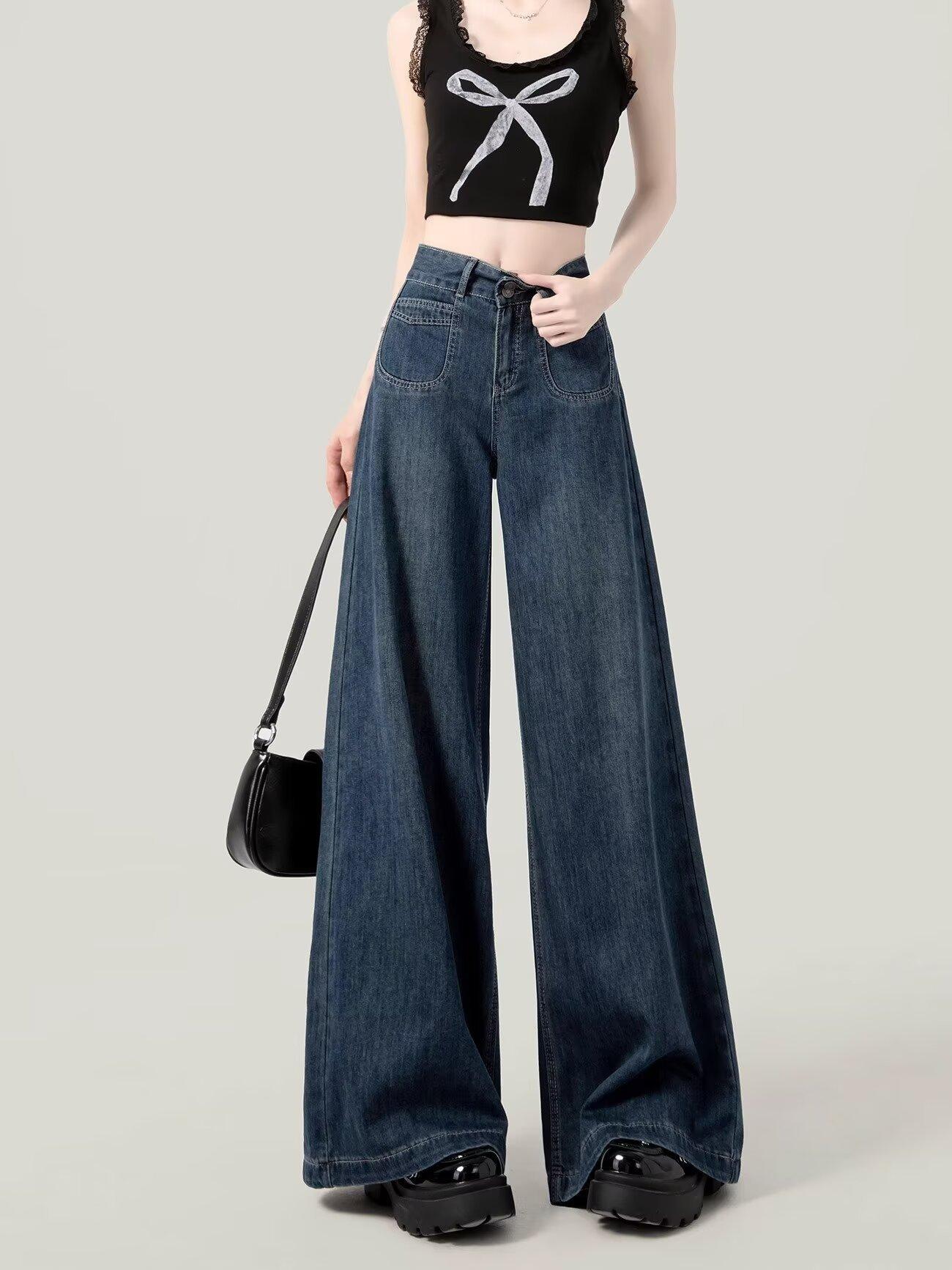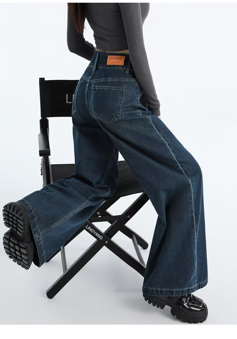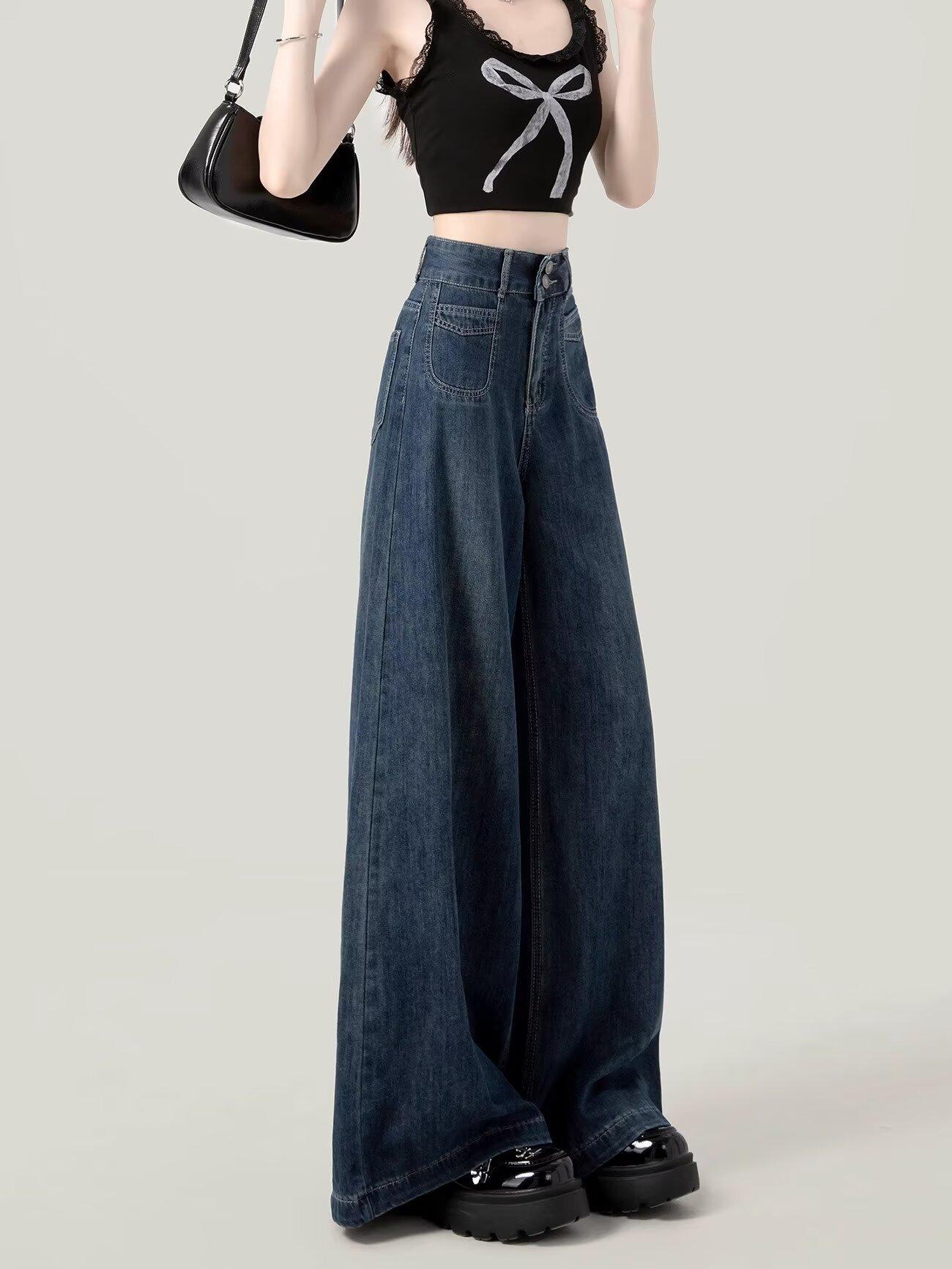 Jeans de Cintura Alta y Pierna Ancha para Mujer 2024 Nuevo Casual Lazy Dape Sueltos Adelgazantes Rectos Primavera y Otoño a la Moda