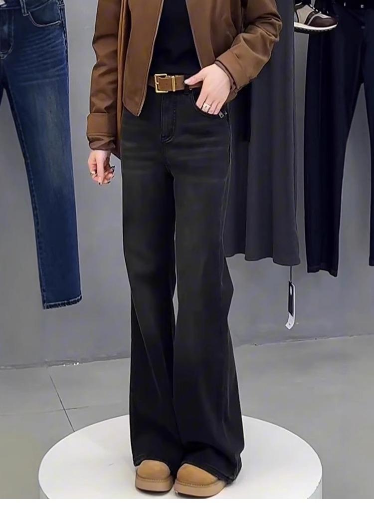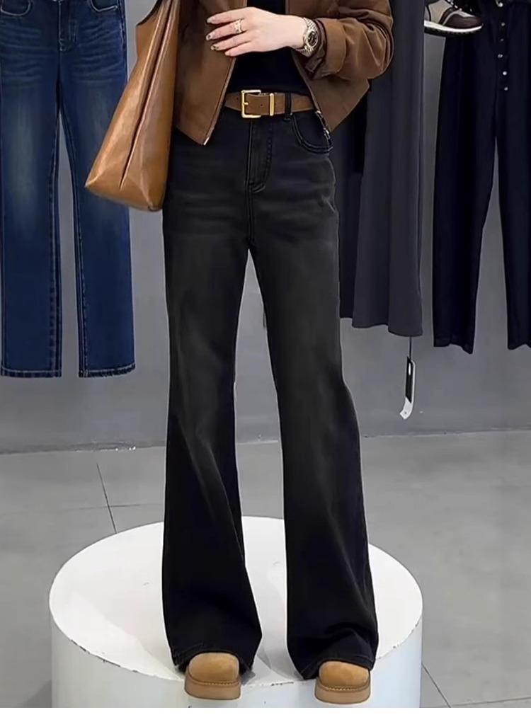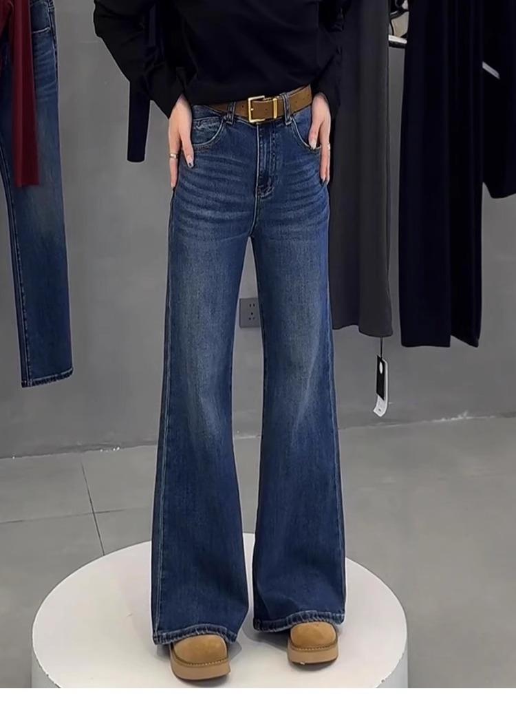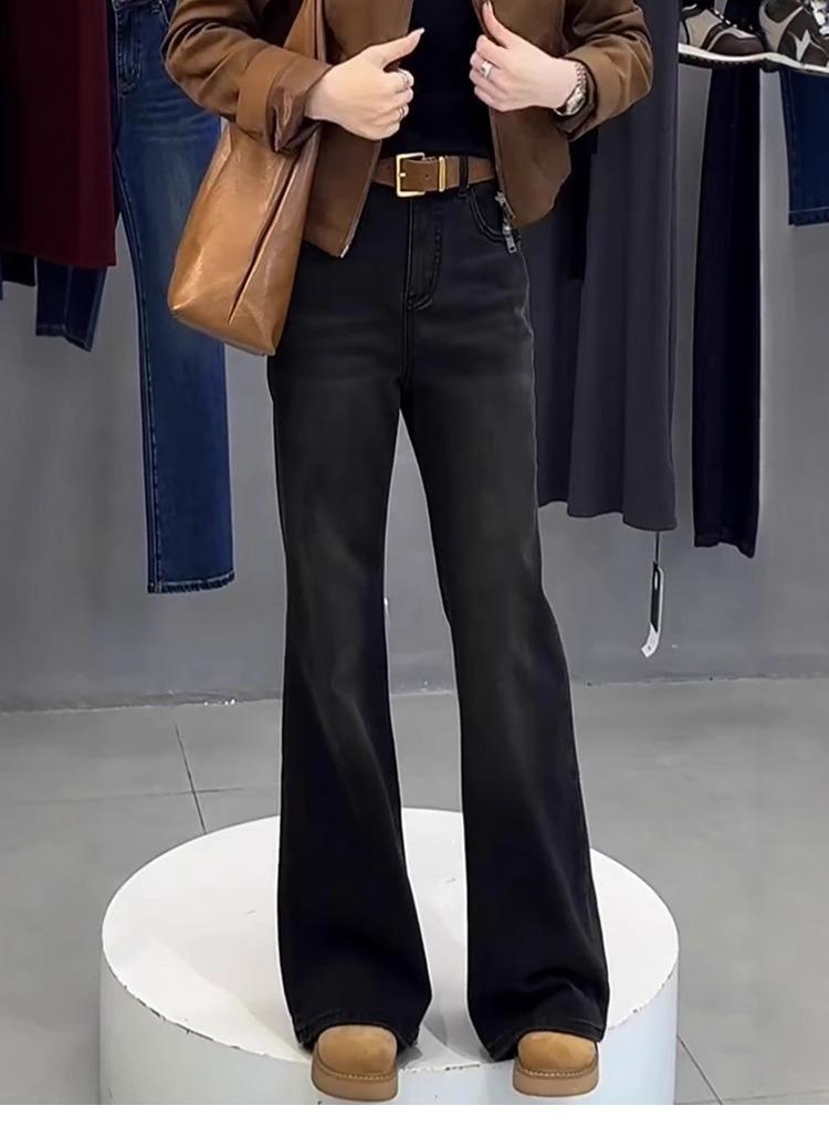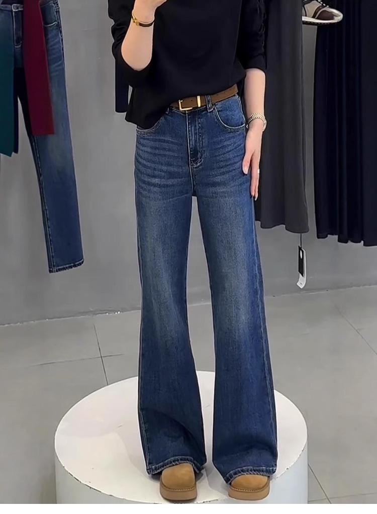 Talla grande Cintura Alta Elásticos Rectos Micro-acampanados Jeans Mujer 2025 Primavera chica gordita Cubre Caderas Slim Pierna Ancha Pantalones