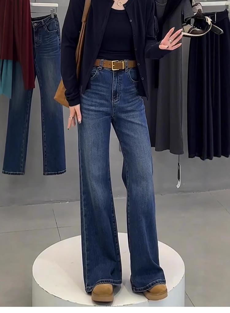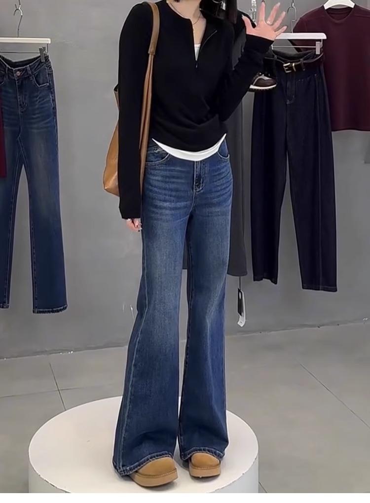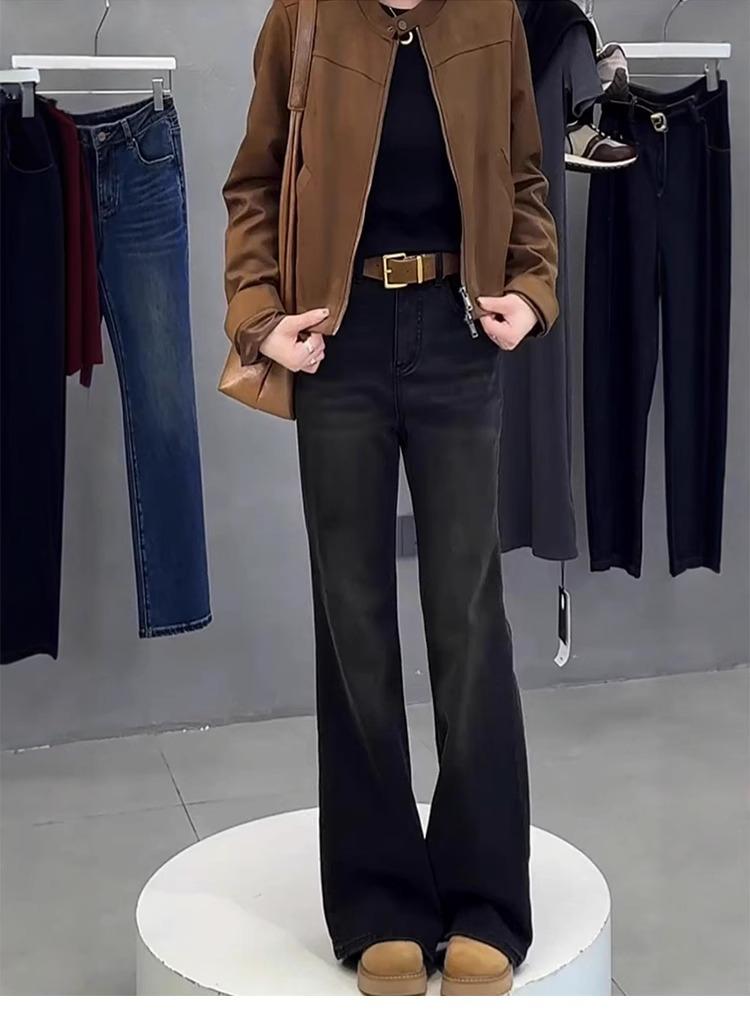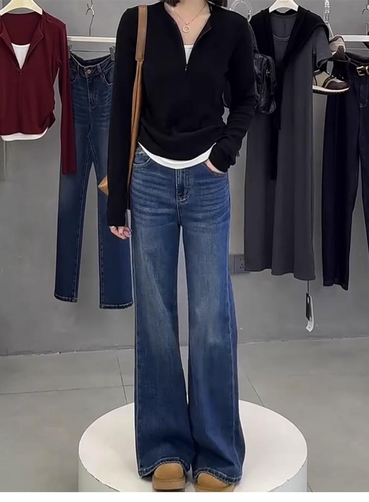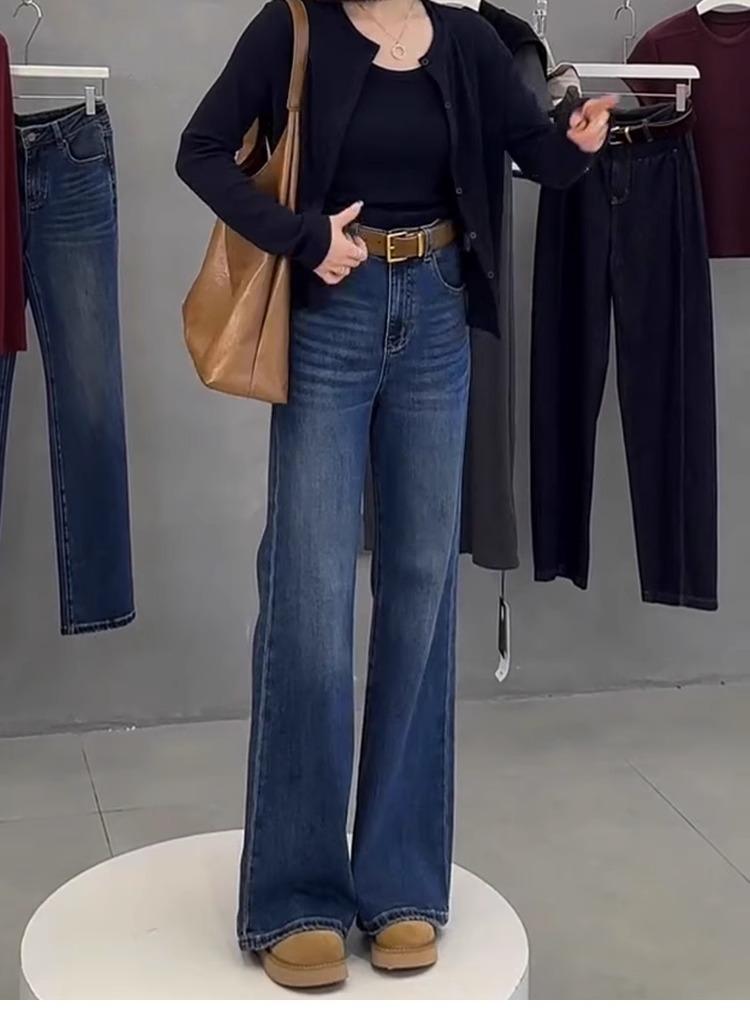 Talla grande Cintura Alta Elásticos Rectos Micro-acampanados Jeans Mujer 2025 Primavera chica gordita Cubre Caderas Slim Pierna Ancha Pantalones