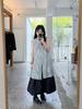 Vestido sin mangas de rayas con lunares de un solo pecho 2025 Verano para mujer Diseño casual holgado Falda versátil en capas