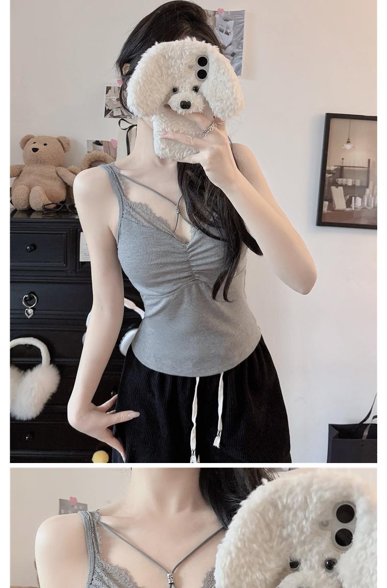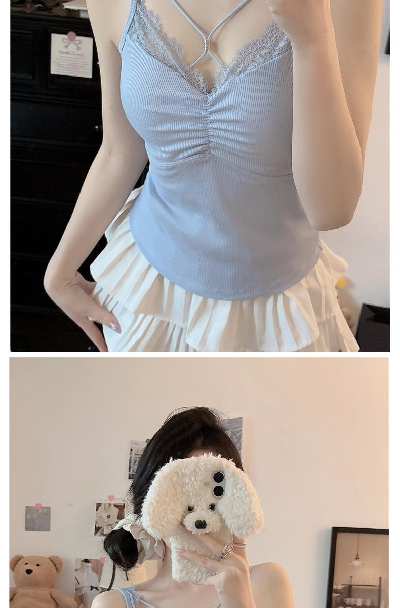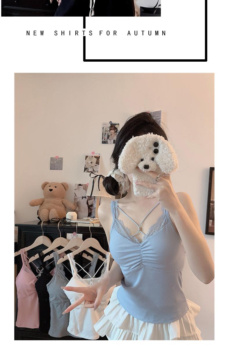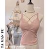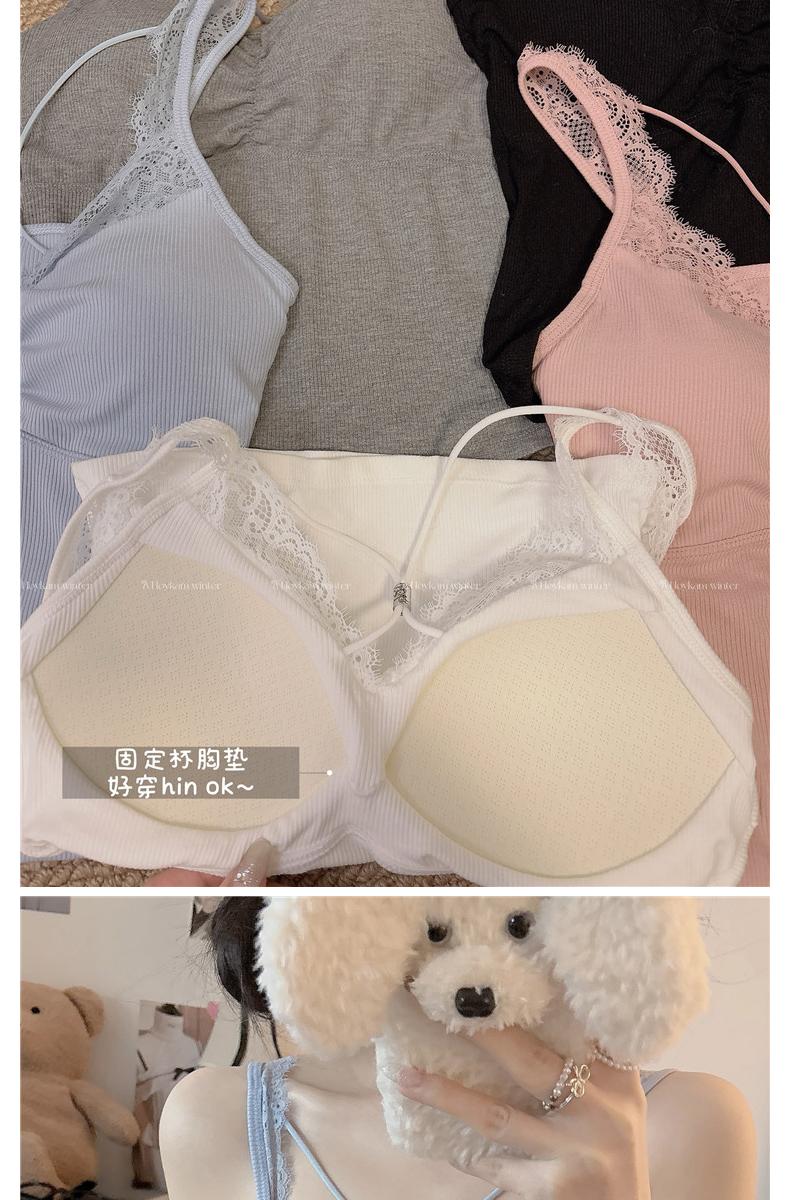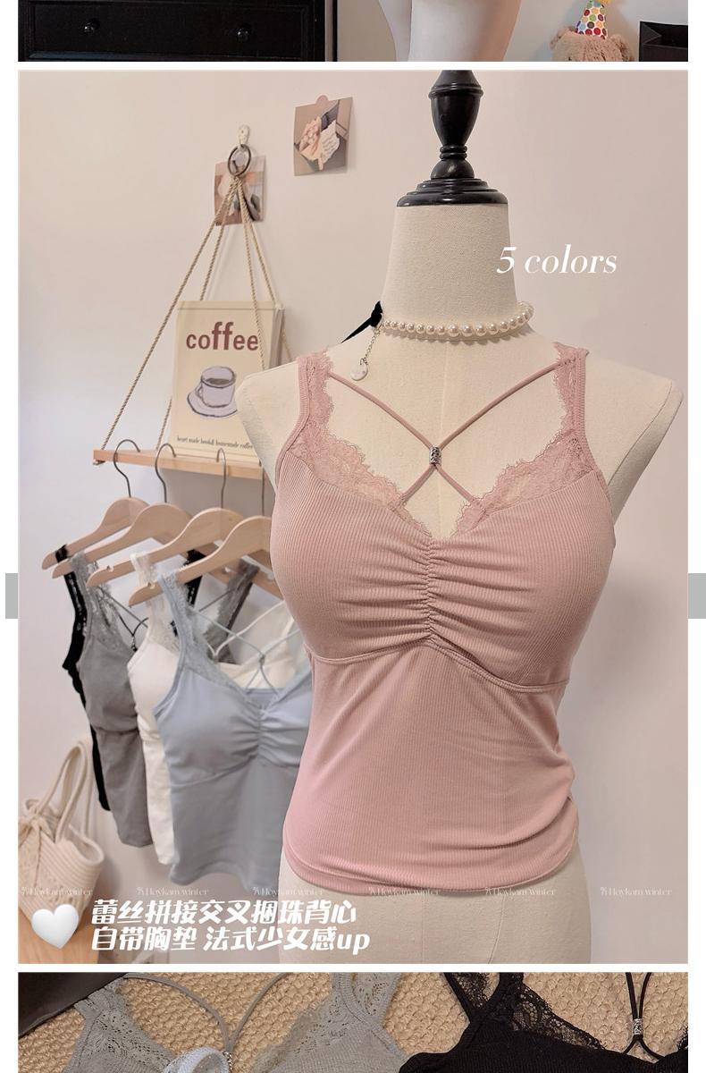 Belleza Pura Espalda Pequeño Camisola Chaleco Mujer Interior Encaje con Almohadilla en el Pecho Encaje Puntadas Diseño Cruzado Sentido de Uso Exterior Top Sexy