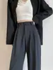 Pantalones de Traje Negros para Mujer Pantalones de Pierna Recta Verano Delgados Cintura Alta Sentido de Dosificación Sentido Avanzado Estrechos Adelgazantes Seda de Hielo Pierna Ancha