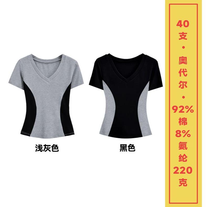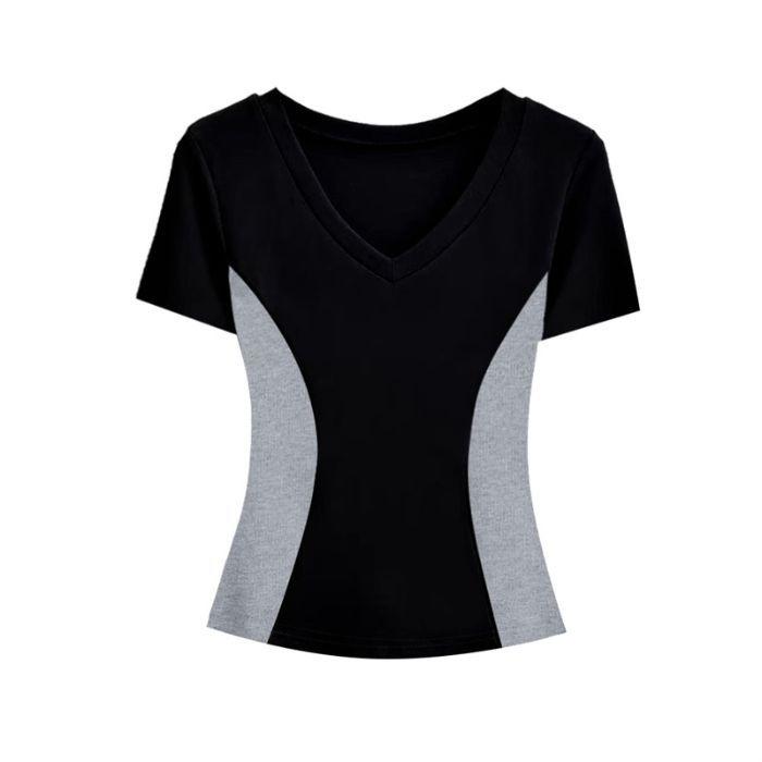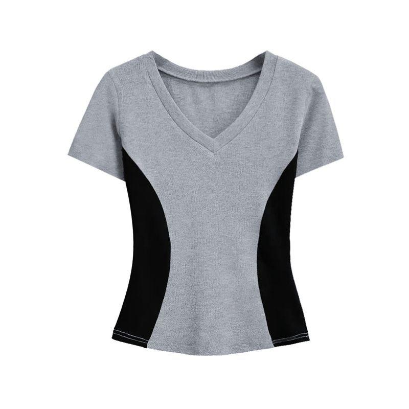 Camisa de manga corta personalizada con cuello, estilo nuevo de verano 2025, versátil, con colores contrastantes, para uso diario, adelgazante, para mujer