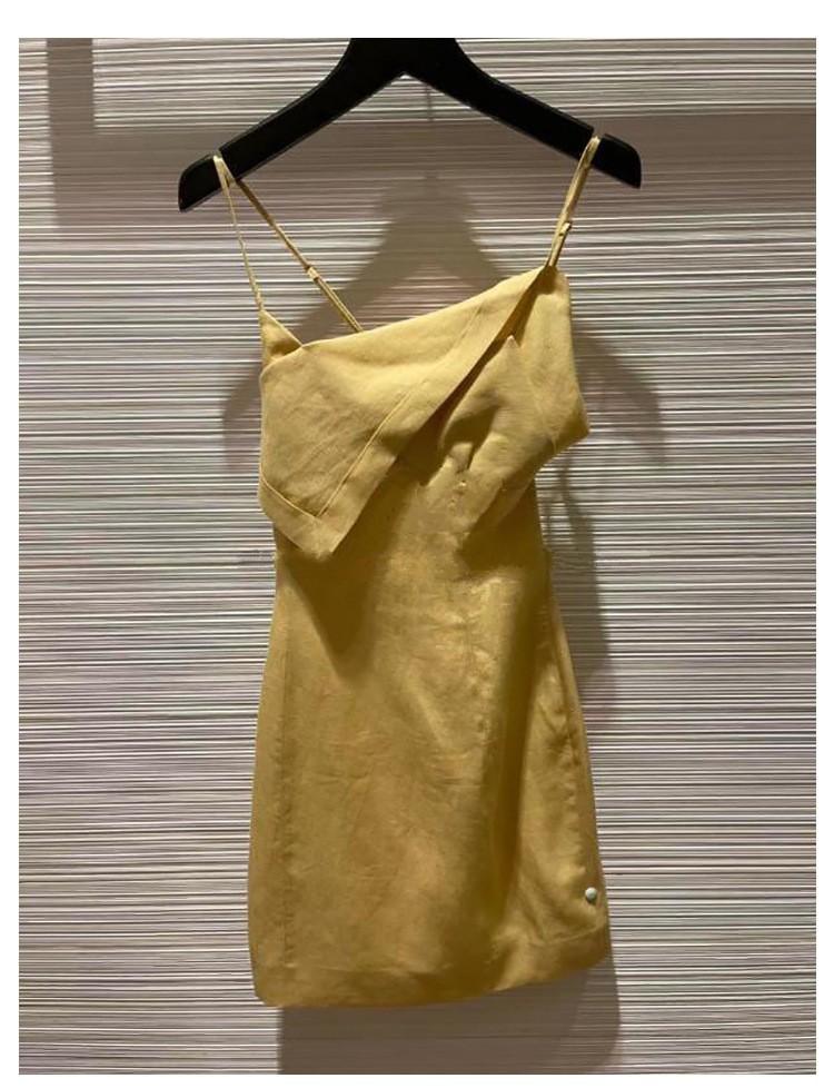 Nicho Especial Primavera y Verano 2025 Nueva Llegada Falda Slip Amarilla Irregular Vestido Ajustado Falda Línea A a la Moda para Mujer