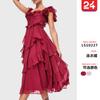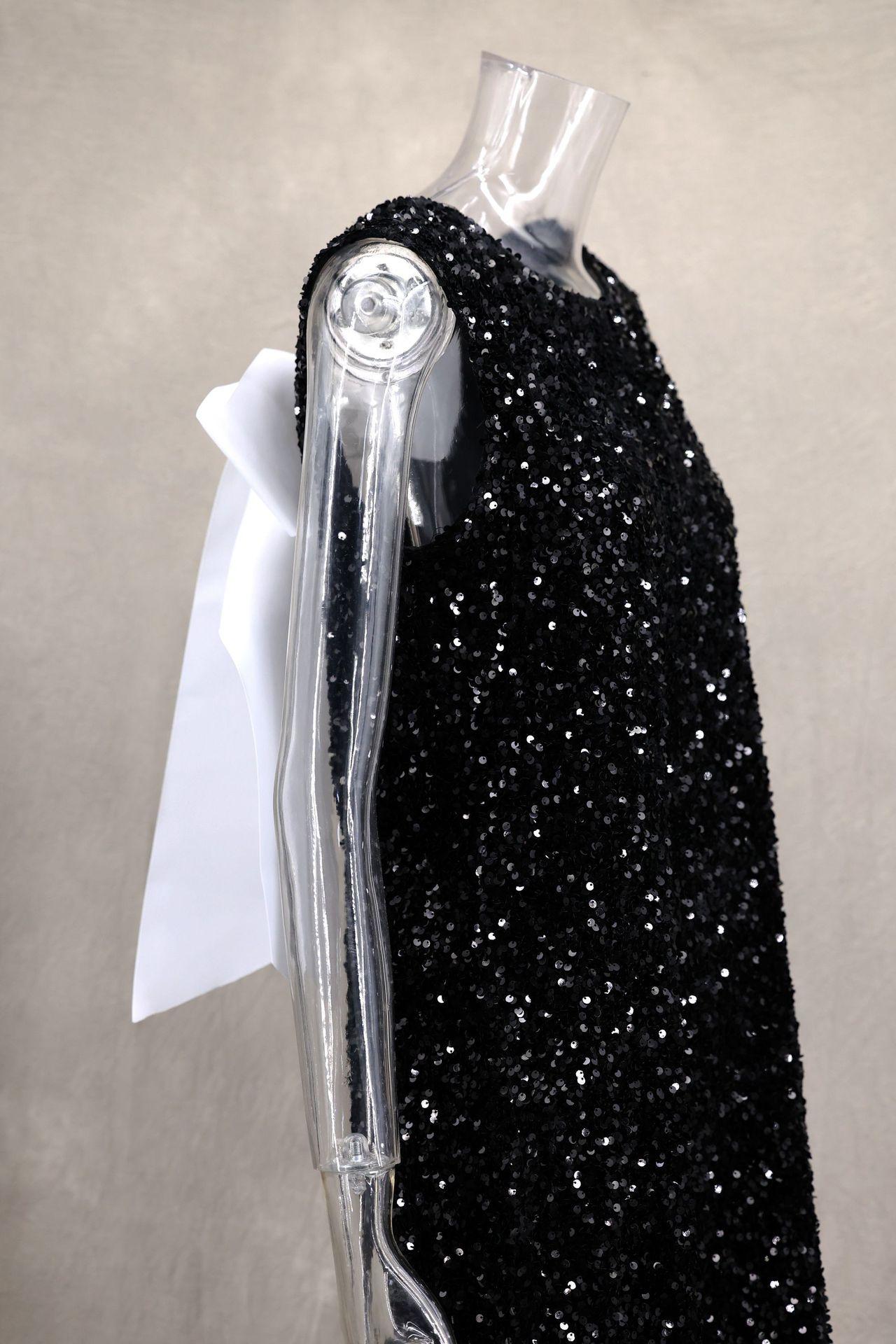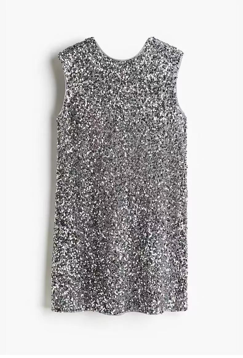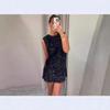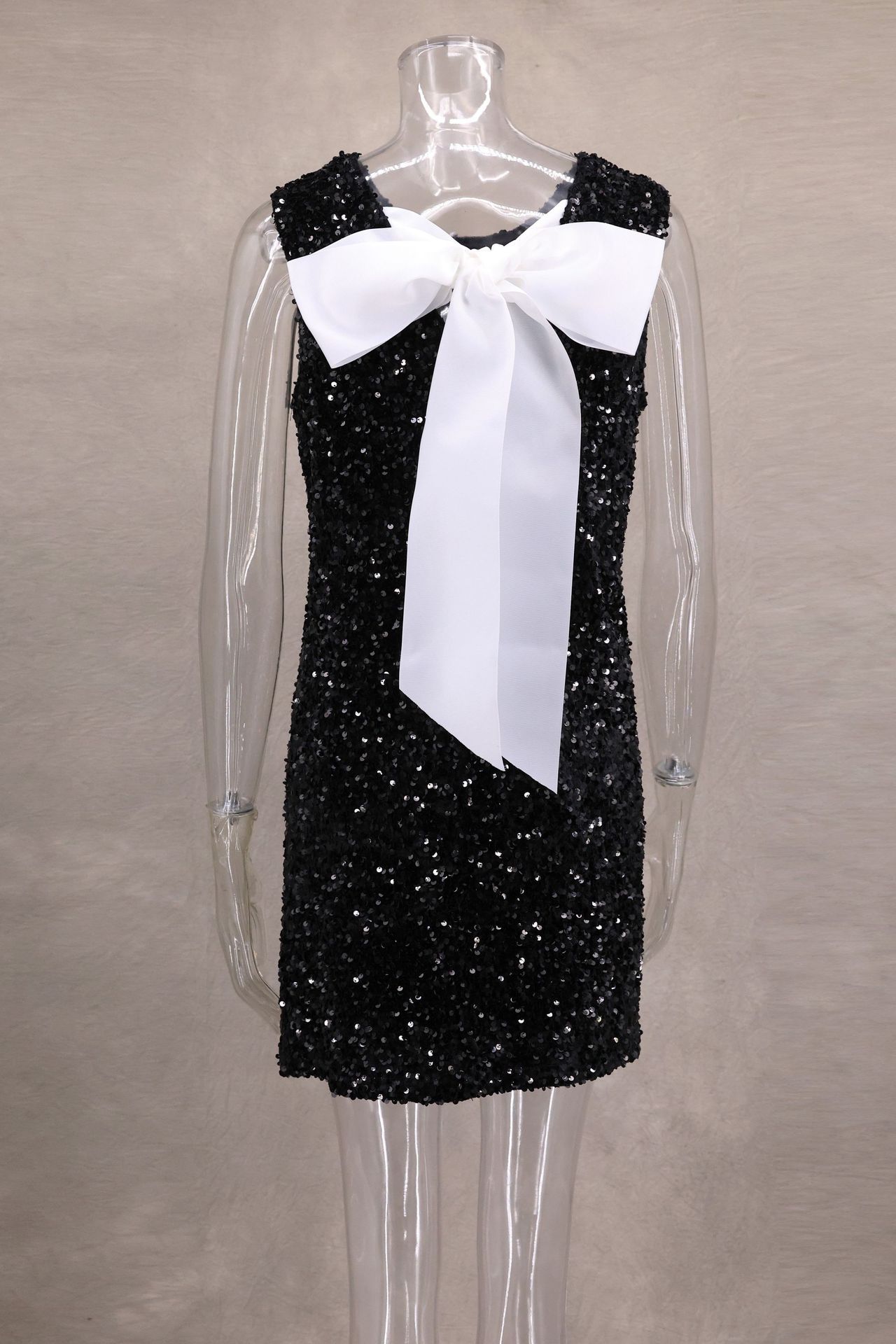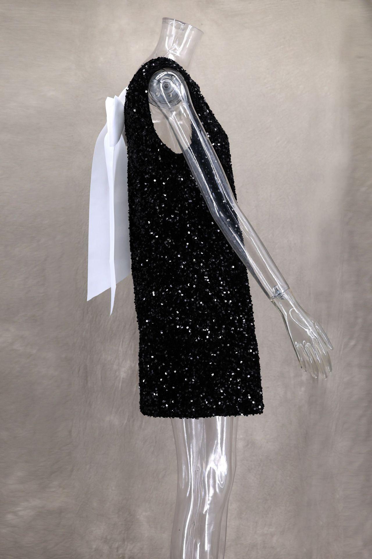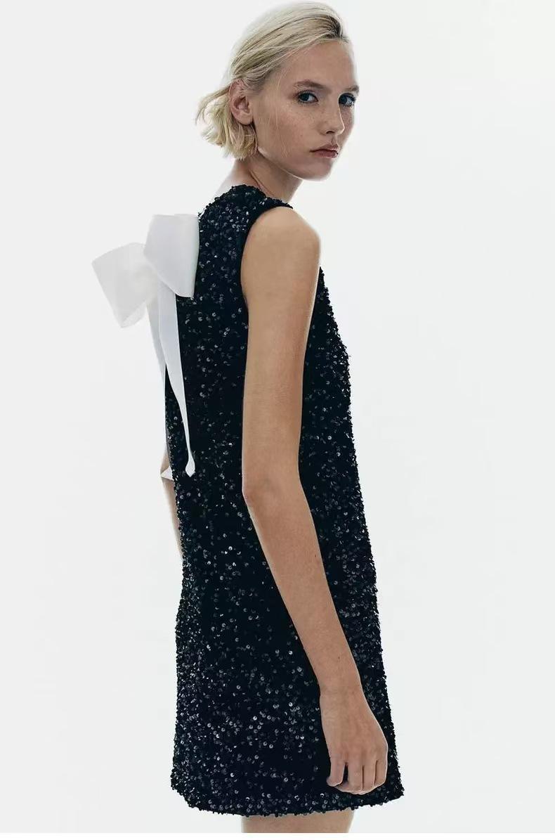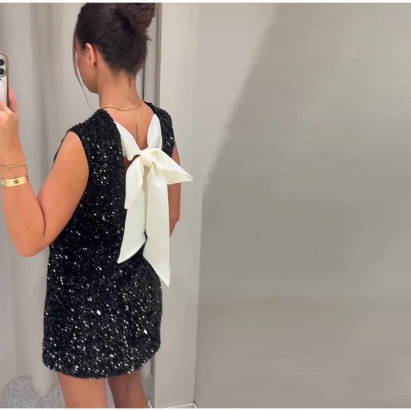 Nuevo vestido de primavera y verano 2025 estilo transfronterizo europeo y americano con cuentas brillantes, encaje decorativo en la espalda y lazo