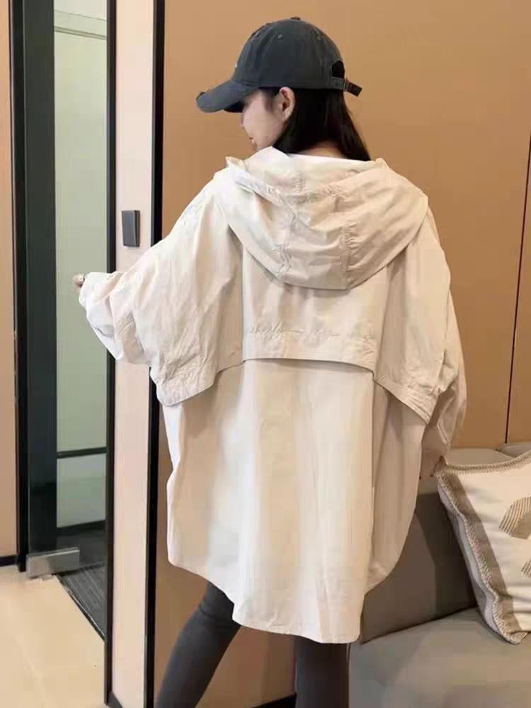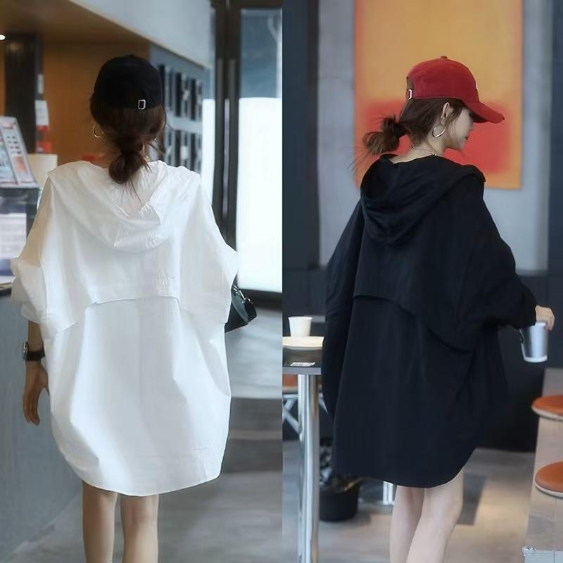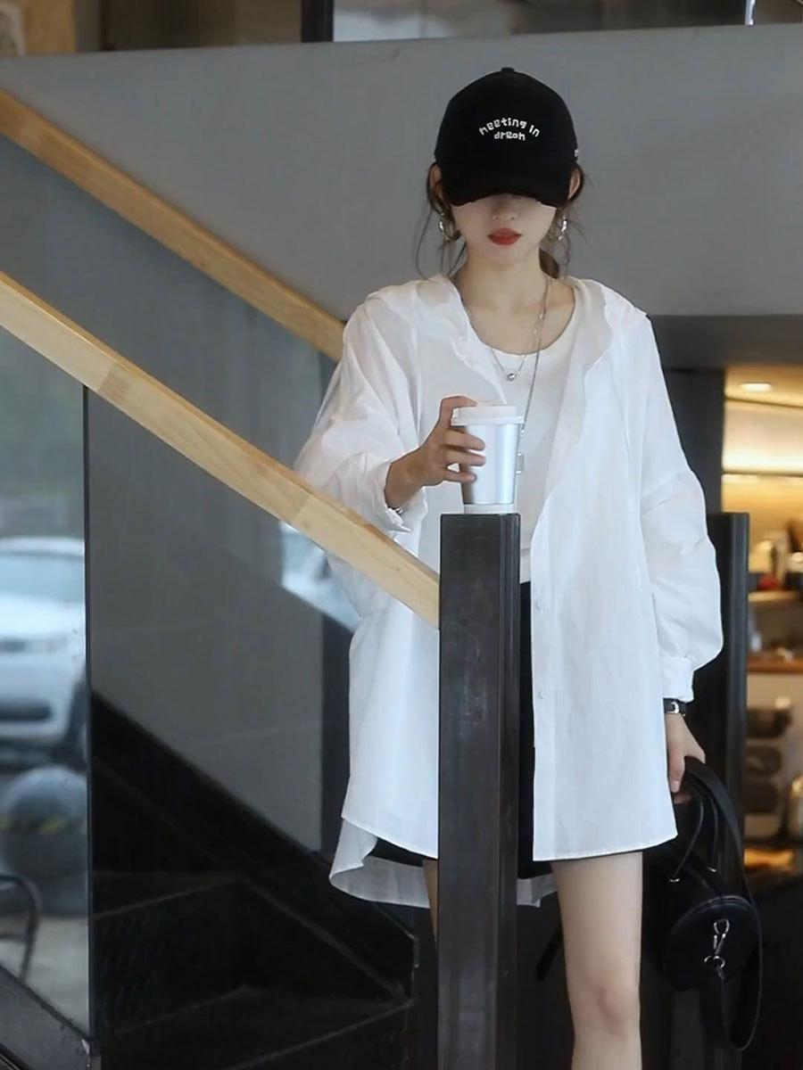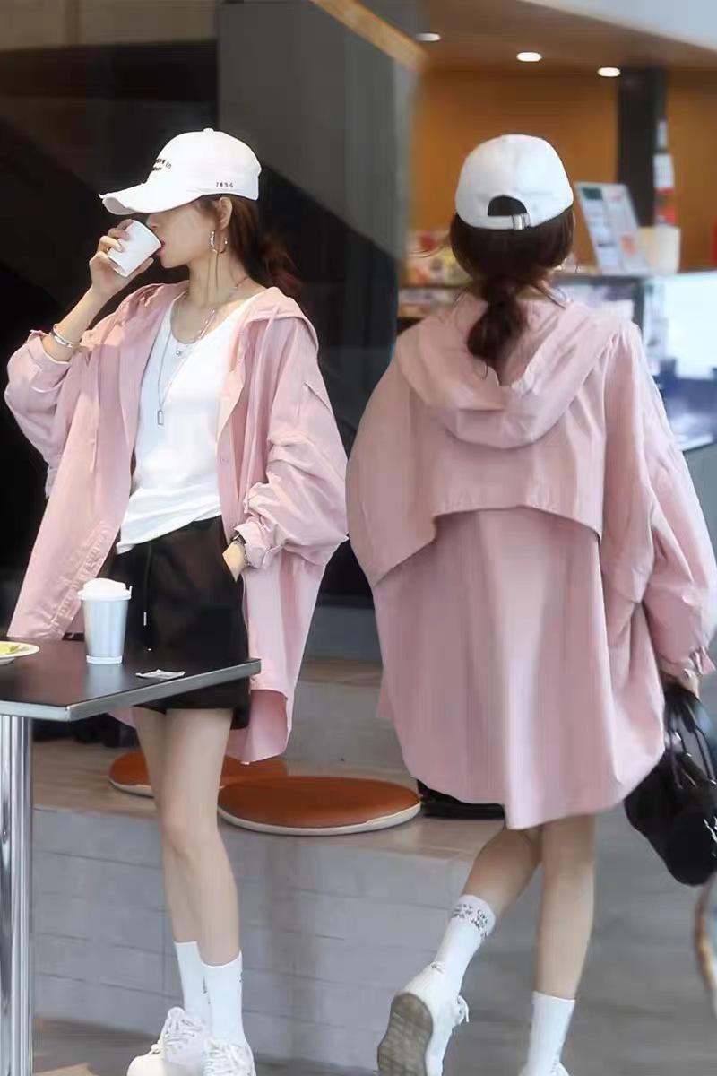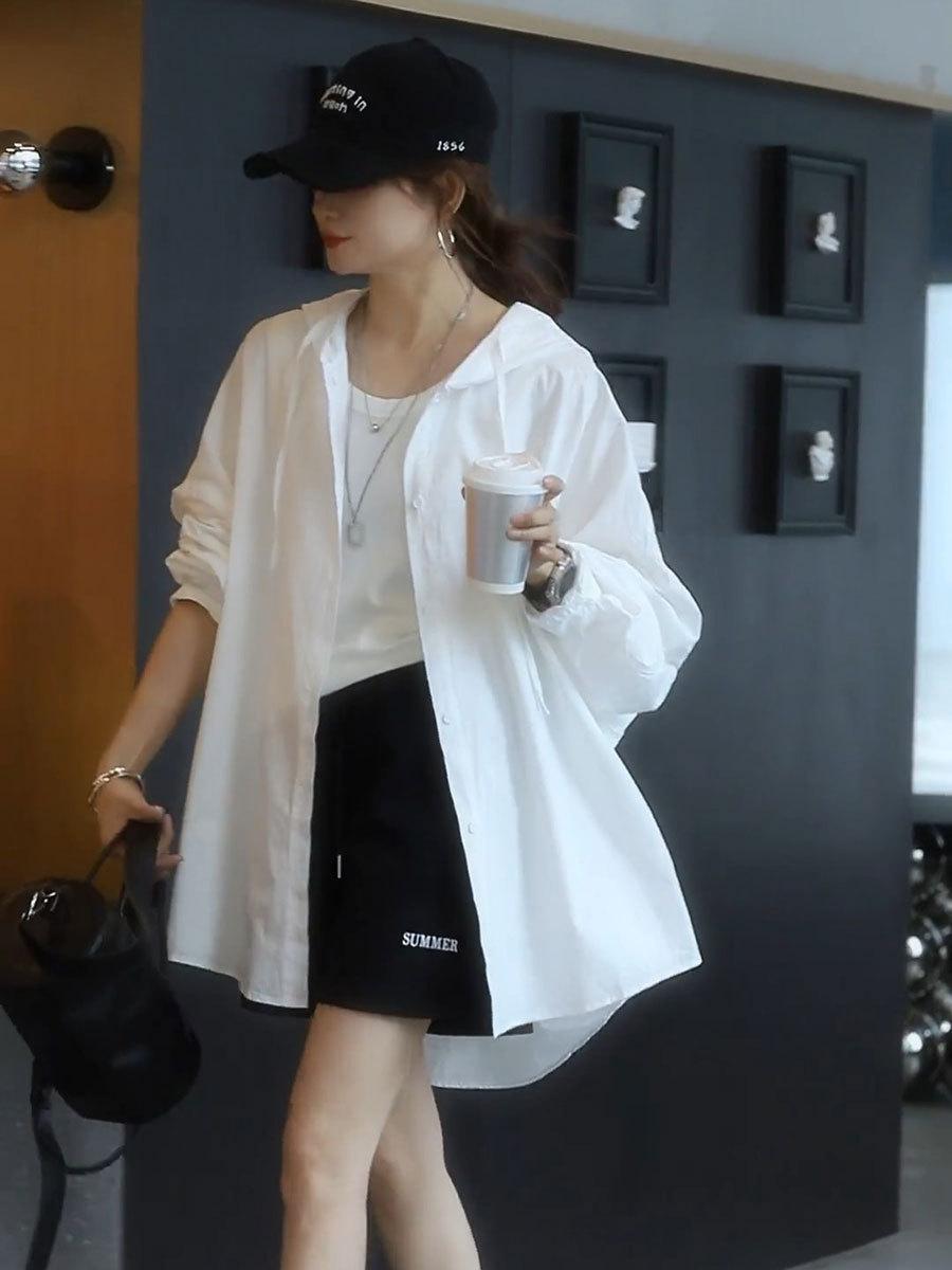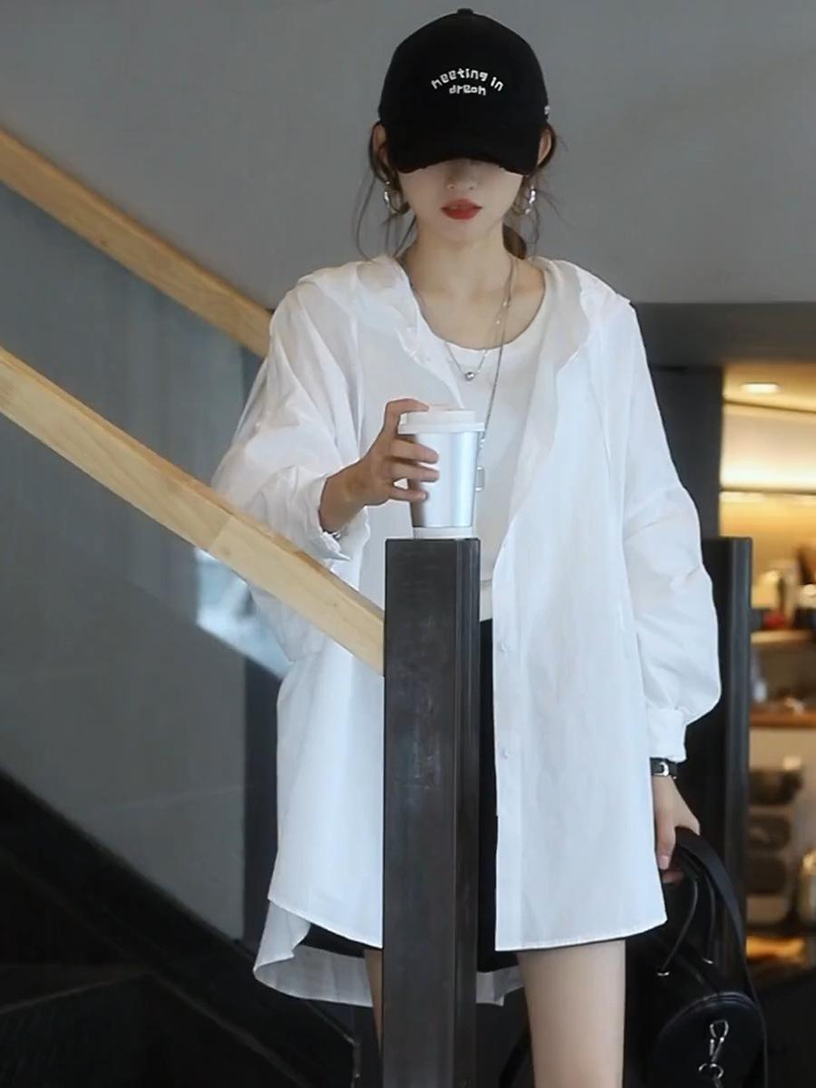 Camiseta holgada casual de gran tamaño con capucha para mujer Primavera y Verano Nuevo estilo coreano Ropa de protección solar Chaqueta de camisa versátil y a la moda para mujer