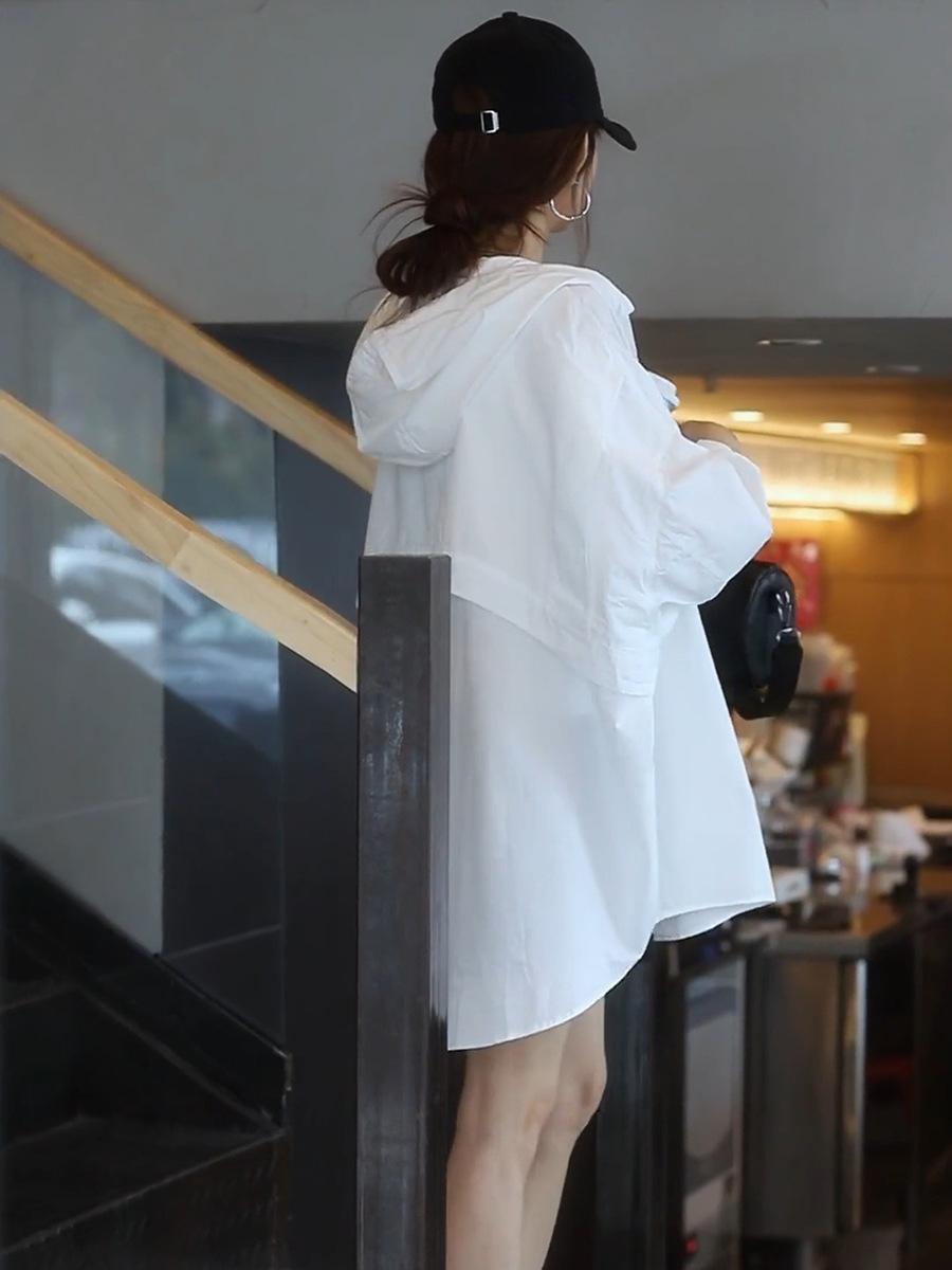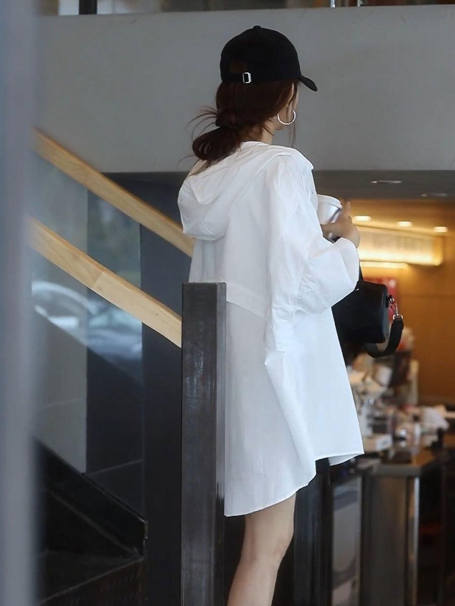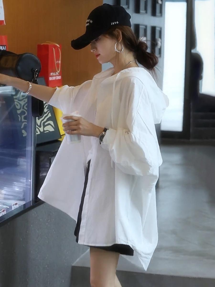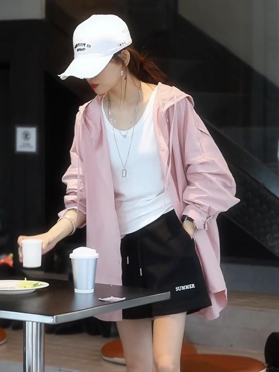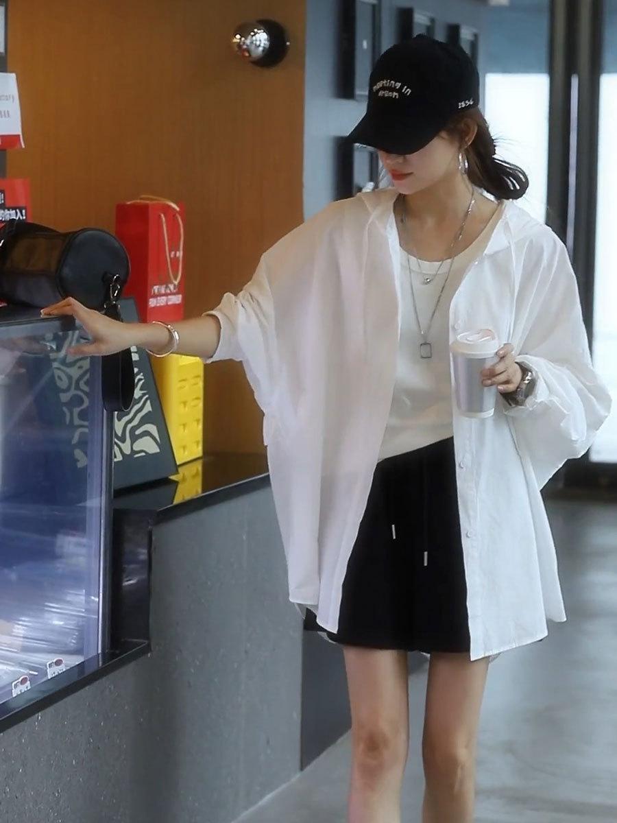 Camiseta holgada casual de gran tamaño con capucha para mujer Primavera y Verano Nuevo estilo coreano Ropa de protección solar Chaqueta de camisa versátil y a la moda para mujer