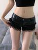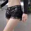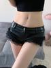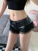 Primavera 2024 celebridad de internet club nocturno sexy DS discoteca cintura baja Super pantalones encaje costuras pantalones cortos de cuero PU hot pants